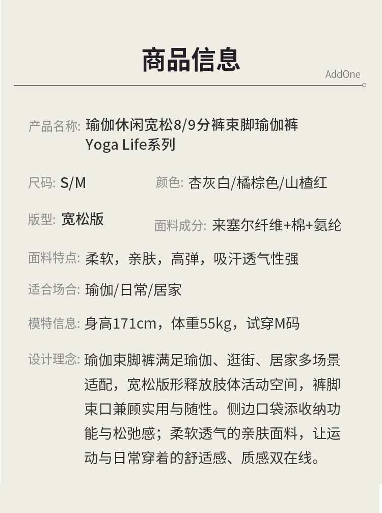 AddOne+1瑜伽宽松阔8/9分裤灯笼裤束脚瑜伽裤萝卜灯笼裤服饰外穿
