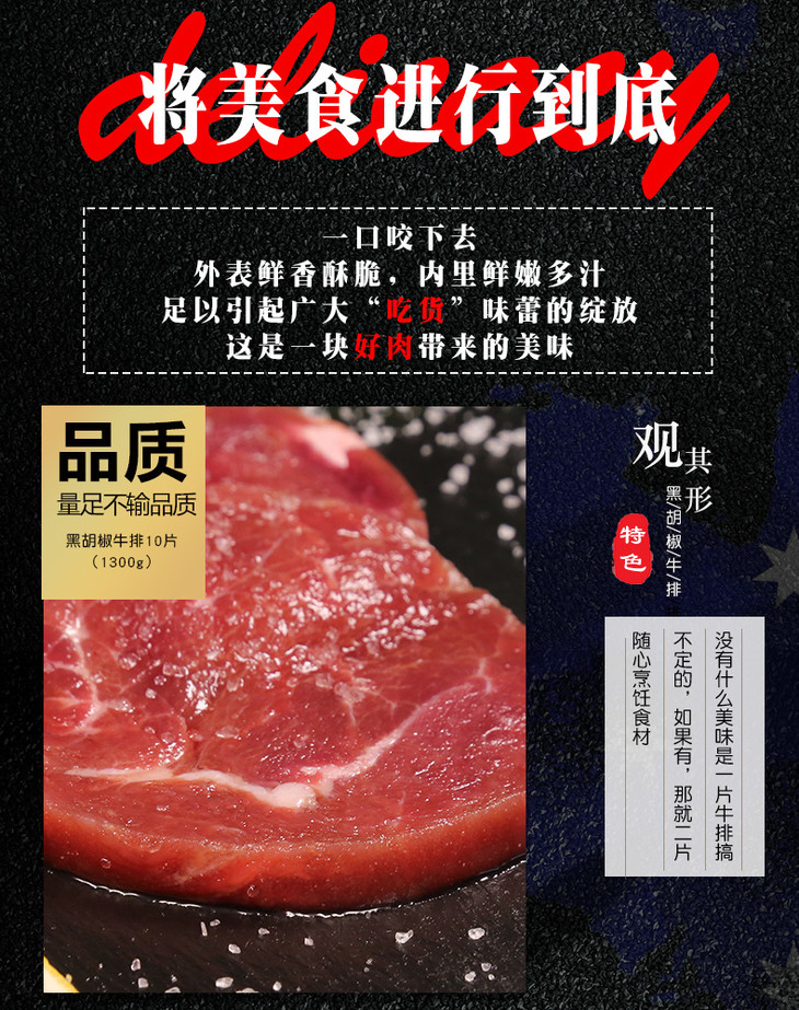 澳洲黑胡椒牛排团购10片1300g
