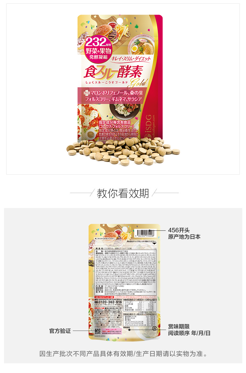 ISDG 日本进口 黄金酵素120粒/袋