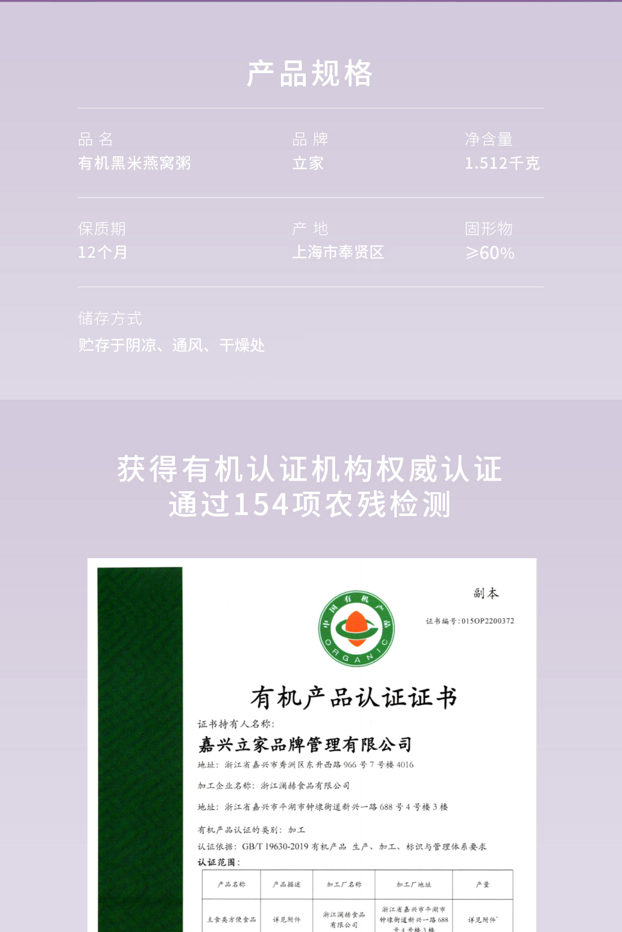 立家有机 有机燕窝粥系列 有机黑米燕窝粥 素食粥 孕妇早餐 下午茶 浙江嘉兴