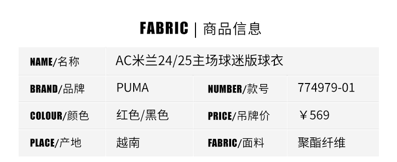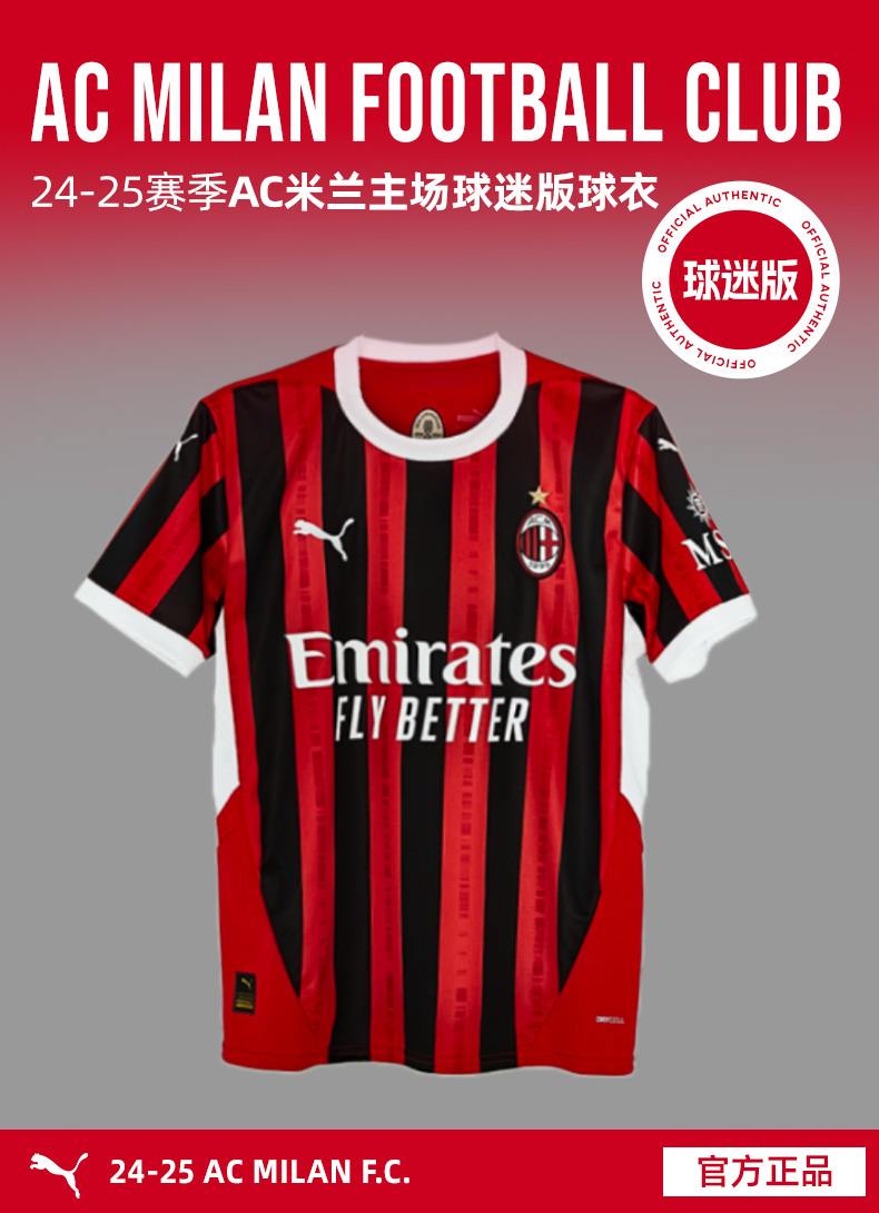 SFS正品 PUMA彪马24/25赛季AC米兰主场球迷版球衣 774979-01