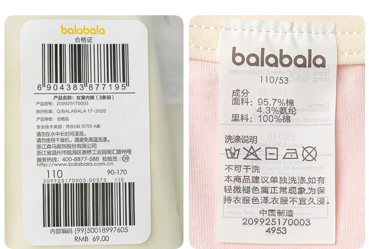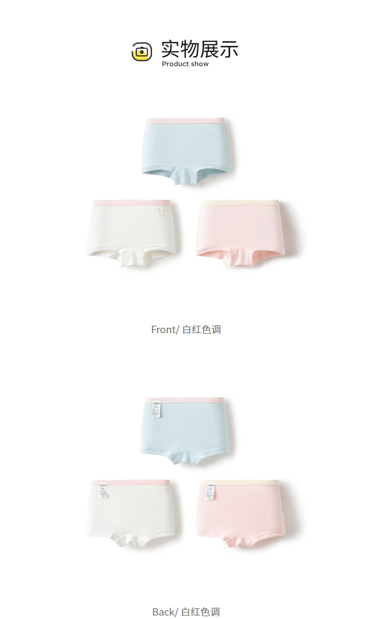 巴拉巴拉儿童内裤棉a类女童平角短裤小童大童四角裤不夹pp三条装