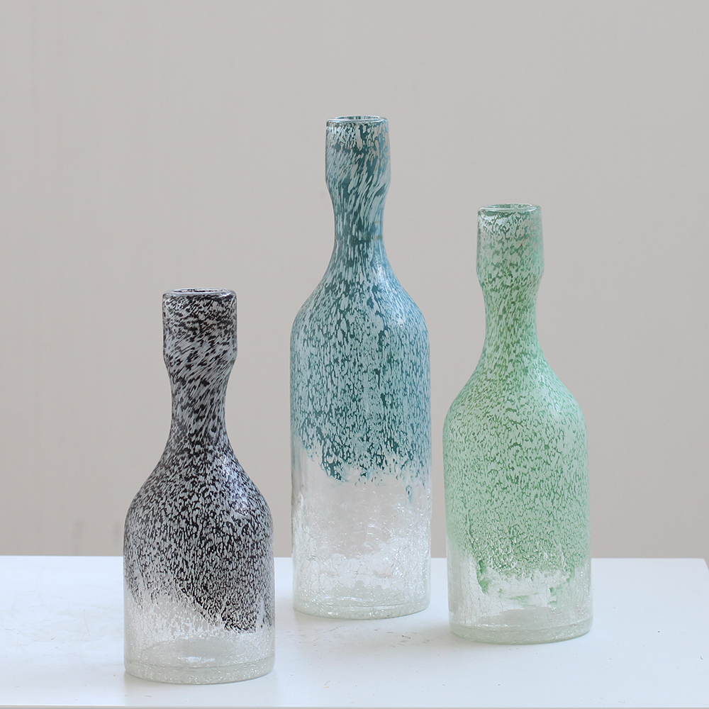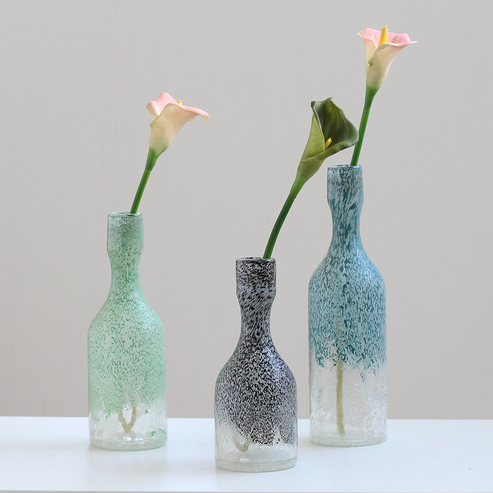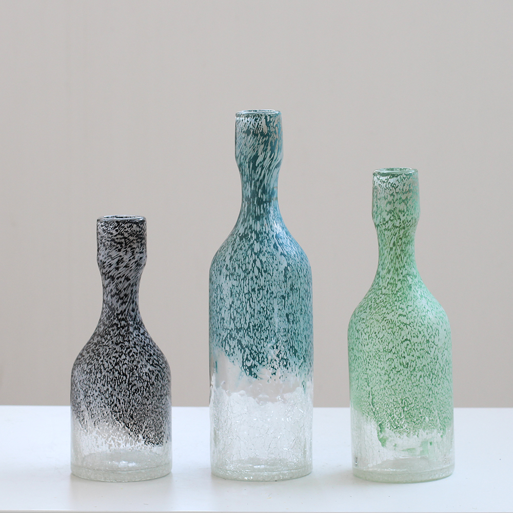 碧轩美式彩色冰裂纹透明花瓶创意田园水培玻璃客厅桌面软装插花器