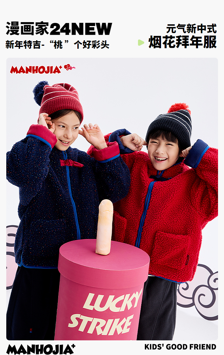 【“桃”个好彩头】漫画家24烟花彩点羊羔毛新中式拜年棉服外套