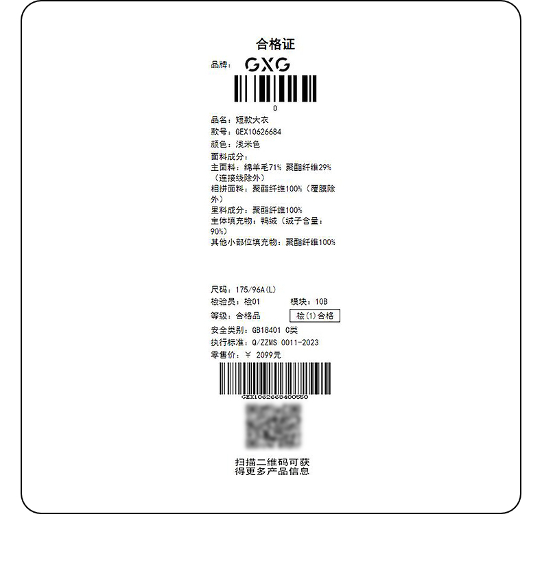 GXG男装 浅米色翻领短款大衣 冬季热卖浅米色翻领短款大衣GEX10626684