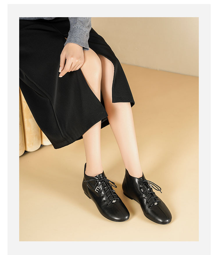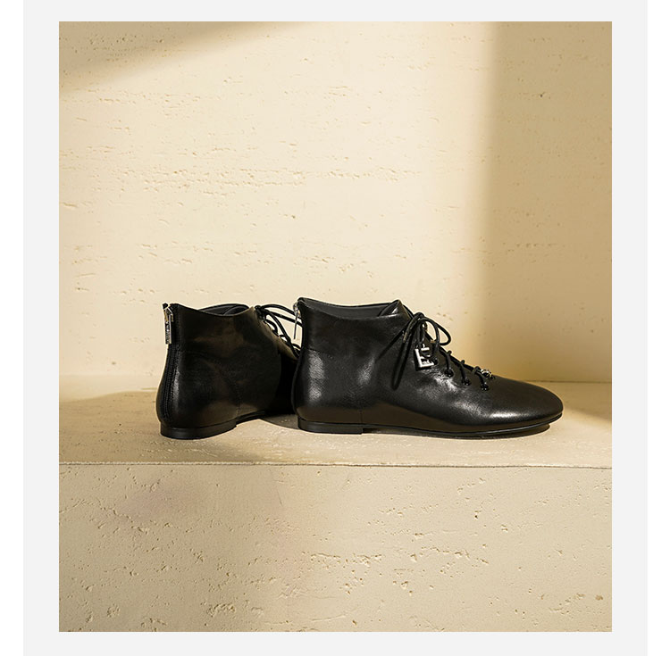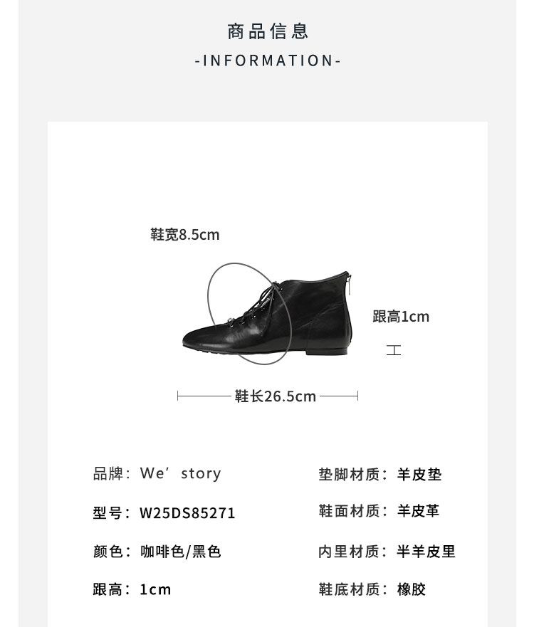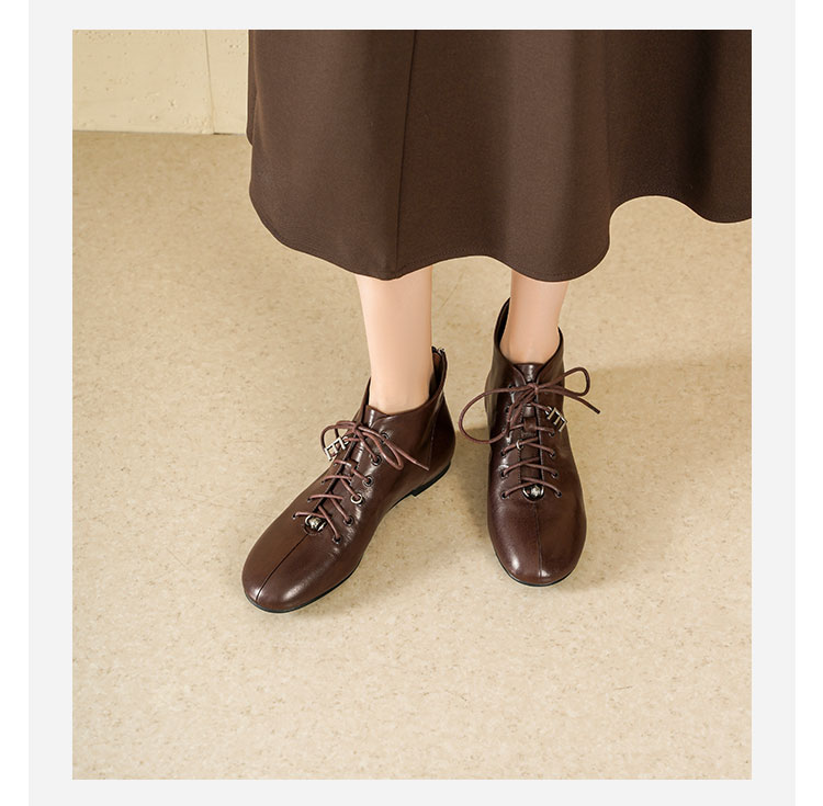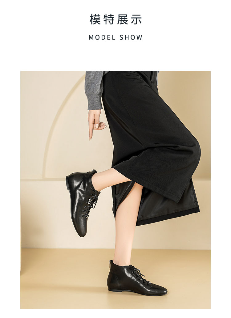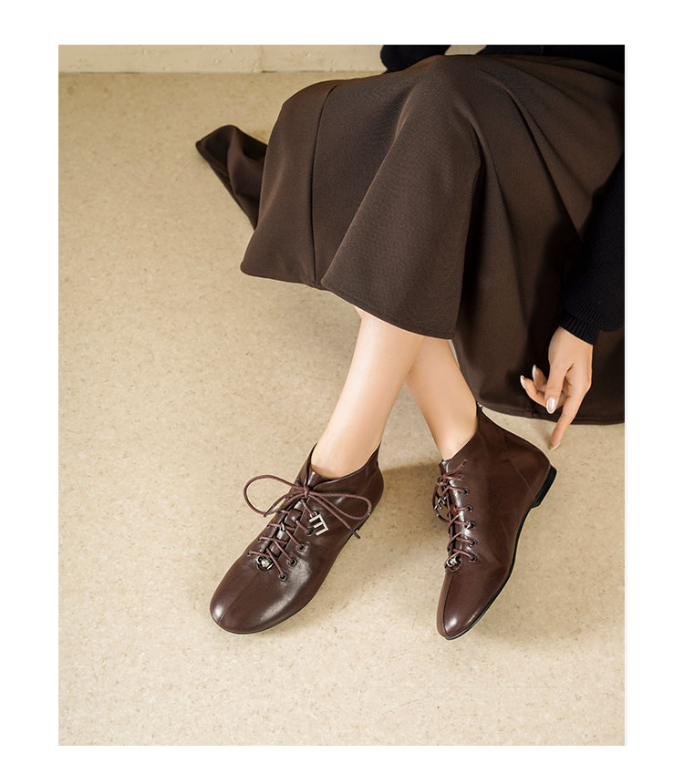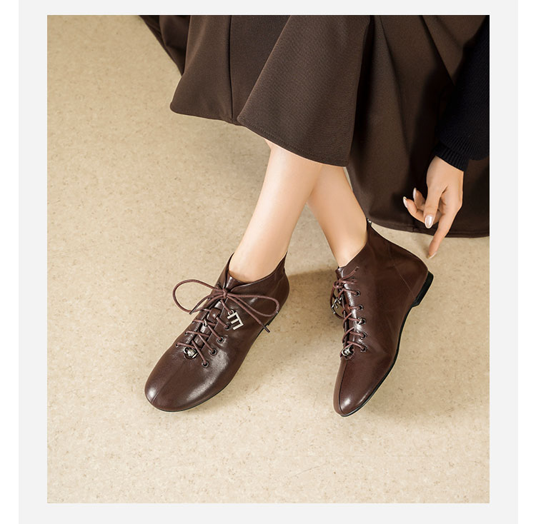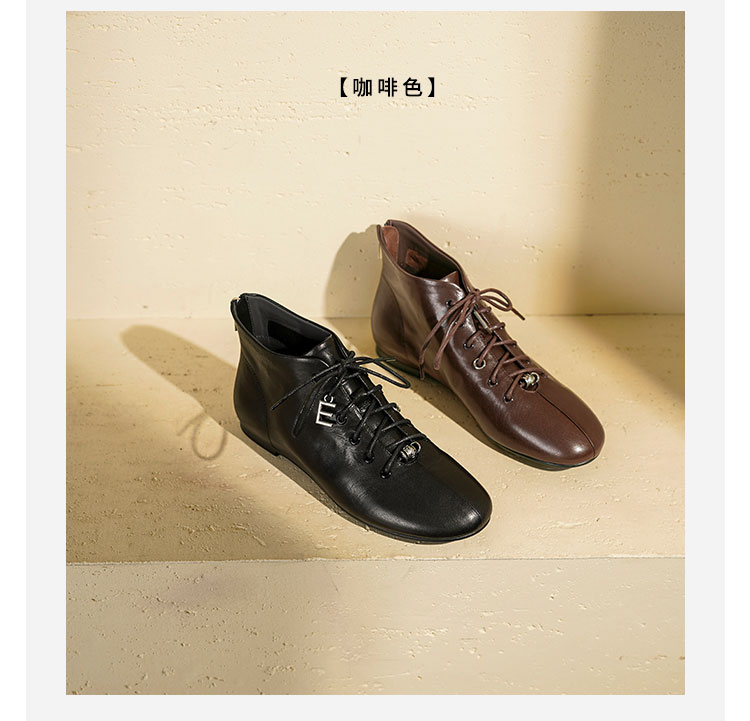 Westory2025年冬季圆头平底休闲踝靴老钱风舒适羊皮短靴W25DS85271