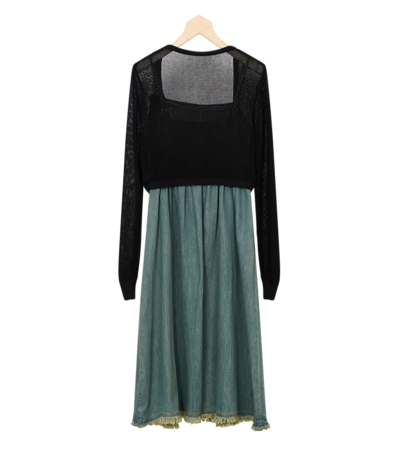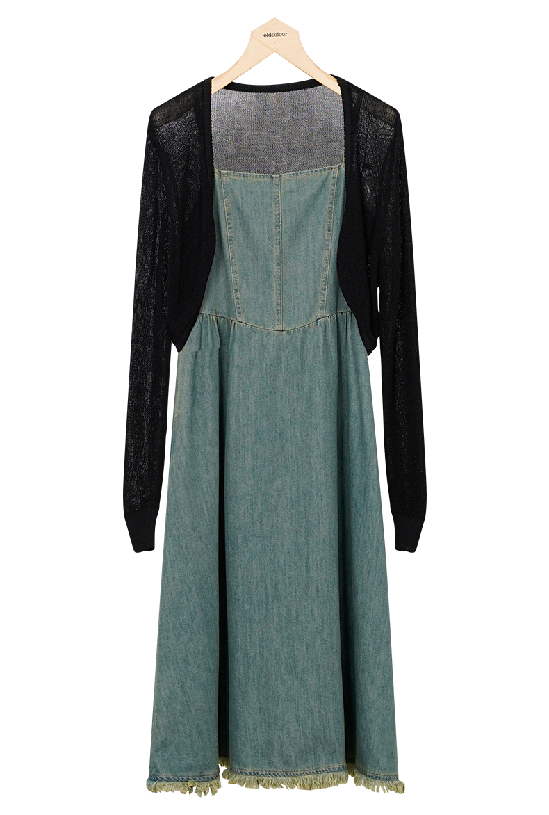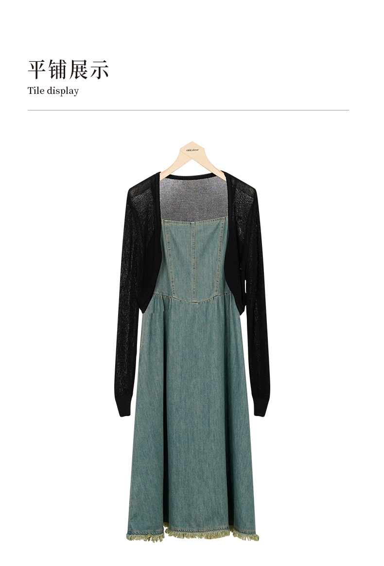 oldcolour秋季新款法式复古牛仔吊带连衣裙两件套女P381001A1