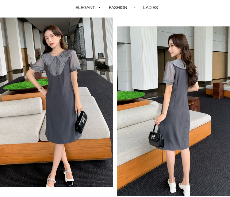 奢姿大码女装2025夏季假两件设计时尚连衣裙胖妹妹减龄娃娃领裙子9942860160