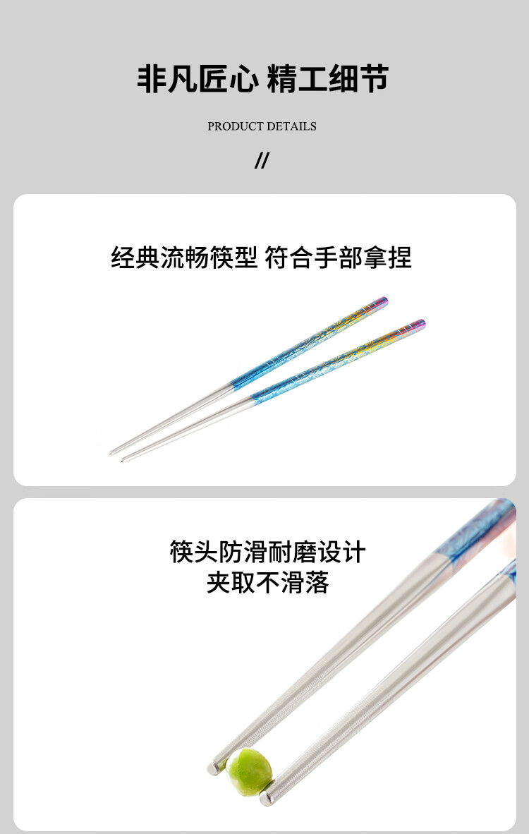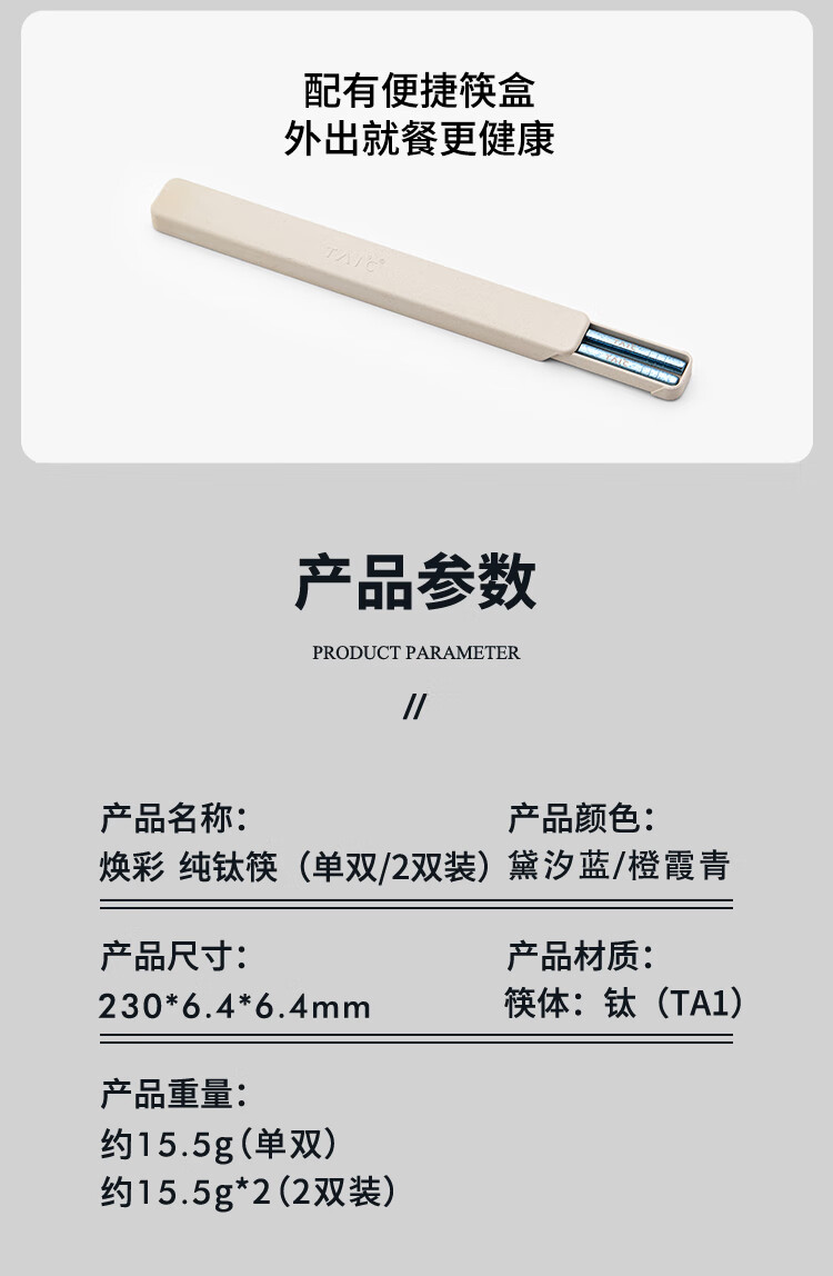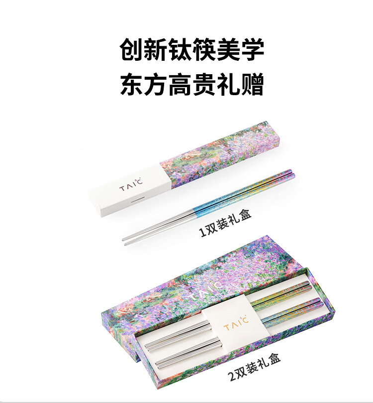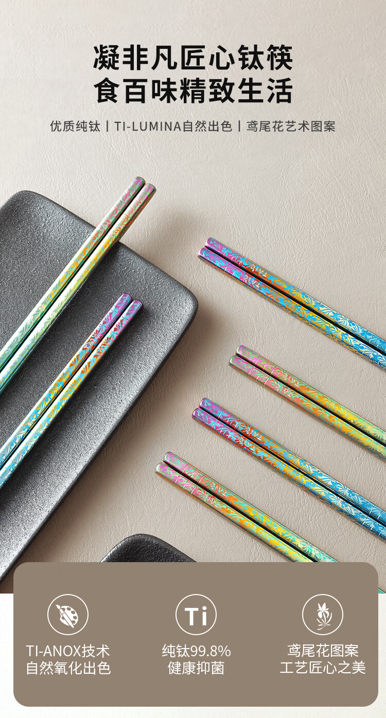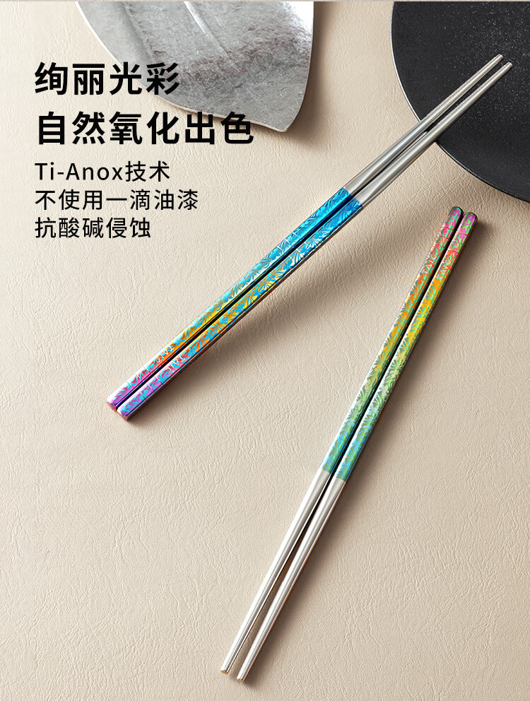 TAIC太可纯钛炫彩筷子高档便携轻质防滑天然抗菌抑菌耐高温金属筷