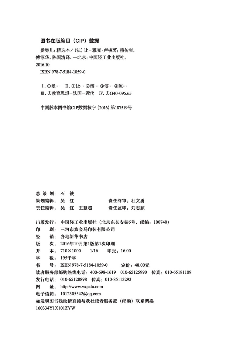 (仓发) 爱弥儿:精选本(万千教育)/中国轻工业出版社/[法]让-雅克·卢梭/9787518410590