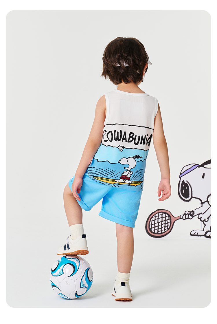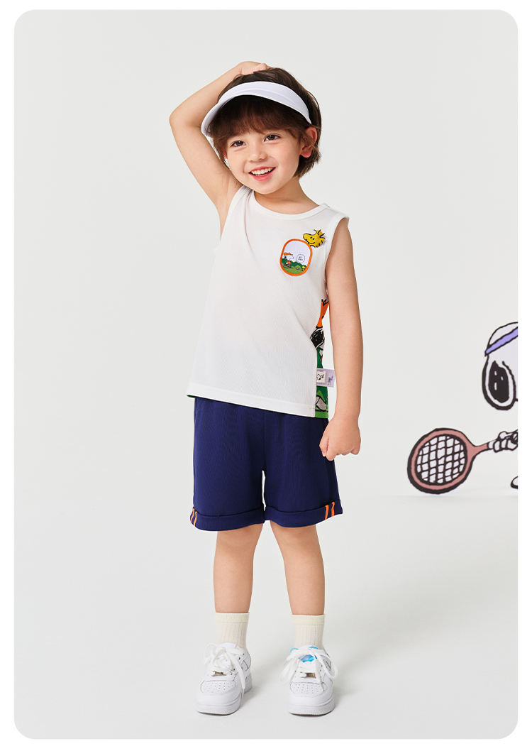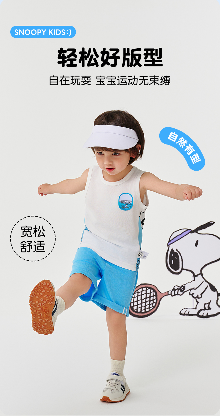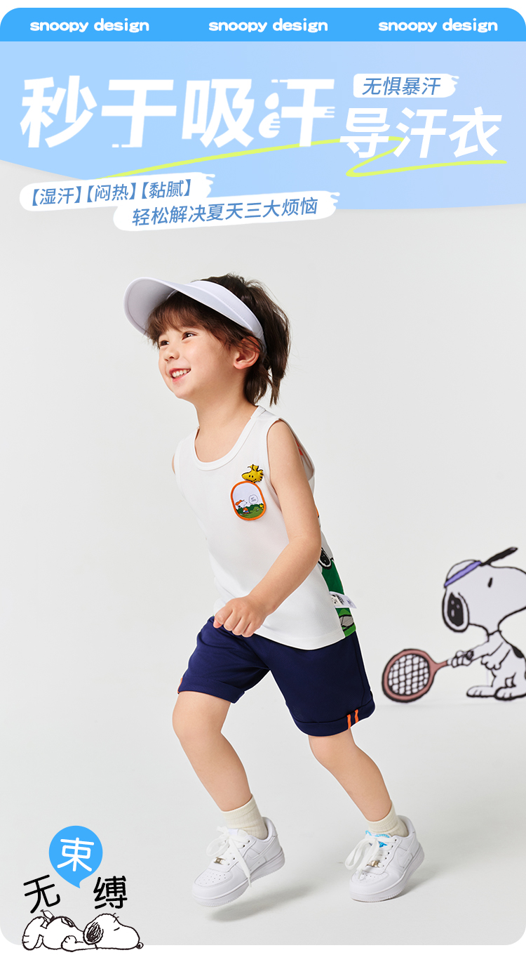 【速干网眼 两件套】【史努比】【90-130】男童夏季无袖背心套装背心短裤
