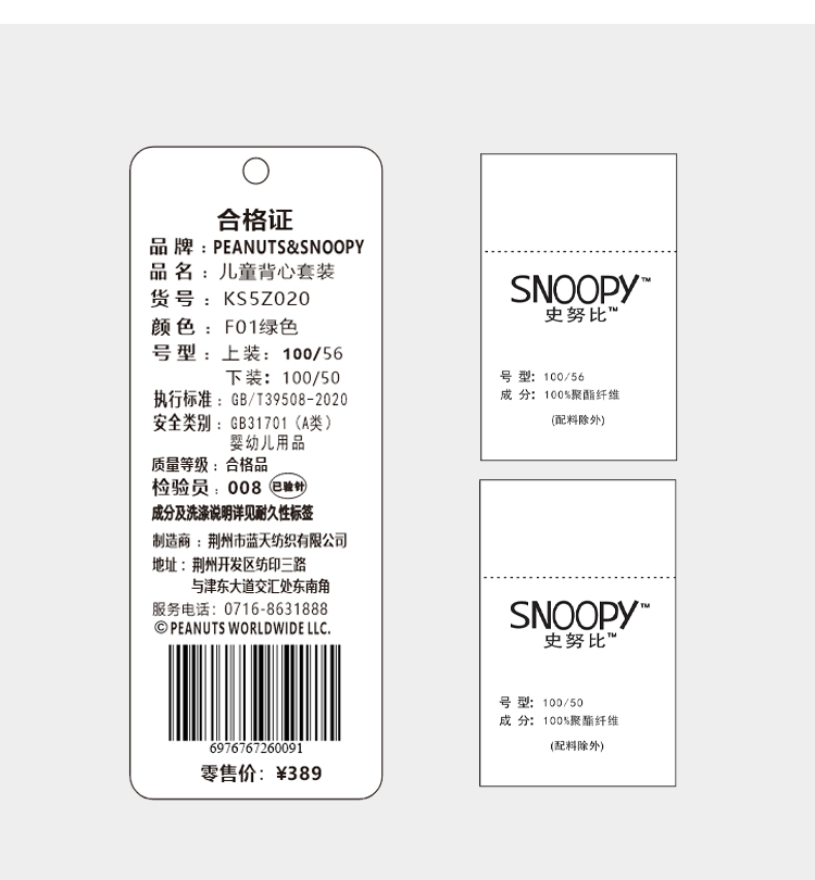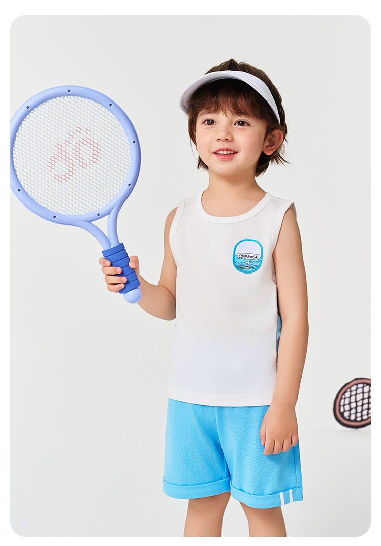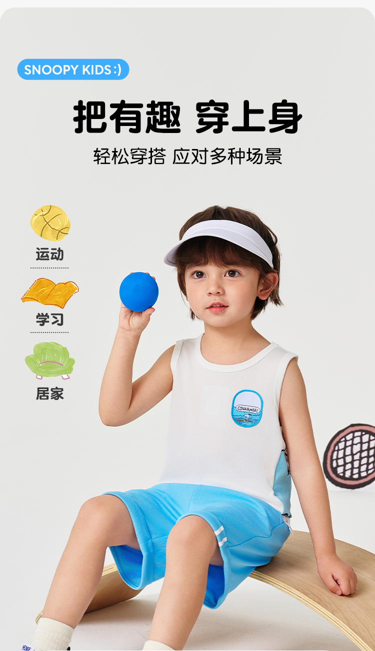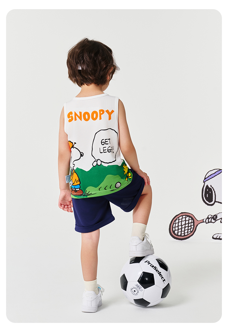 【速干网眼 两件套】【史努比】【90-130】男童夏季无袖背心套装背心短裤