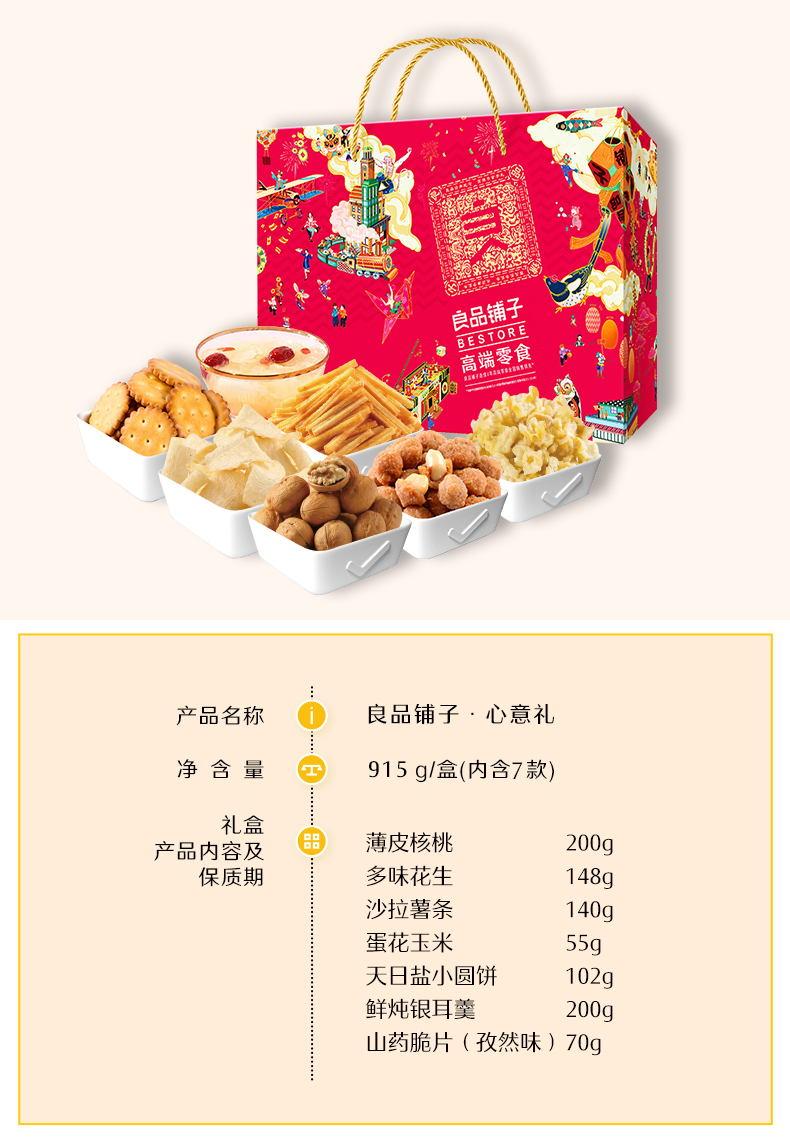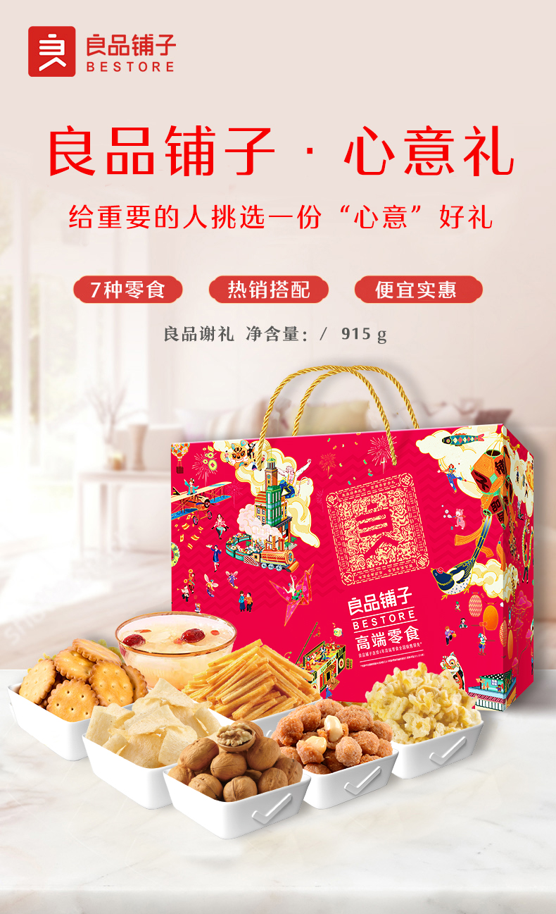 良品铺子坚果礼盒心意礼915g【NHSD】