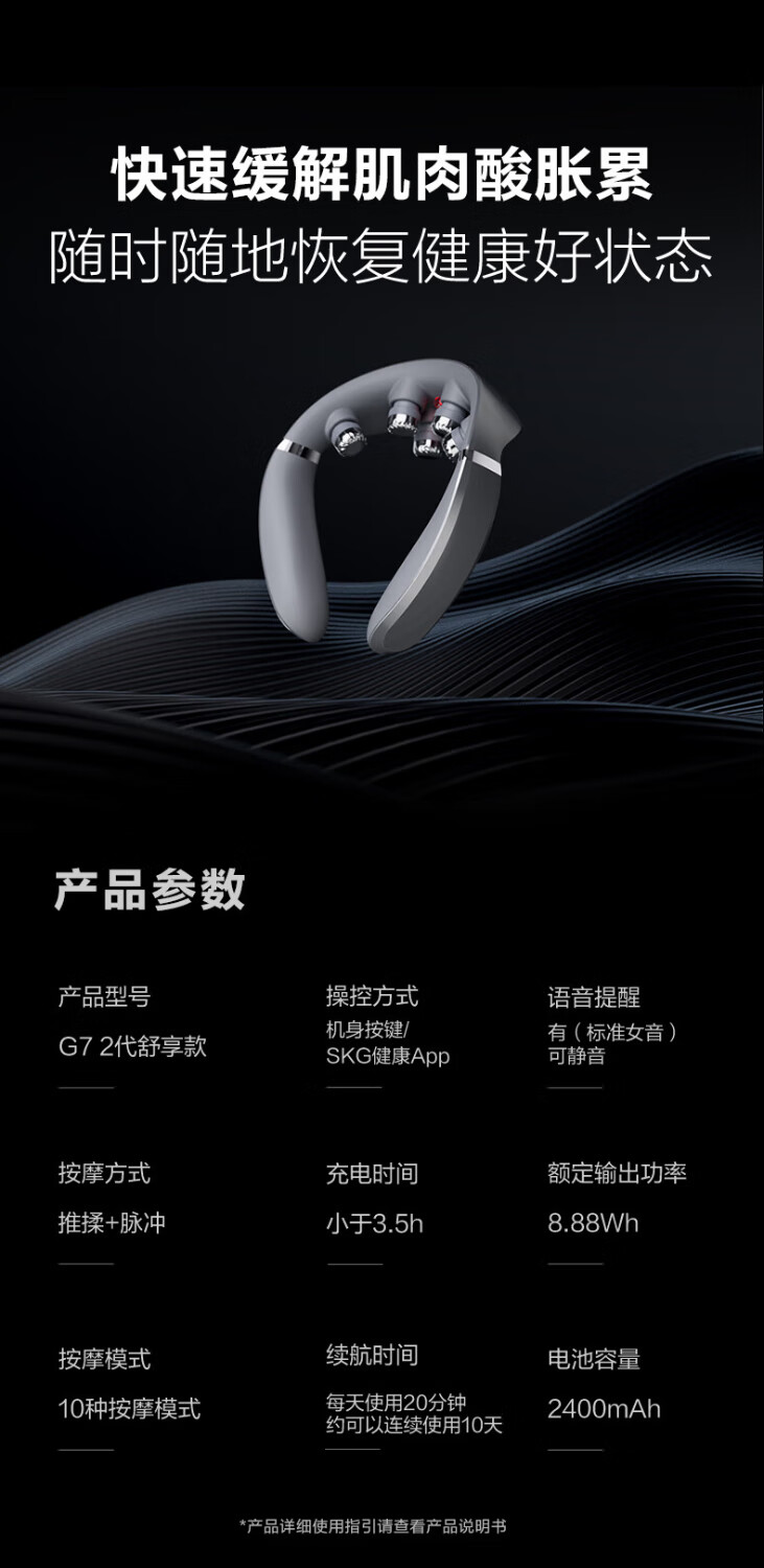 SKG颈椎按摩器G7 二代舒享款 物理推揉低频脉冲一体肩颈颈椎按摩仪便携热敷