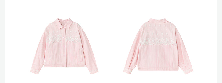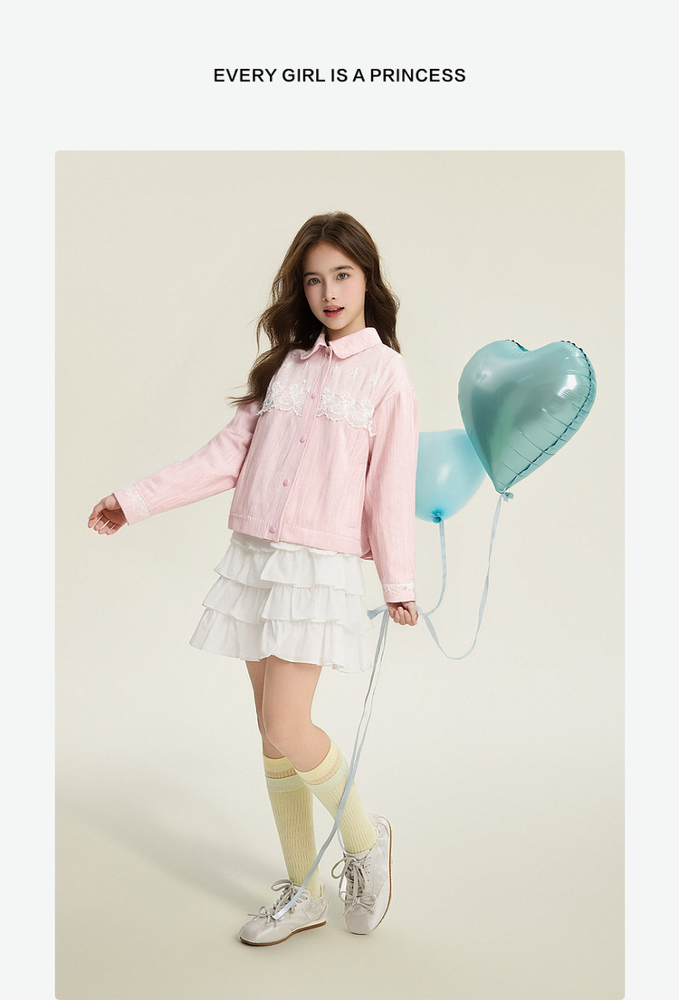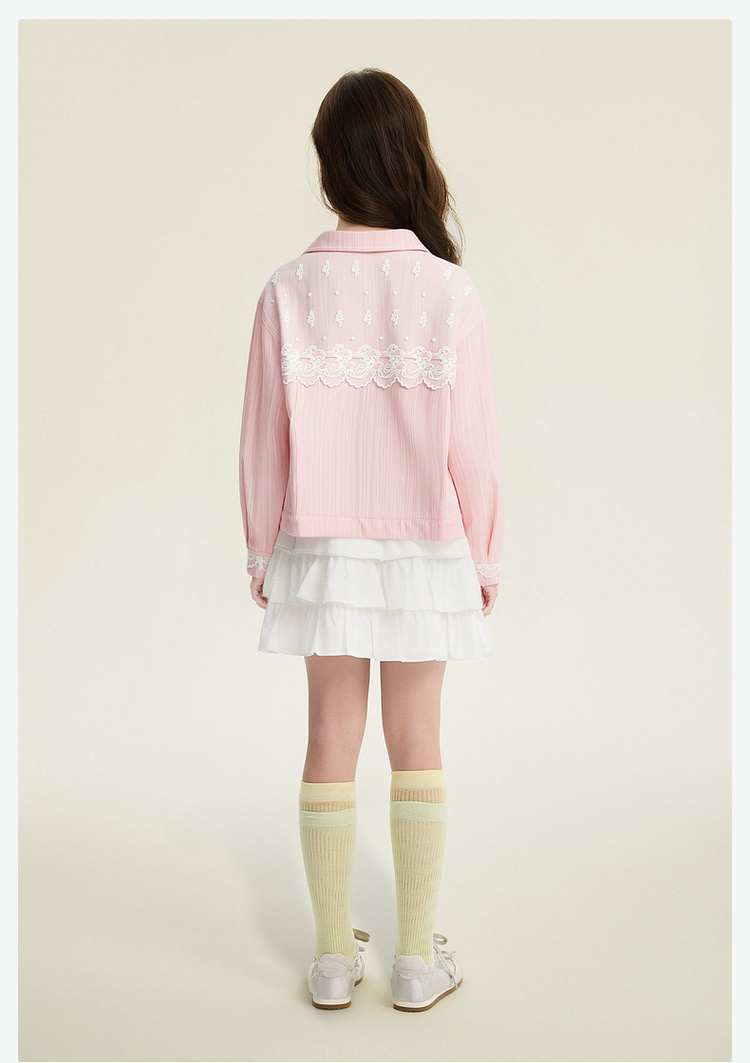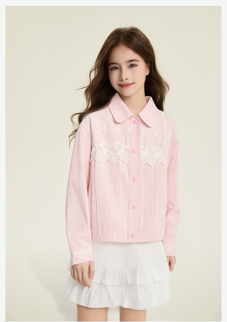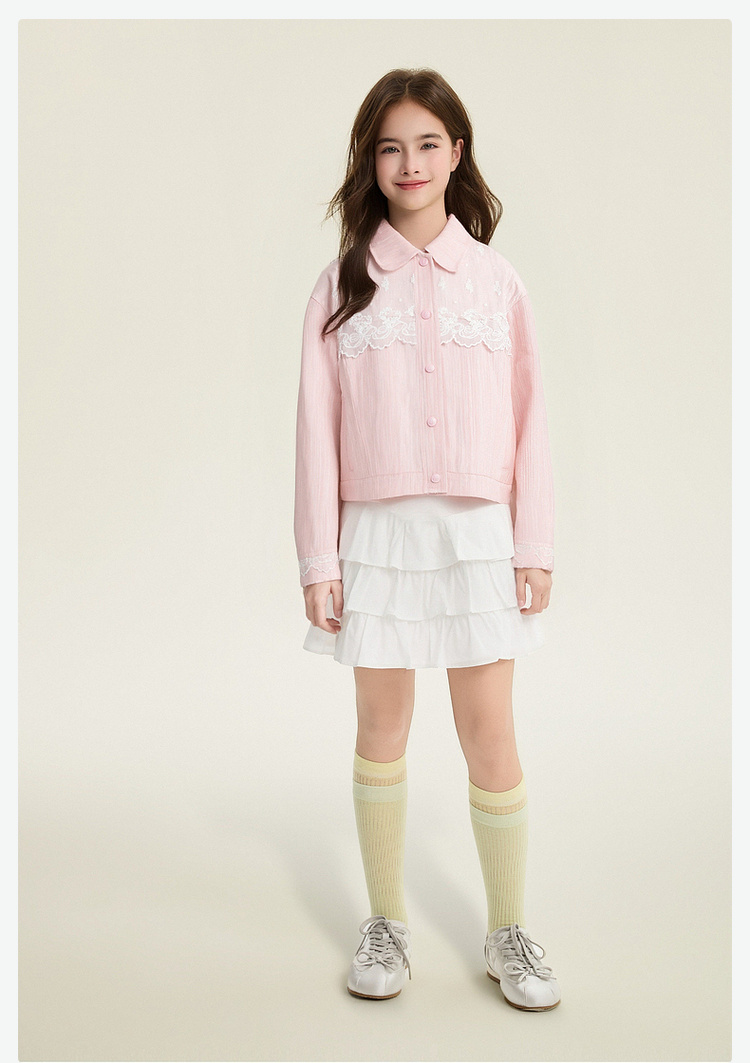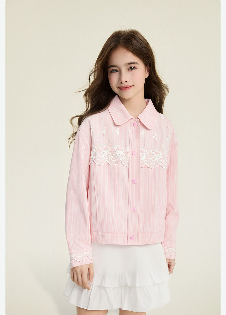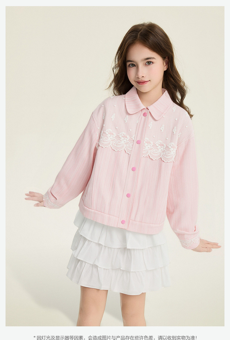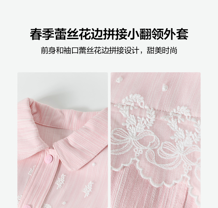 笛莎Deesha 童装女童外套2026春新款蕾丝花边拼接小翻领外套