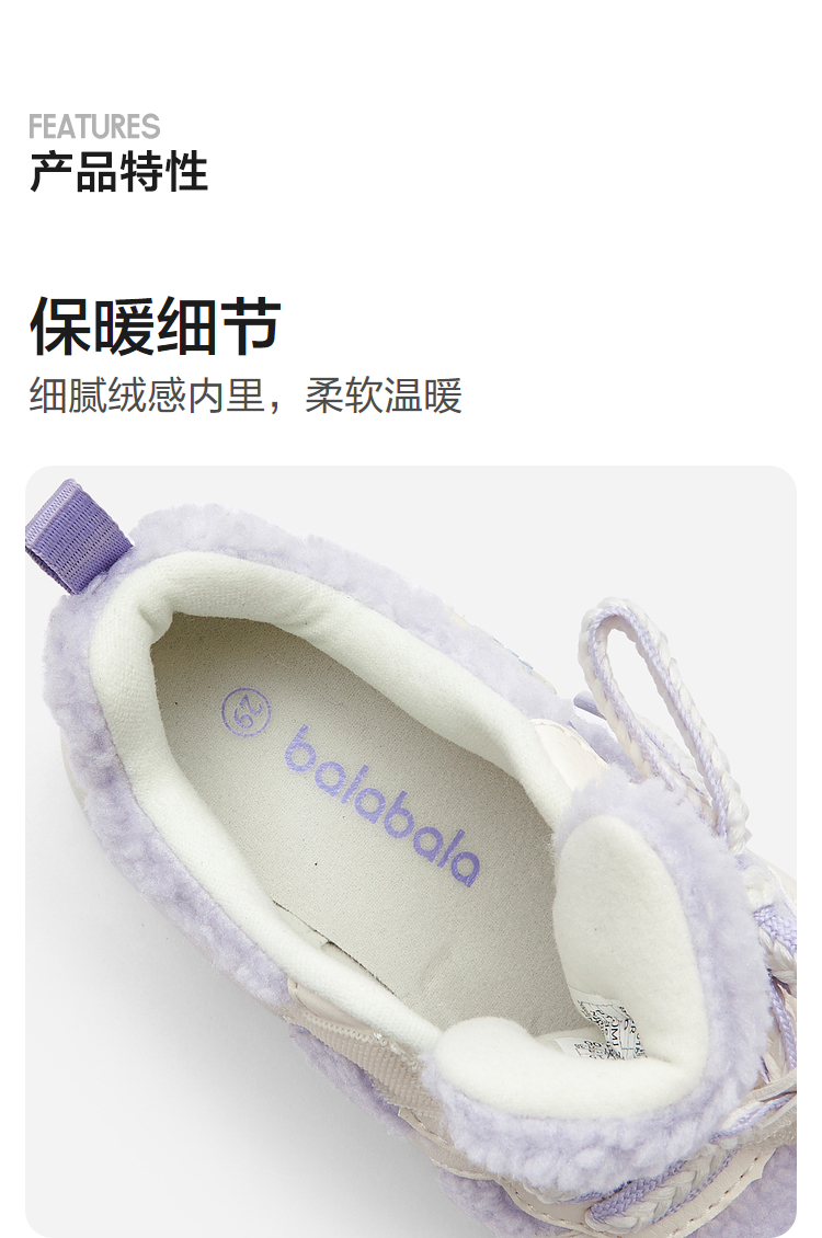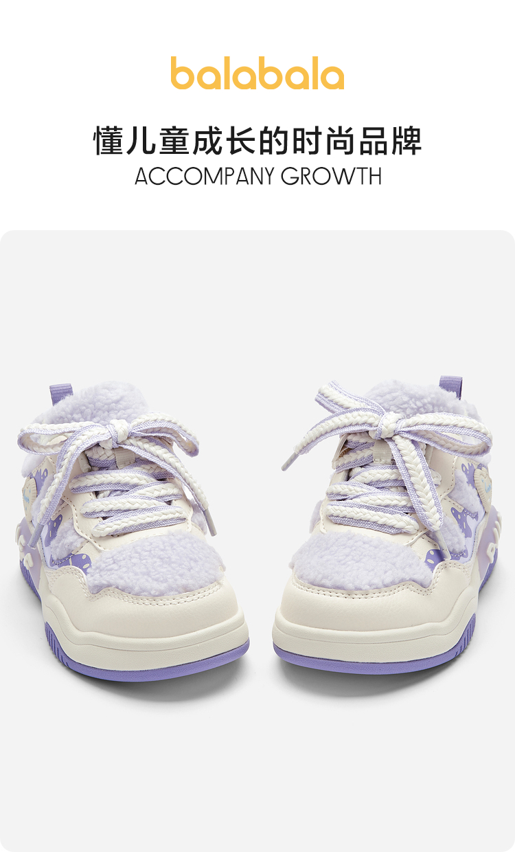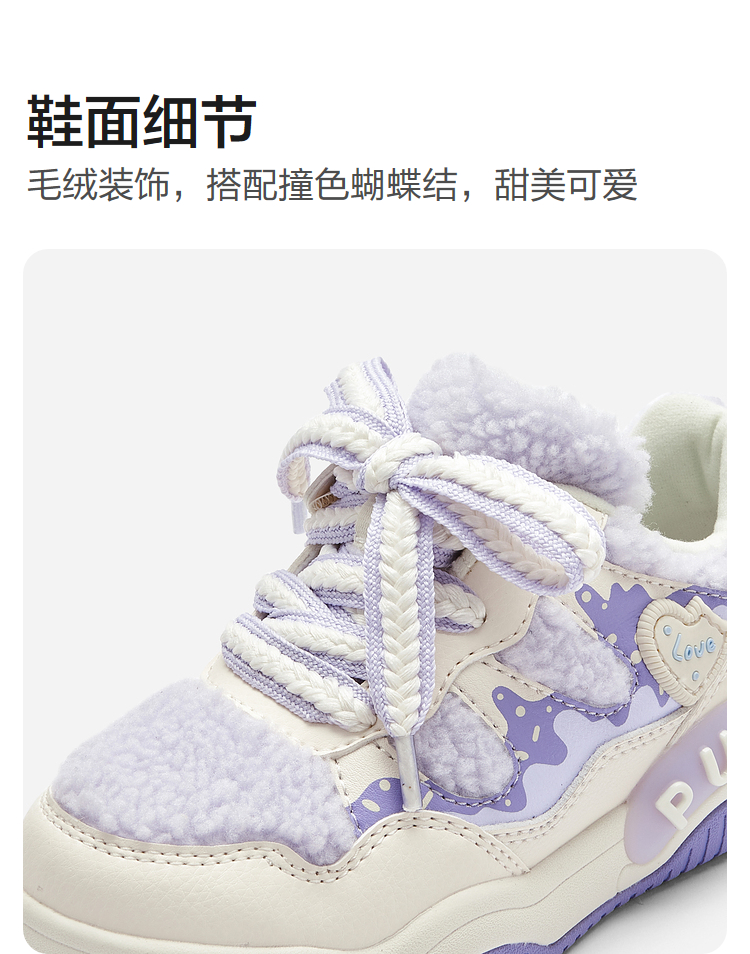 巴拉巴拉童鞋儿童板鞋女童毛绒鞋子秋冬新款休闲鞋甜美蝴蝶结