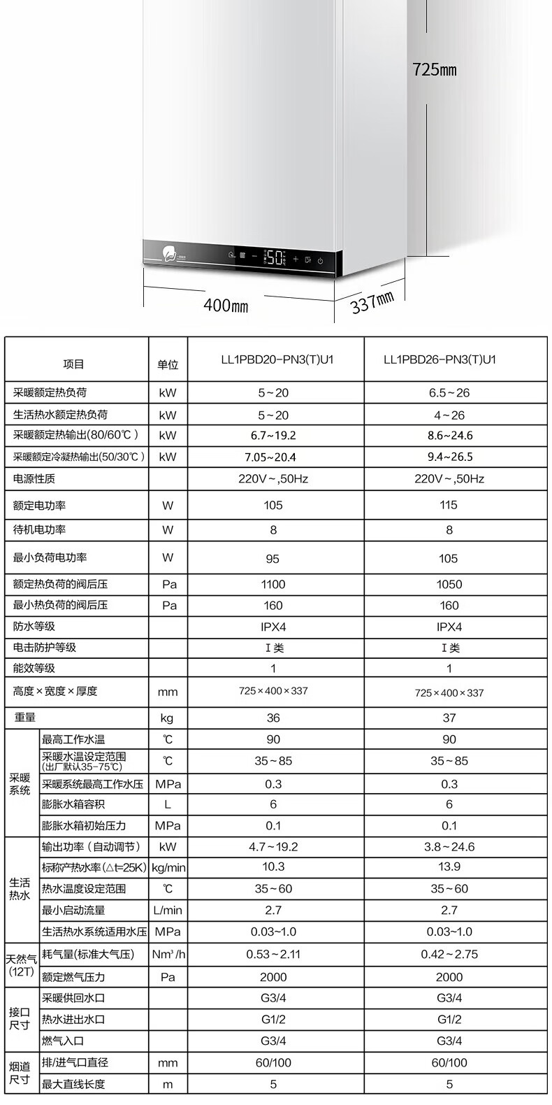 【海尔LL1PBD26-PN3(T)U1】海尔26KW燃气壁挂炉天然气采暖炉一级能效冷凝板换式家用地暖锅炉WiFi智能恒温洗浴LL1PBD26-PN3(T)U1