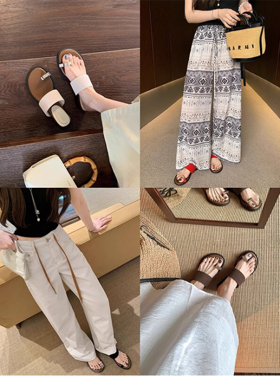 搭配马甲和长半裙 松弛chi💨不露腿也很凉快 套趾做了加大设计 脚趾宽大的姐妹也能穿❗❗ 每个颜色都敲正不俗气 太适合明媚浪漫的法式穿搭啦 轻盈自在无负担 便捷一脚蹬式更是懒人的菜📸 简单大气📌如“万金油”般的存在 夏天的衣服可任意搭 随便搭氛围感都好足啊 出去逛街回头率直接拉满