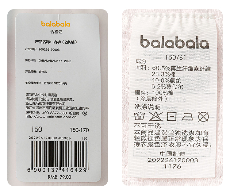 巴拉巴拉女童内裤夏季新款三角儿童短裤优可丝舒适弹生理裤两条装