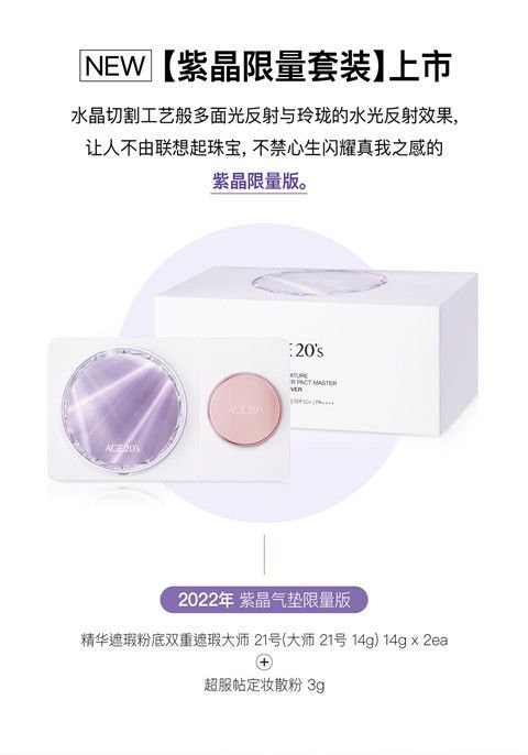 【预售 急单慎拍】爱敬气垫新款紫晶限量版遮瑕保湿持久age20s粉底液bb霜 原价 238元