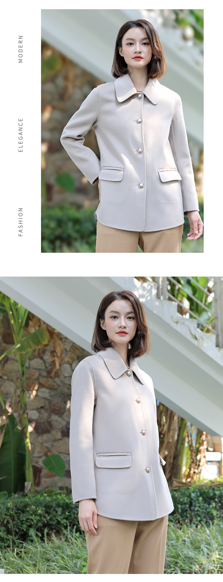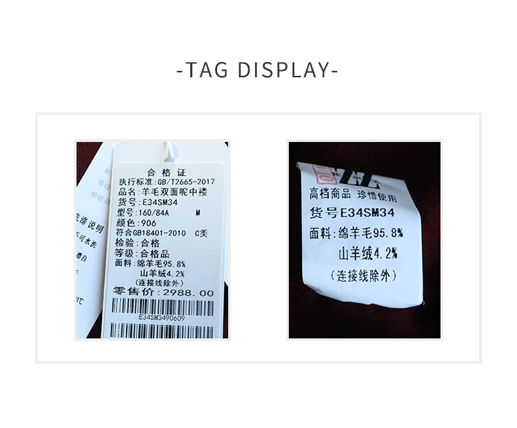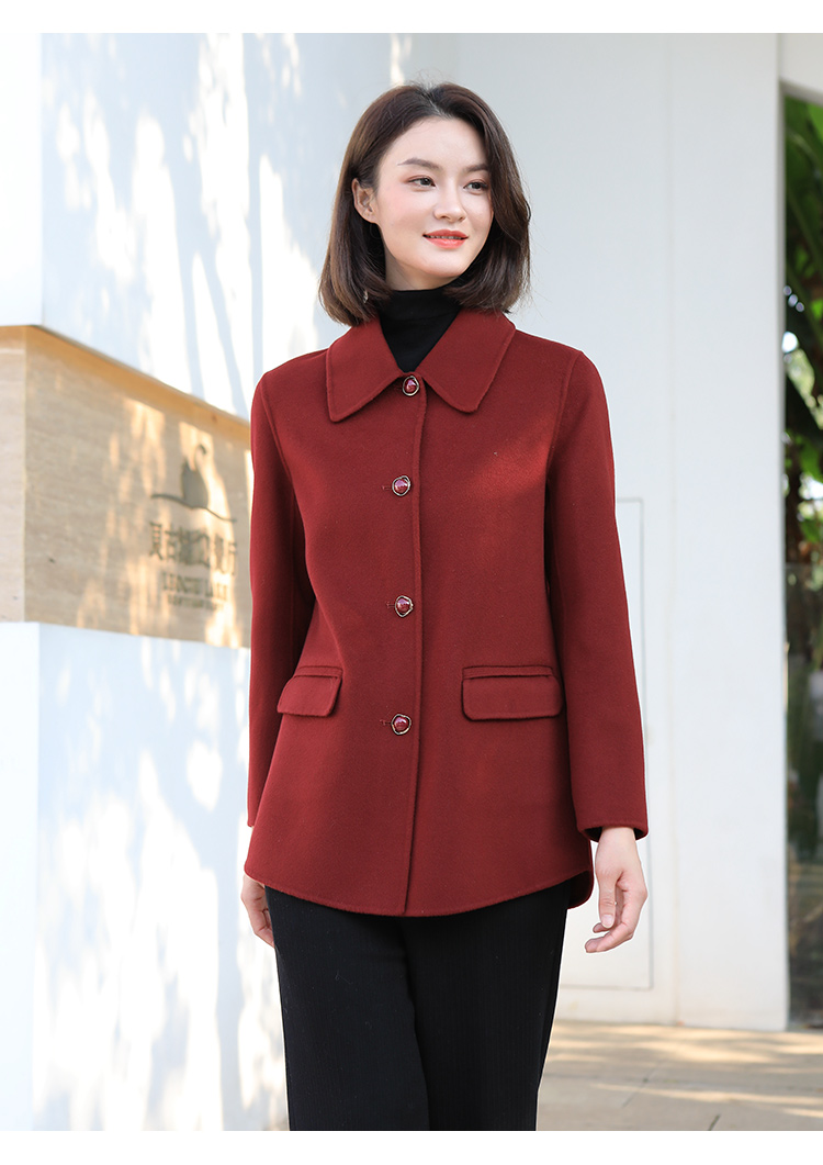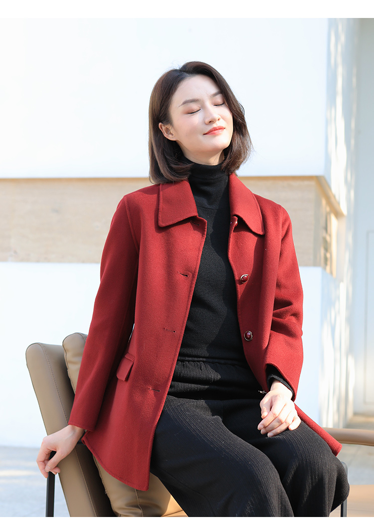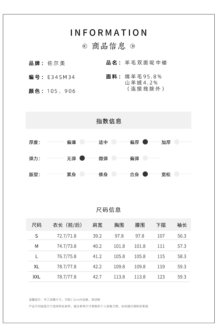 佐尔美冬季新款 经典简约气质羊毛双面呢大衣外套女E34SM34