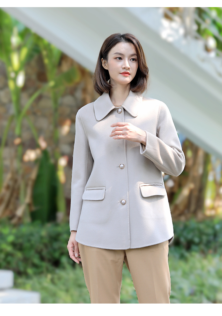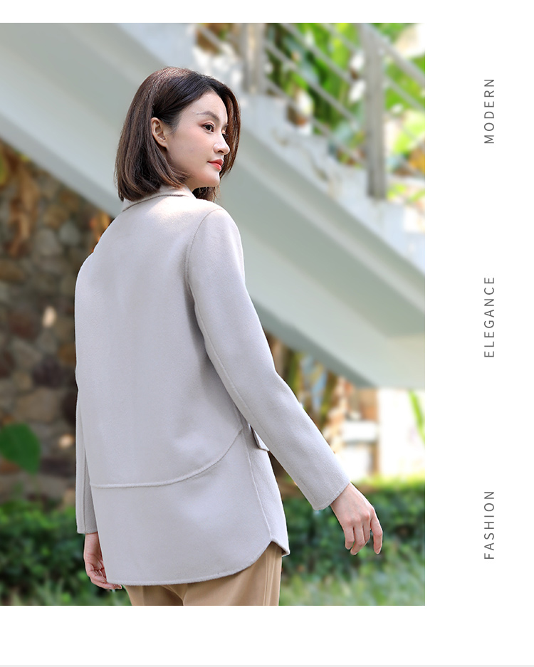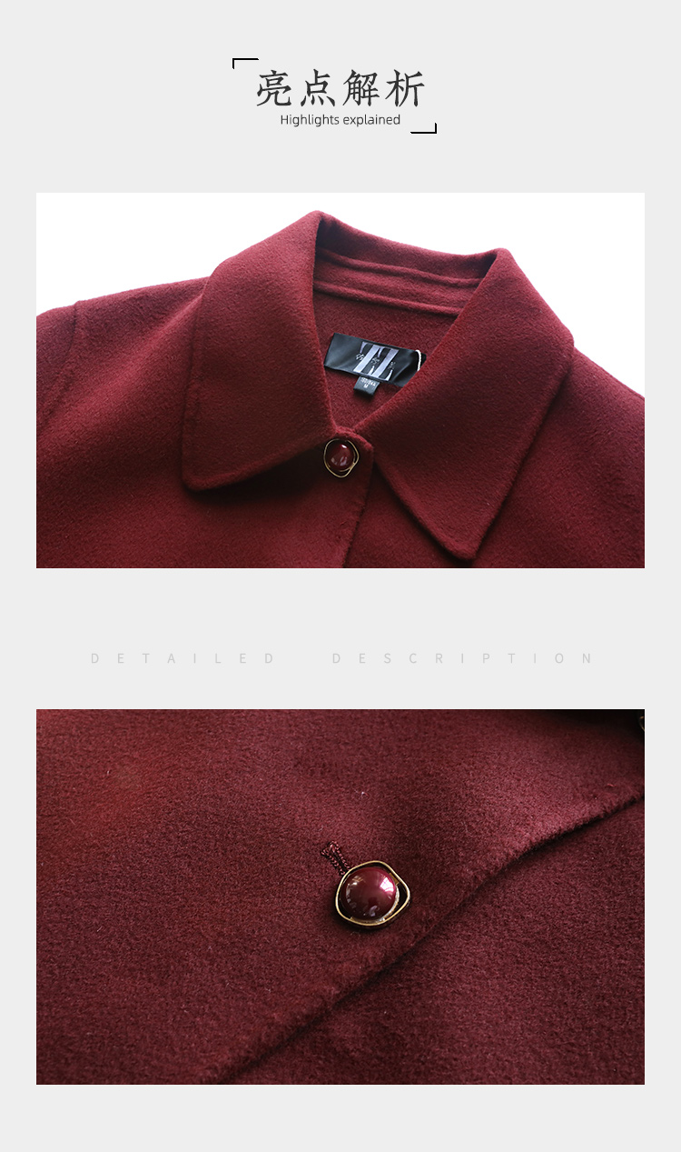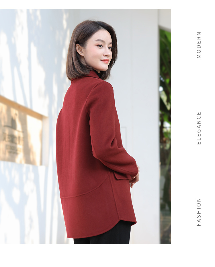 佐尔美新品冬女装纯色百搭修身双面呢羊毛山羊绒大衣外套E74SM32