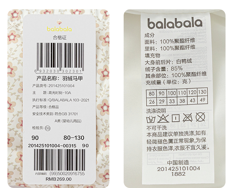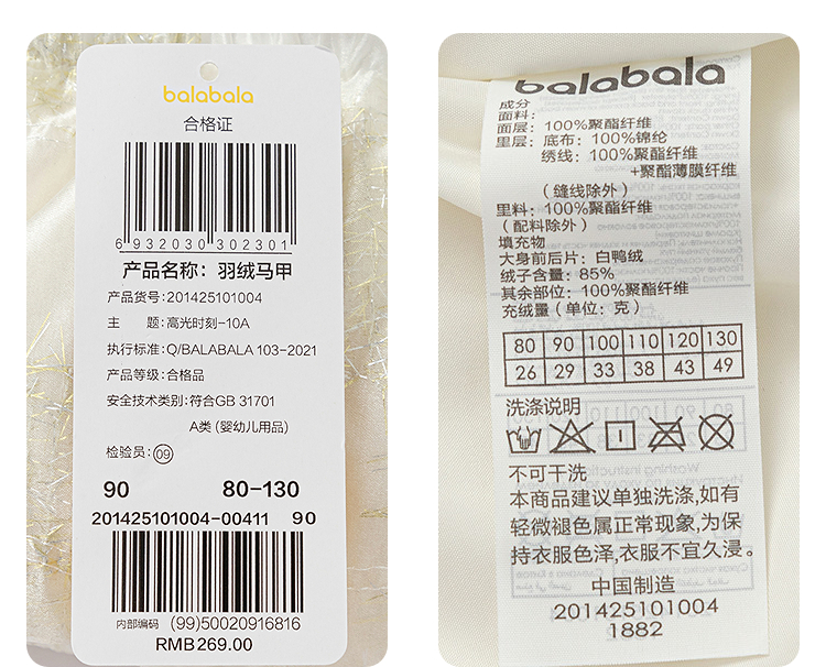 【商场同款】巴拉巴拉宝宝羽绒马甲甜美A型女童外套2025新款冬装
