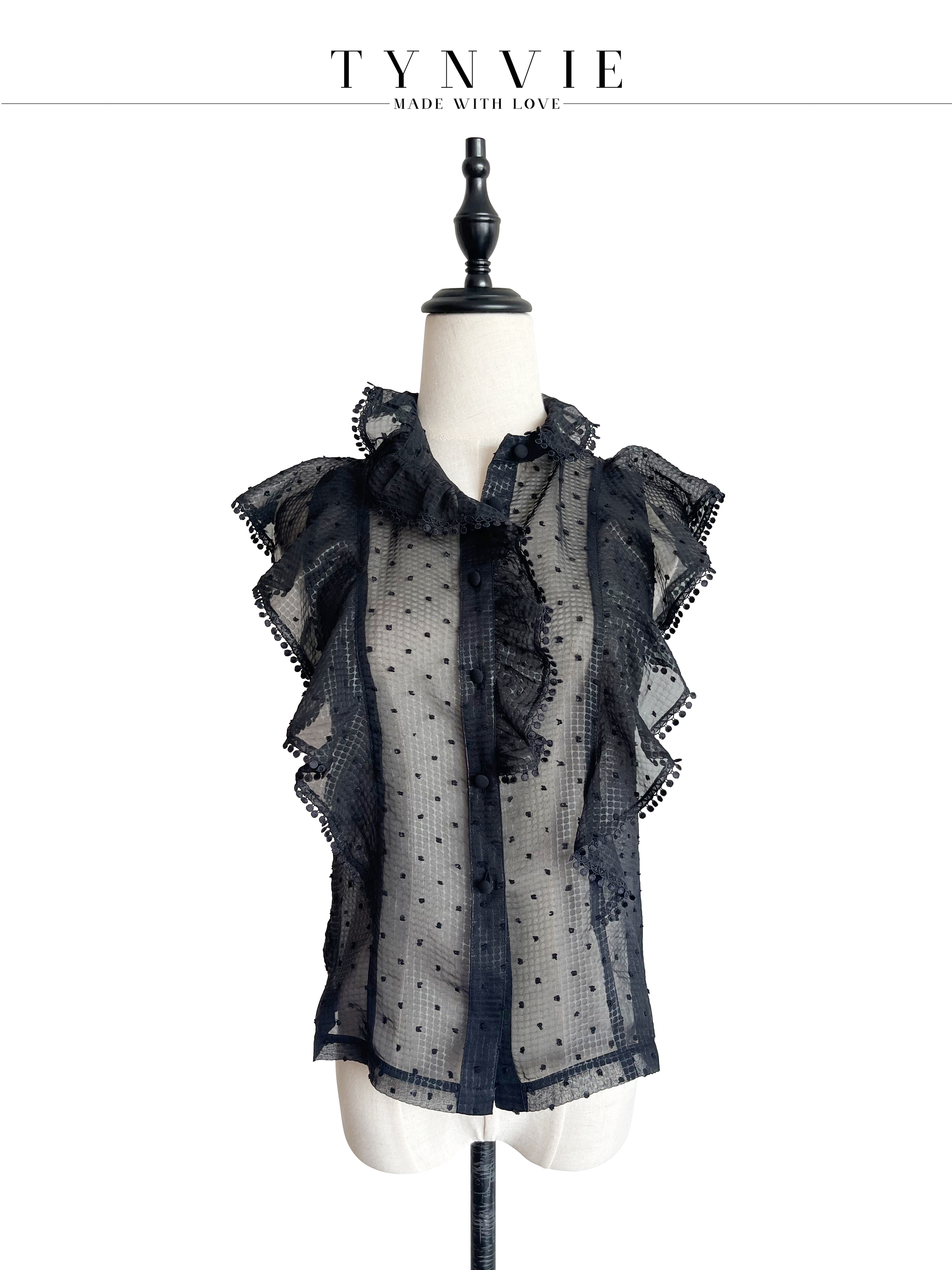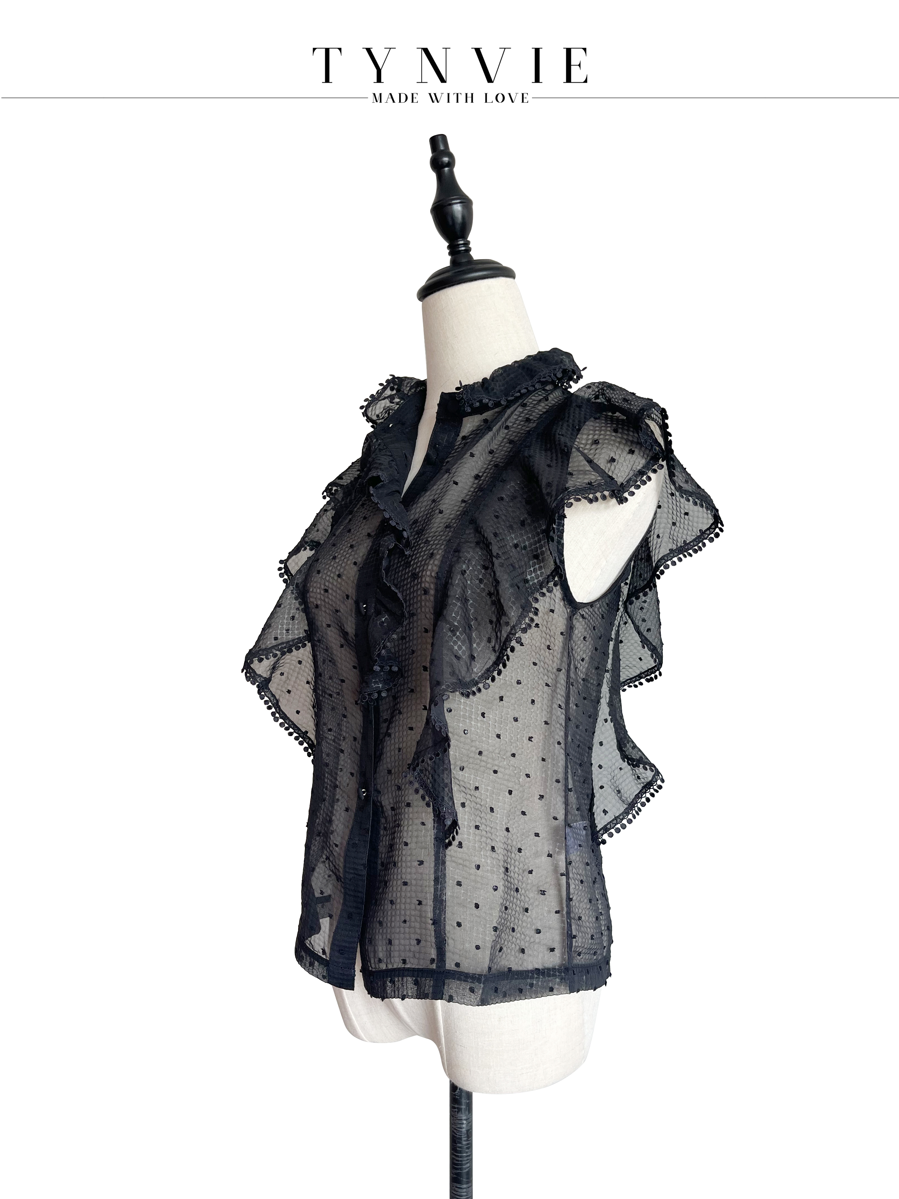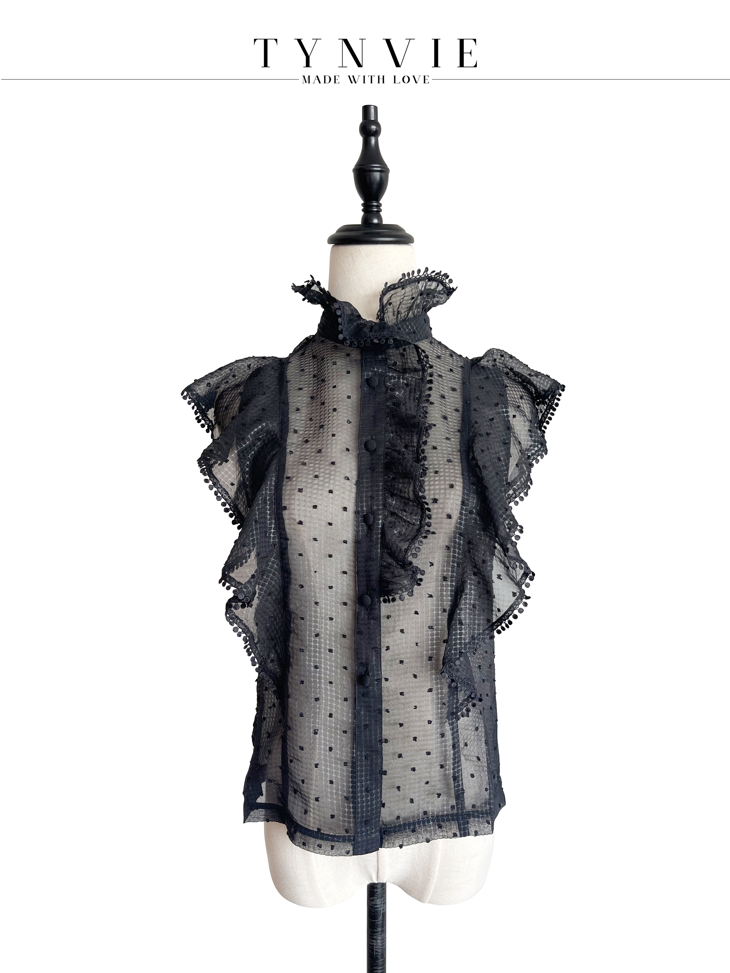 TYNVIE 荷叶边装饰小高领上衣-黑色