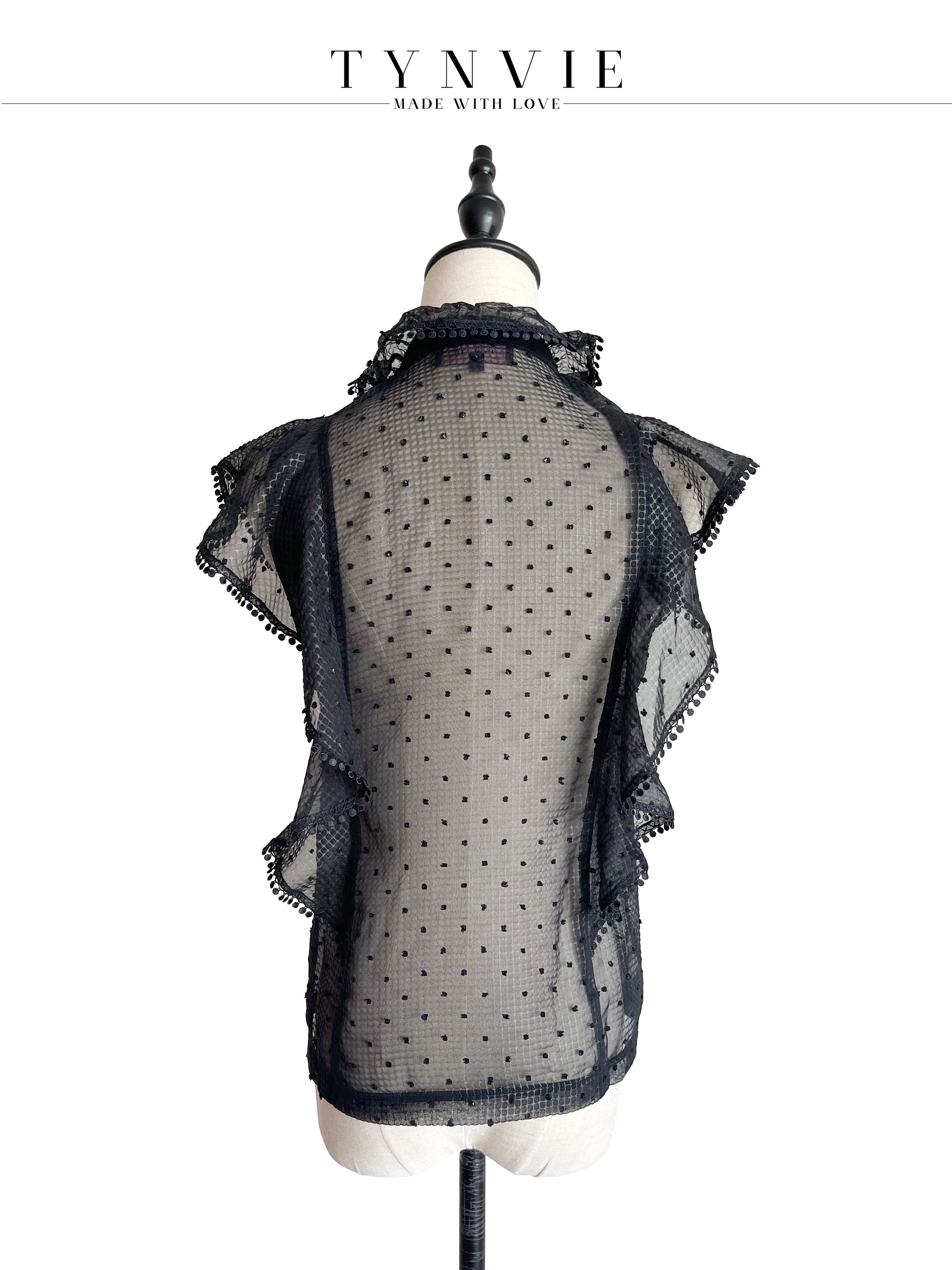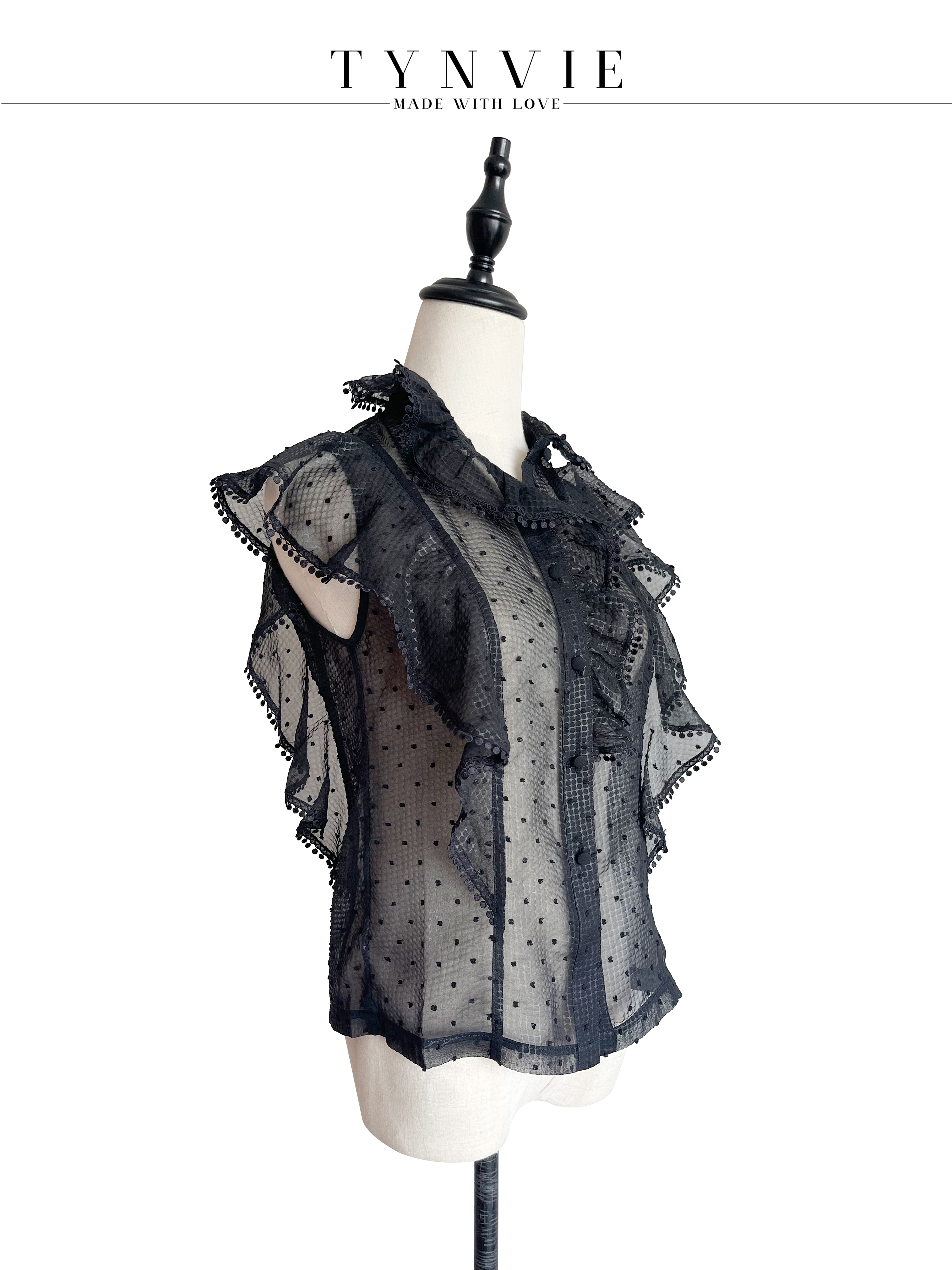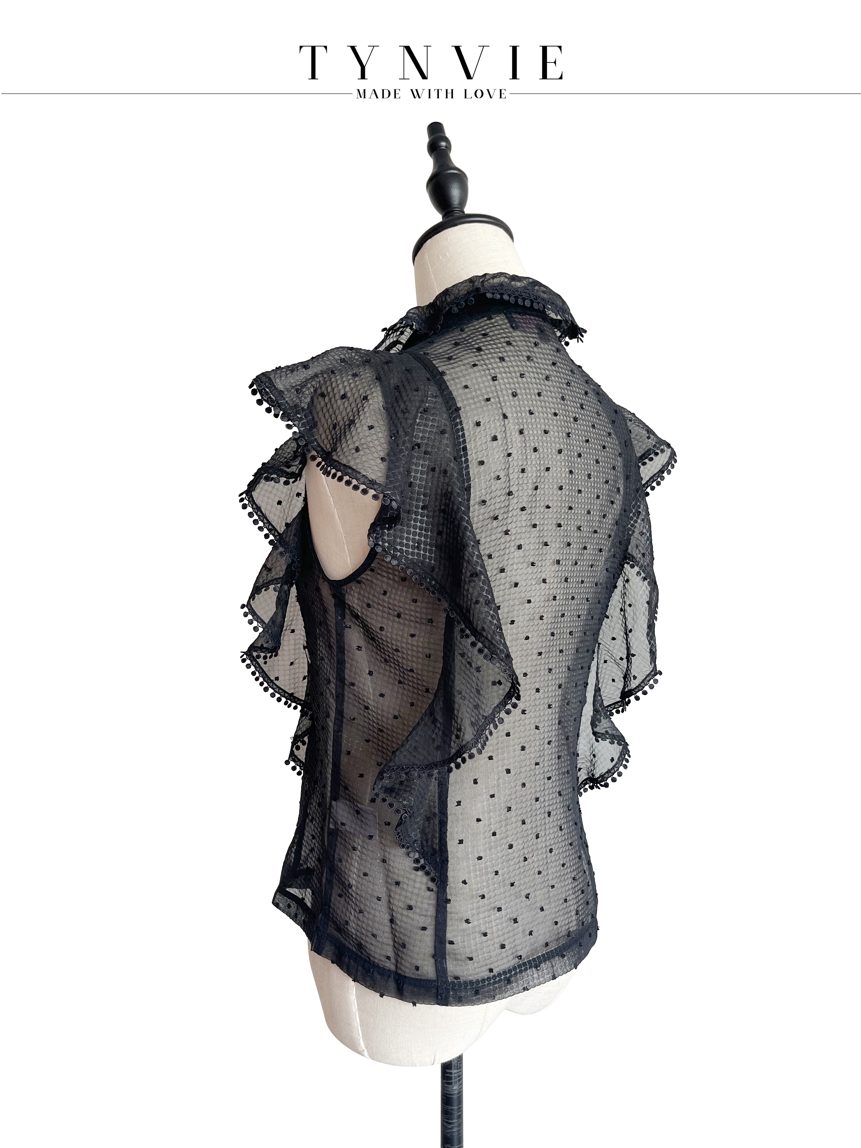 TYNVIE 荷叶边装饰小高领上衣-黑色