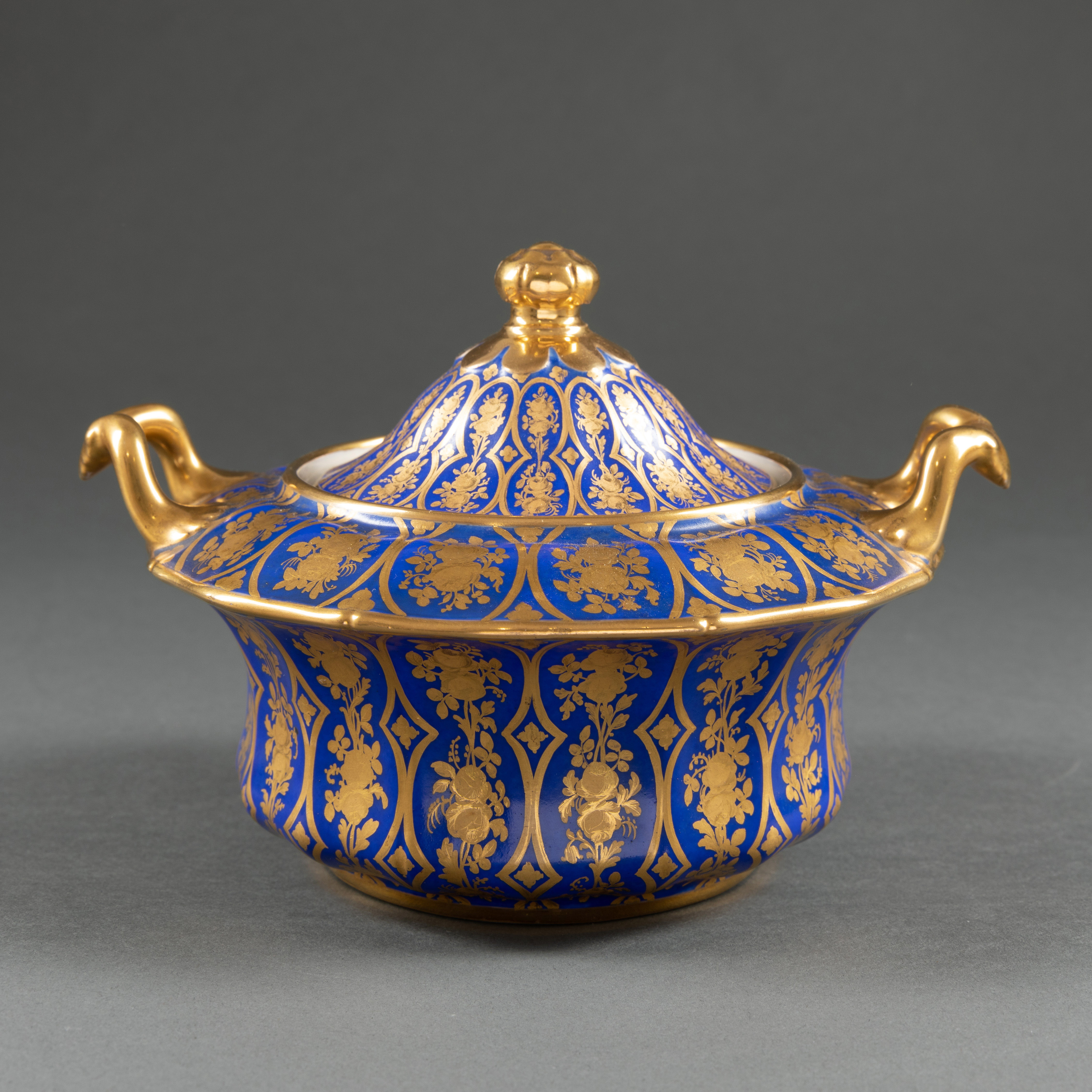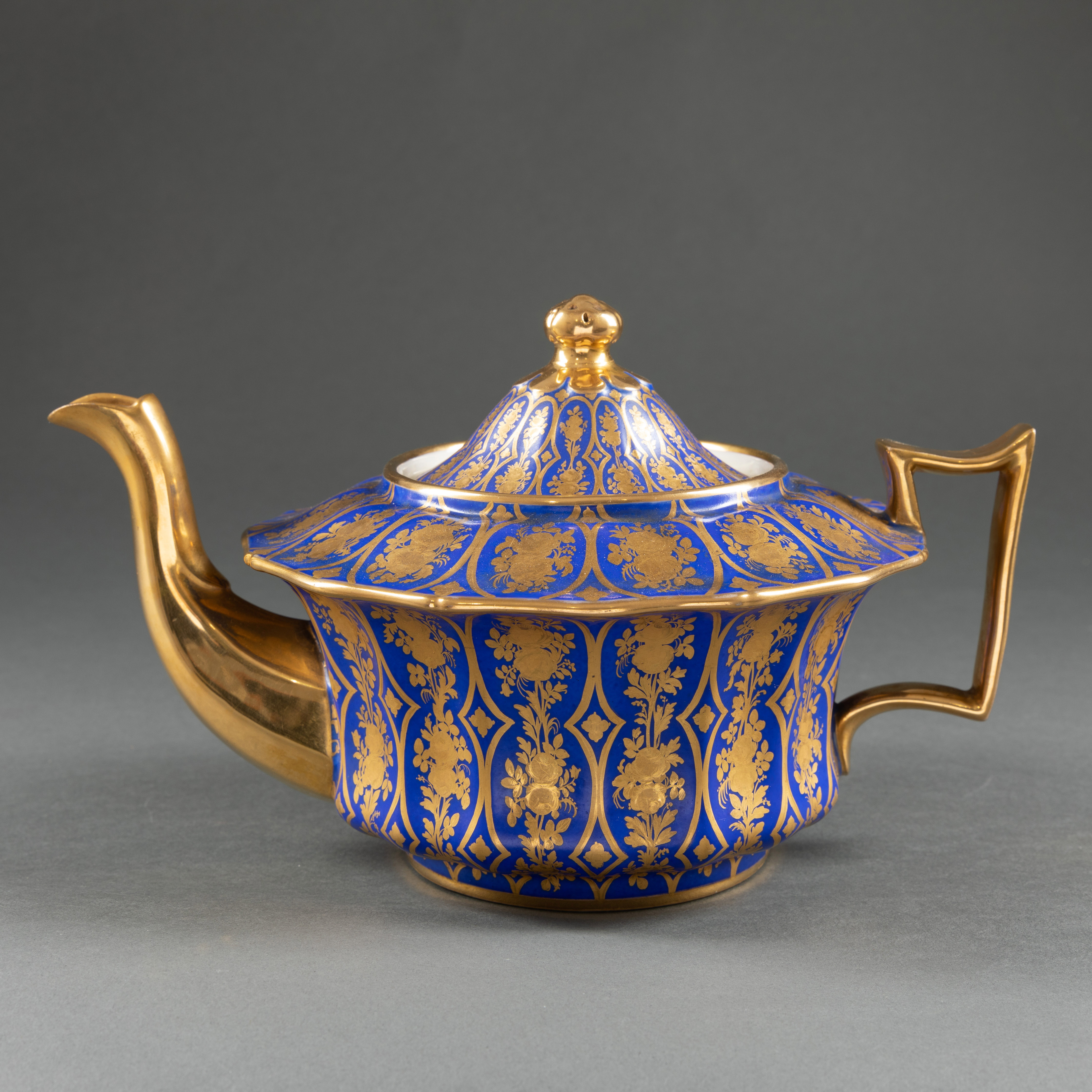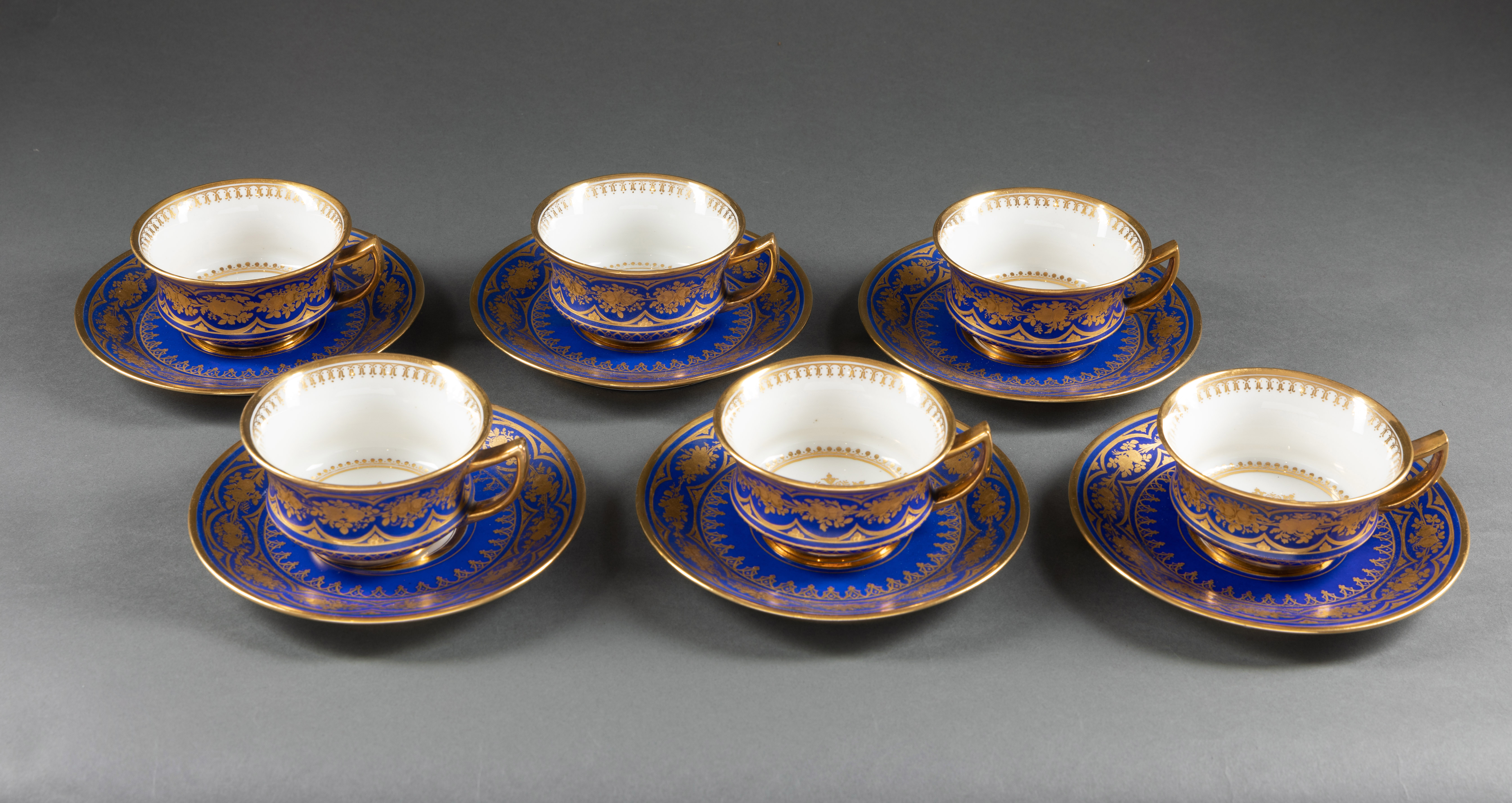 独角鹿西洋古董1835年代法国出品蓝色瓷器描金下午茶茶具套件