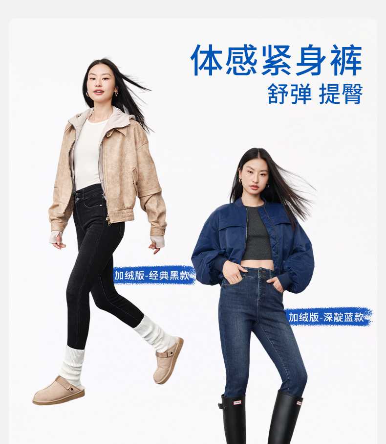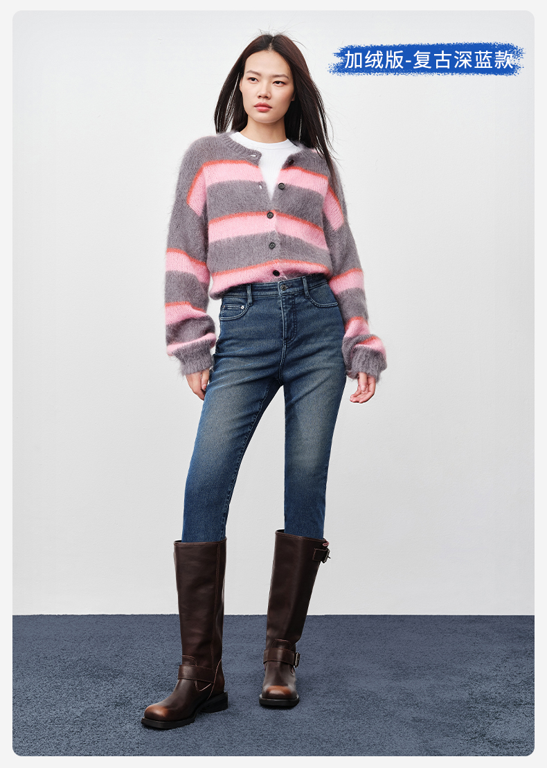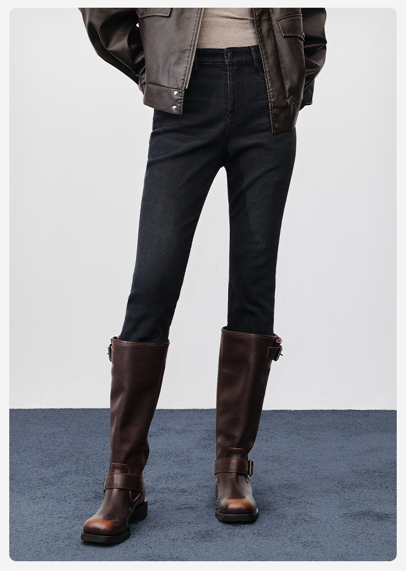 【保暖超紧身裤经典版】simplepieces秋冬SPS牛仔深色加绒九分裤