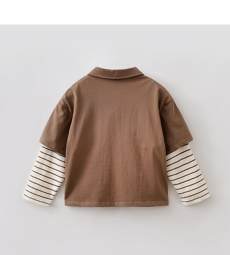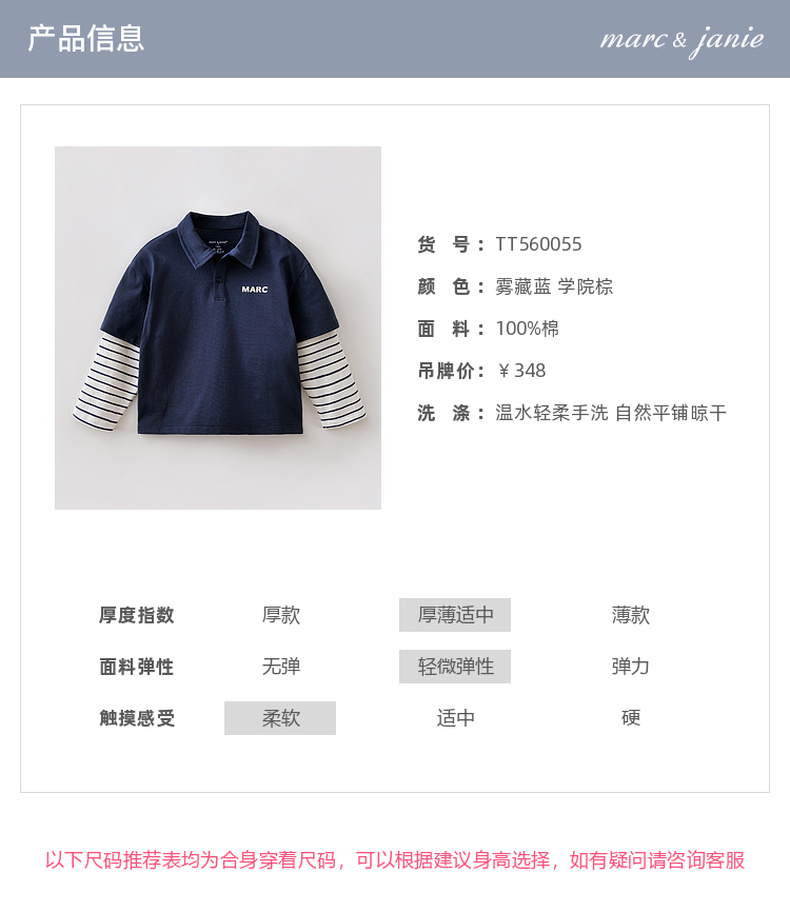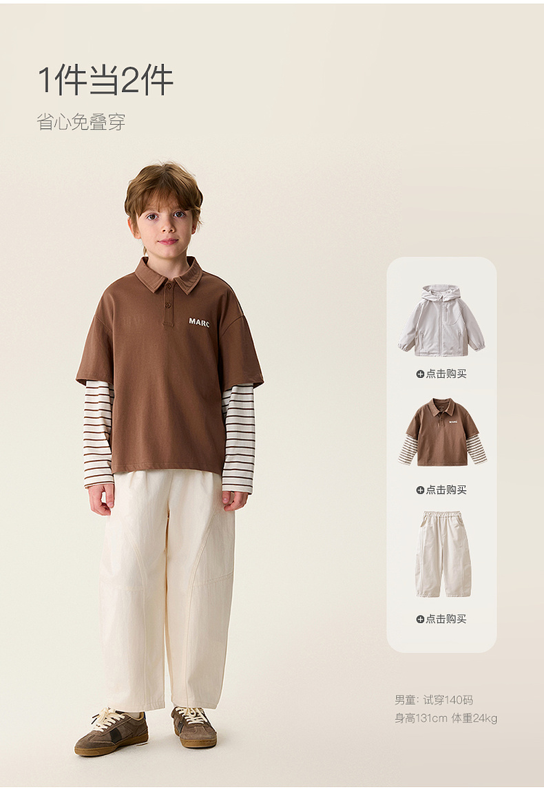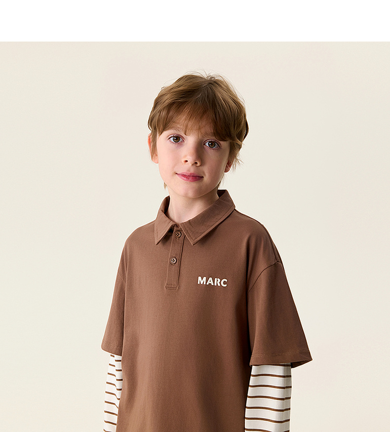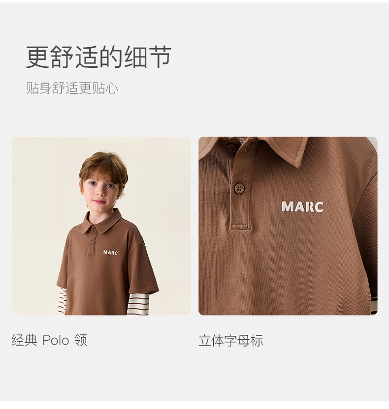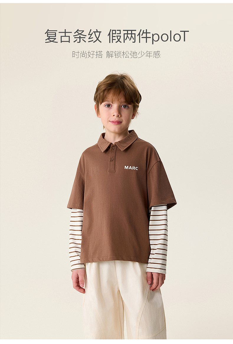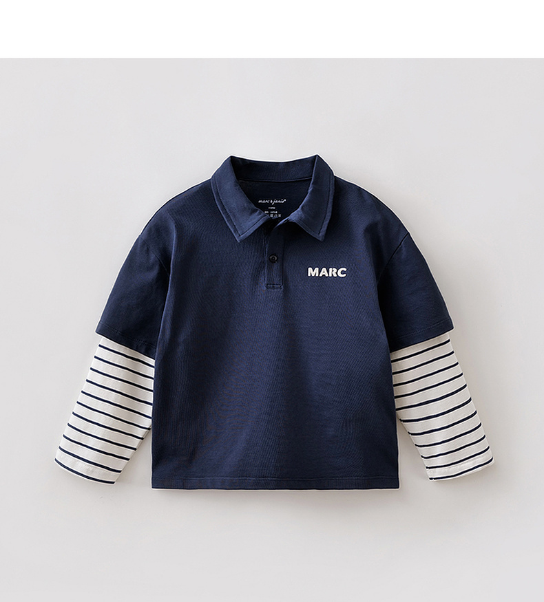 马克珍妮复古条纹男童假两件POLOT恤2026年春装新款560055