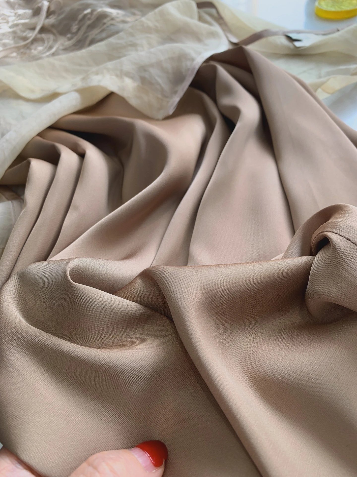 面料是混纺的,内里的裙子特别像缎面的,有光泽,丝滑柔软,贴身穿亲肤凉快哦