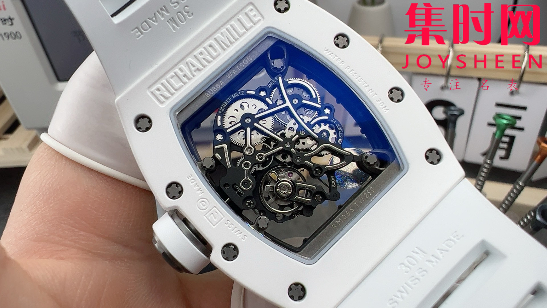 理查德米勒 APS新款RM055 RM55 陶瓷壳 男士腕表 丹东RMUL2一体机 里查德以其轻便时尚为主题,我们所有的金属件都采用钛金属制作同步原版(看见的看不见的金属配件全是钛),作为亿万富豪的入场券,我们采用定制丹东一体机芯RMUL2,表壳,表带以及所有配件