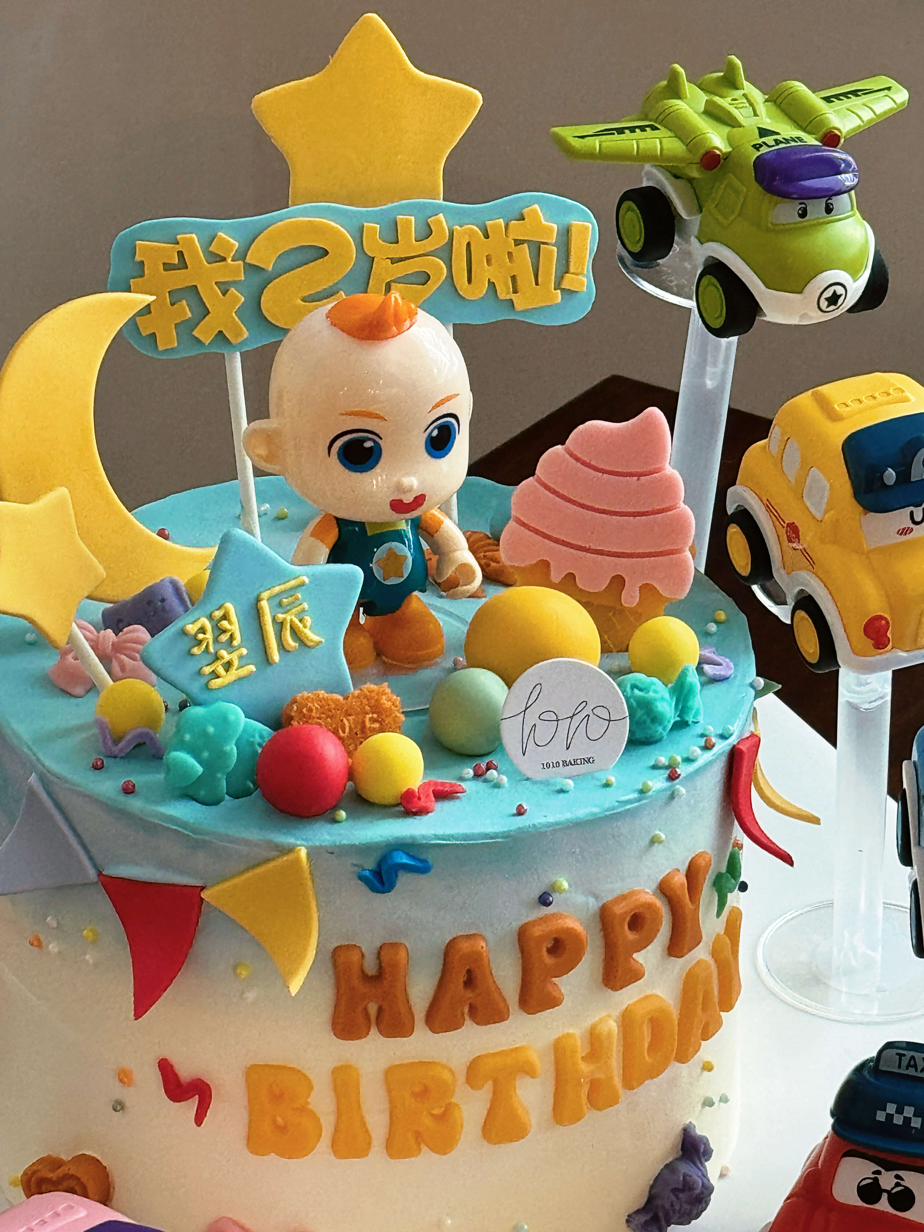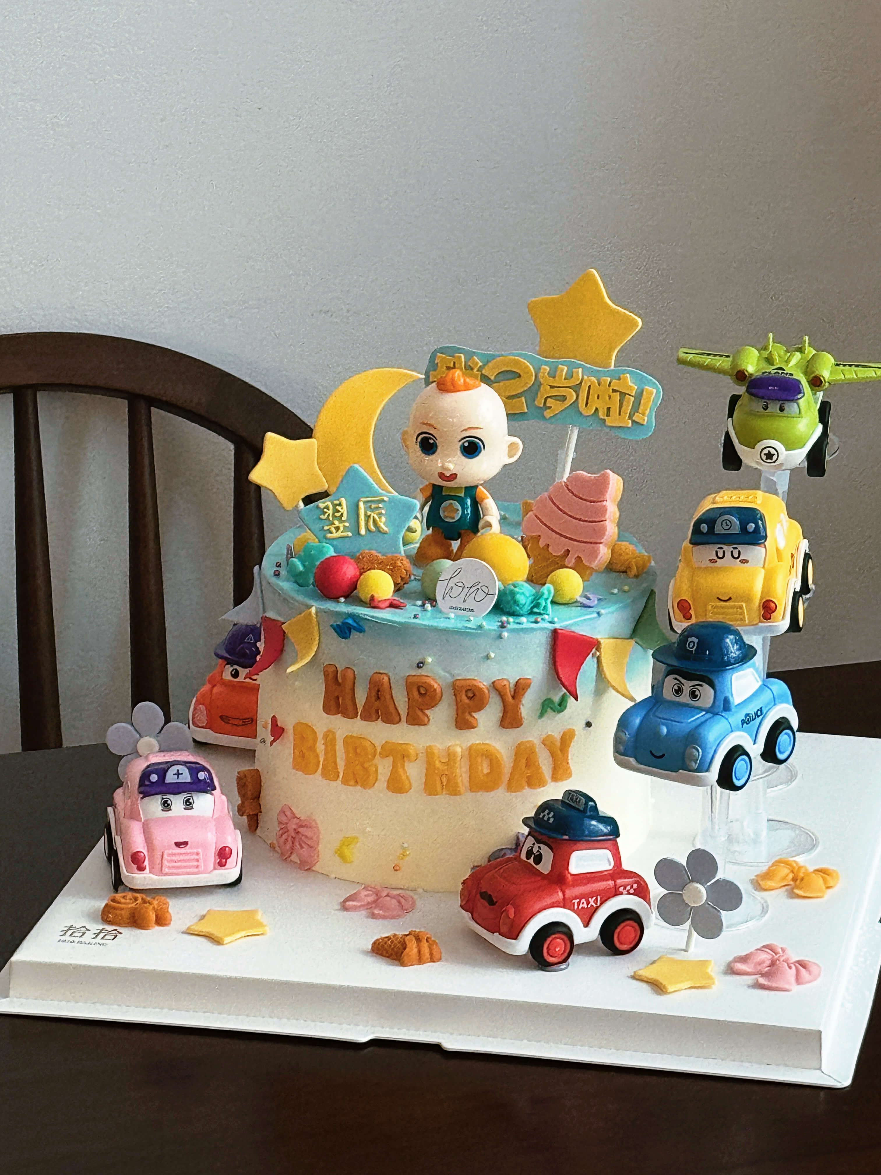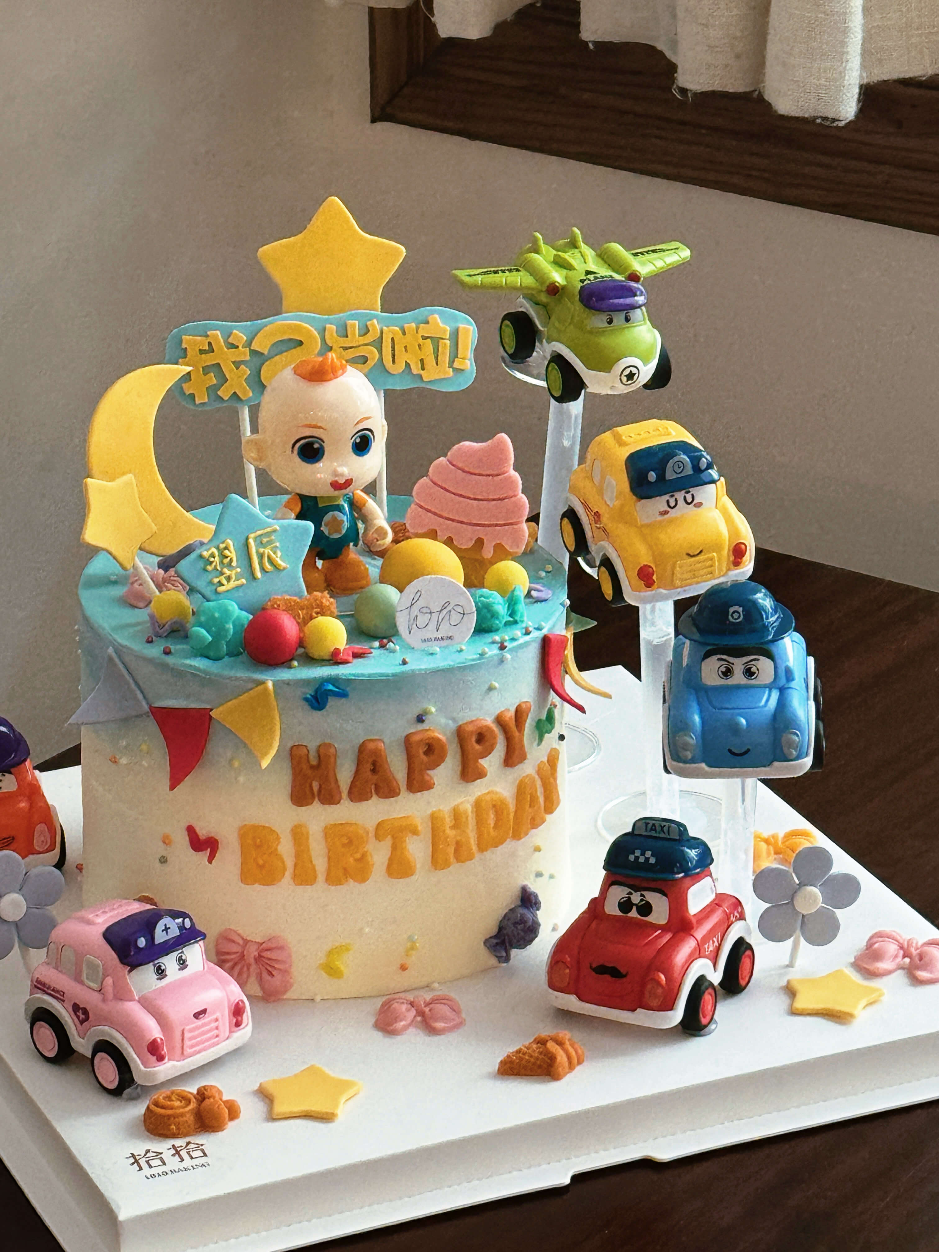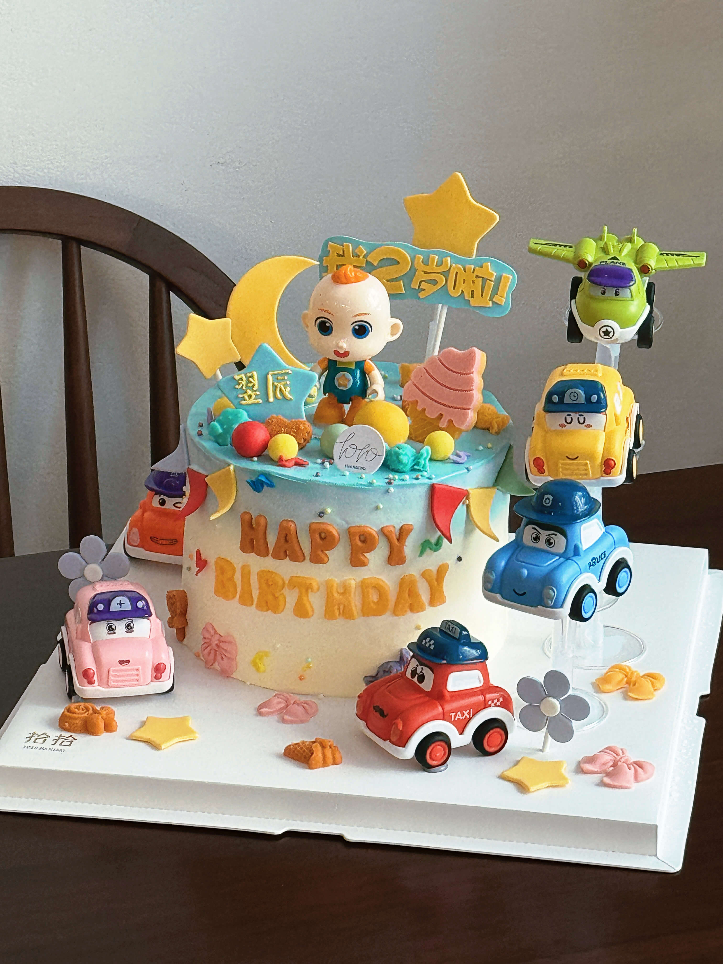 「宝贝JoJo·小汽车」岁数可改·翻糖巧克力·100%动物奶油(附图6寸加高·提前5天预订)