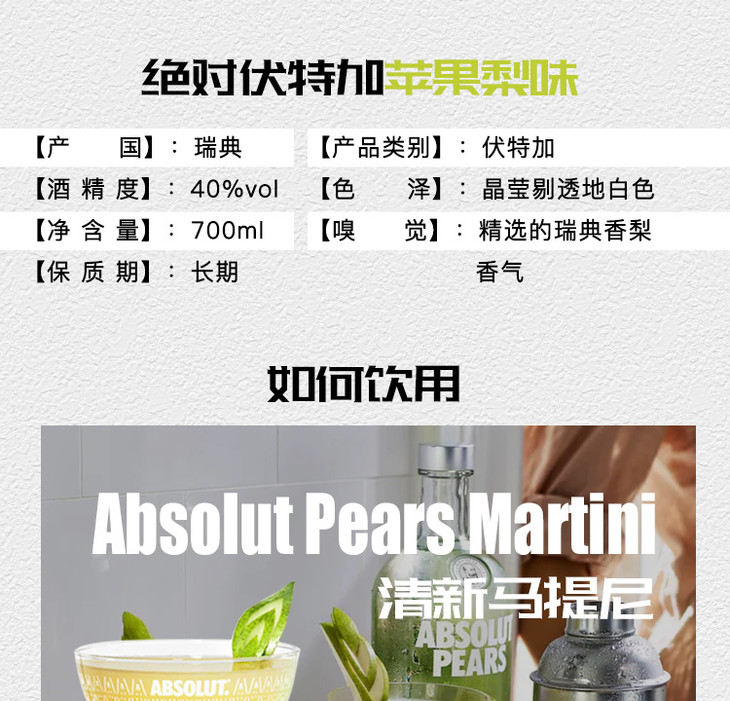 绝对伏特加 苹果梨味 700ml/1瓶/2瓶