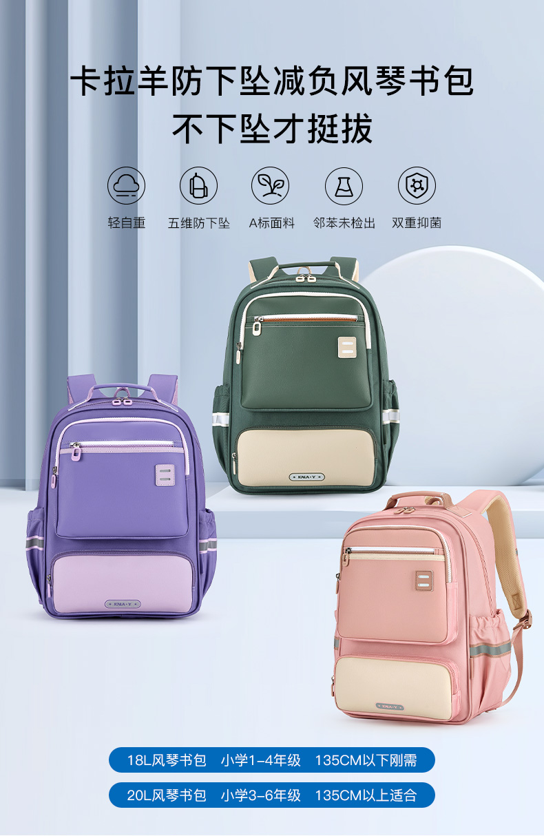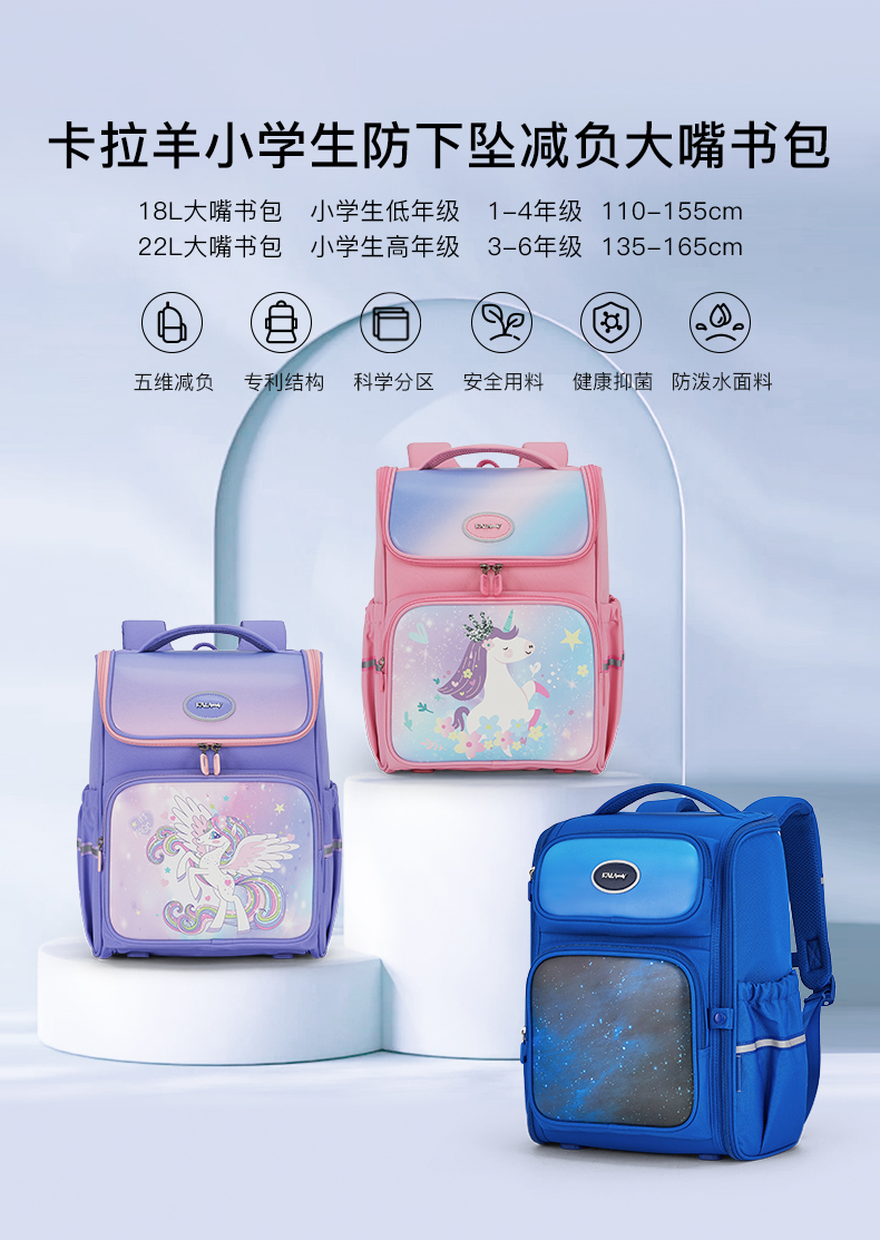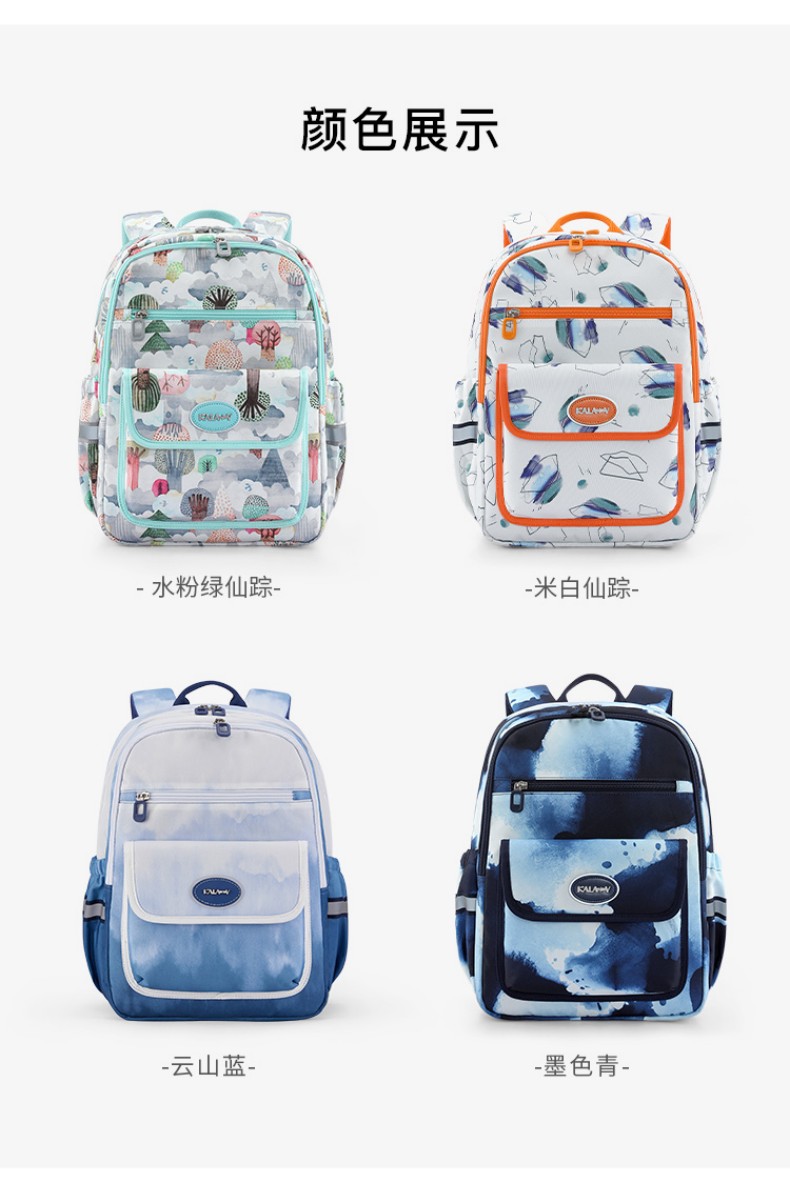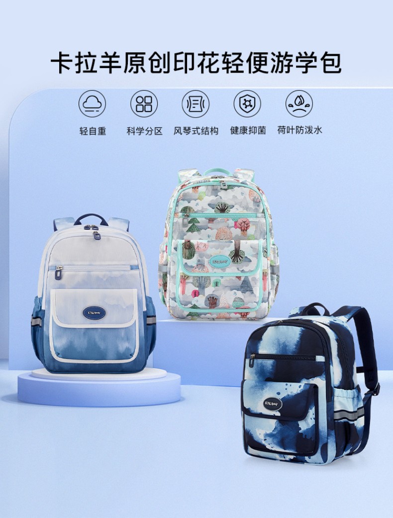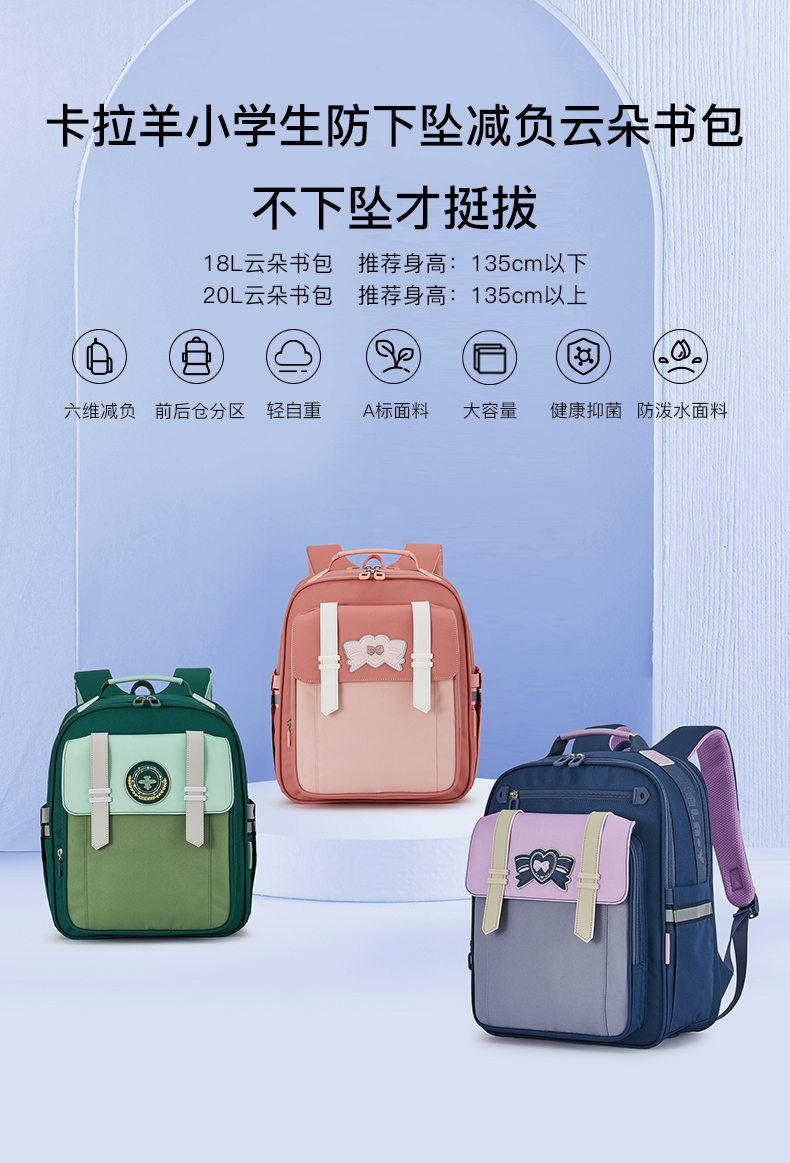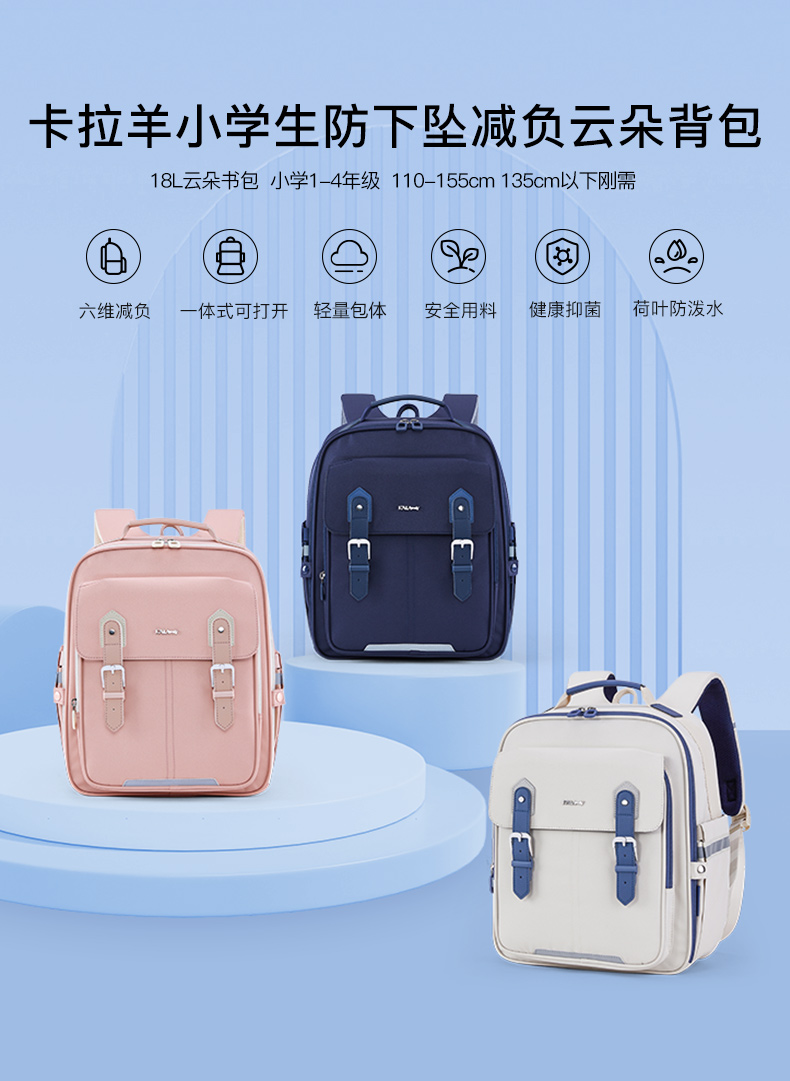 卡拉羊 中小学生1-6年级大容量轻便减压减负护脊书包学生双肩包背包