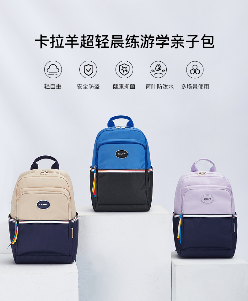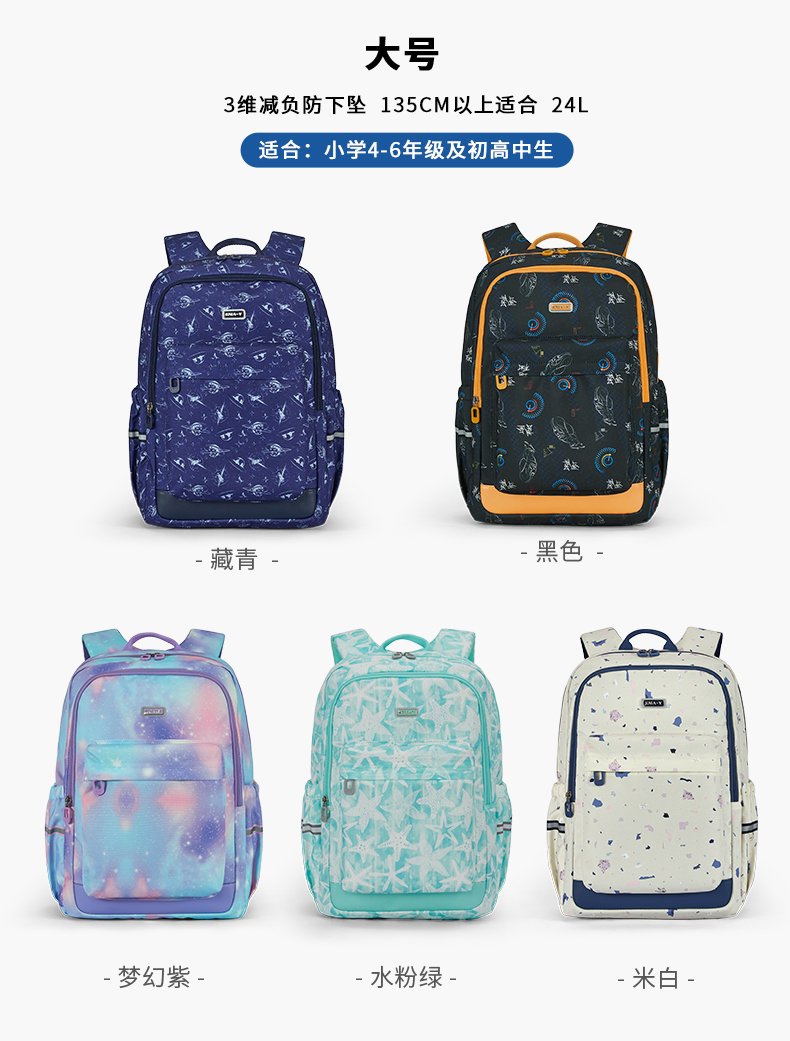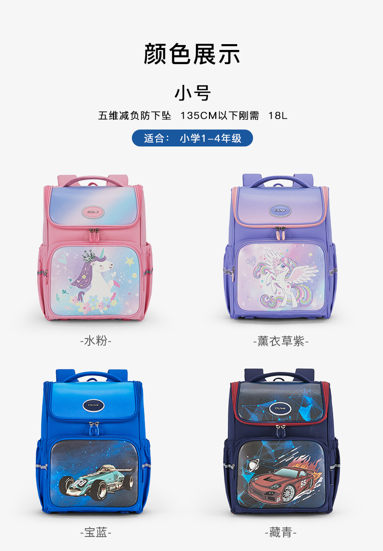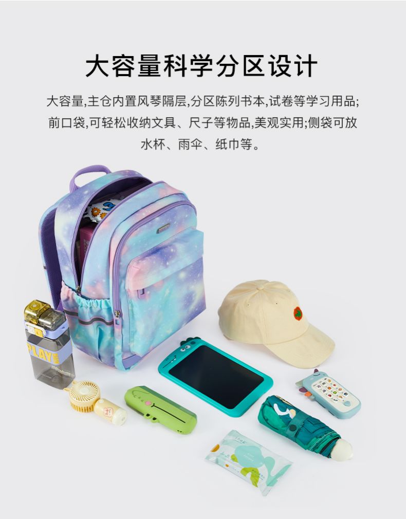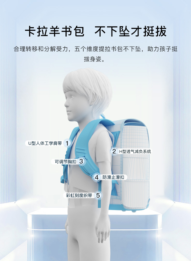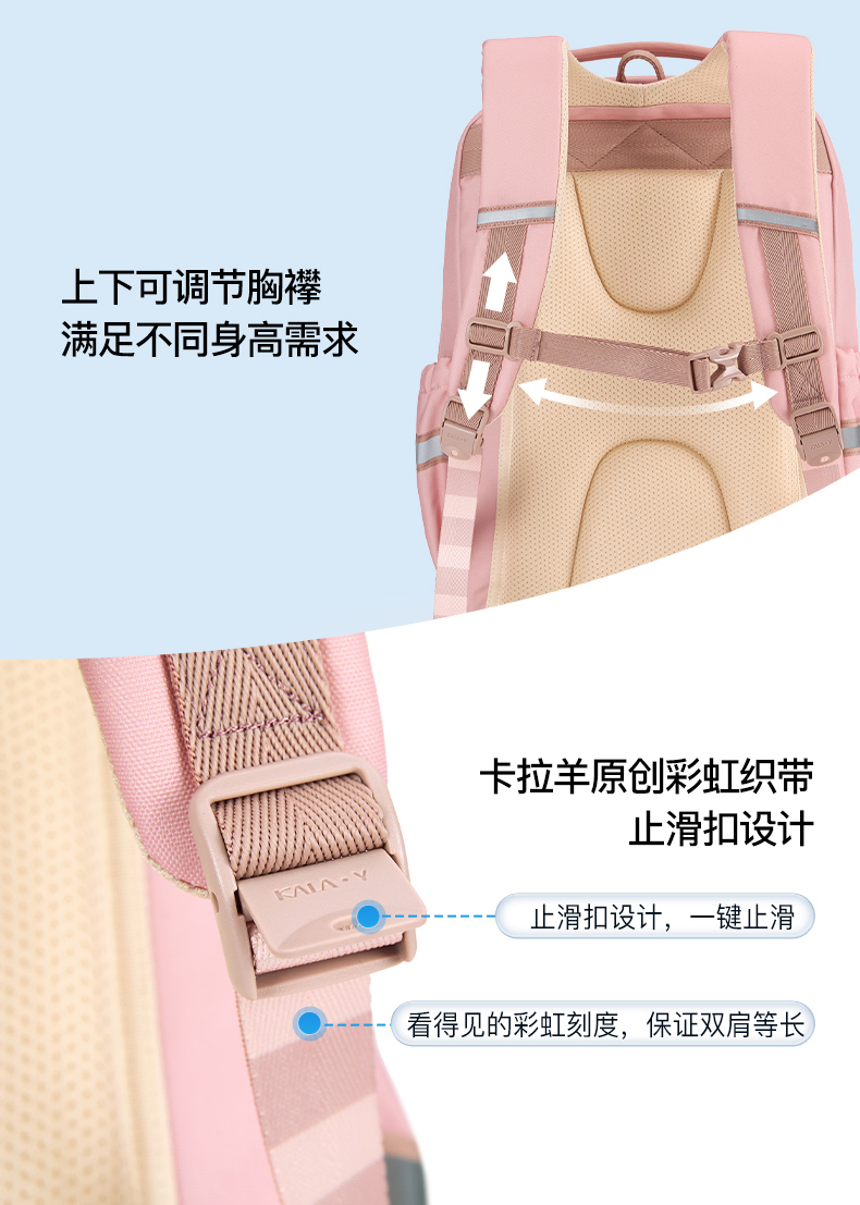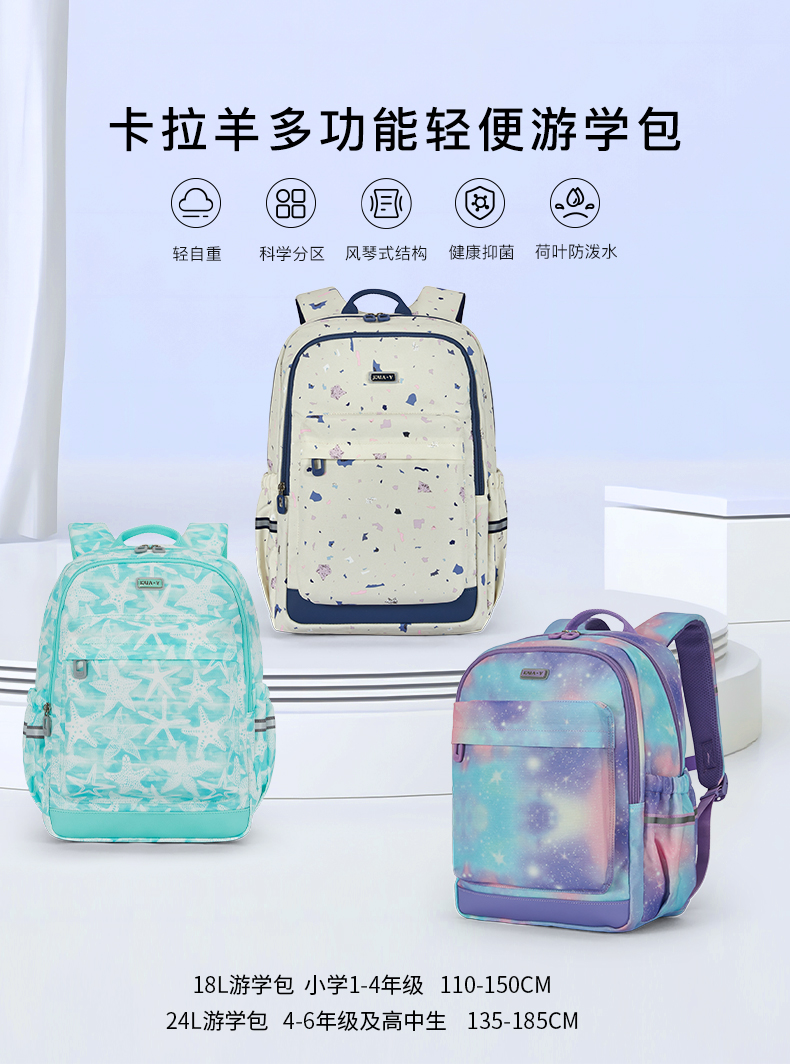 卡拉羊 中小学生1-6年级大容量轻便减压减负护脊书包学生双肩包背包