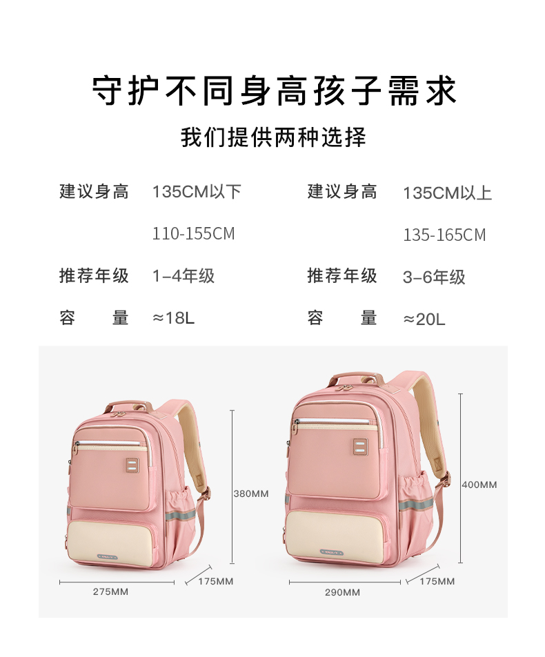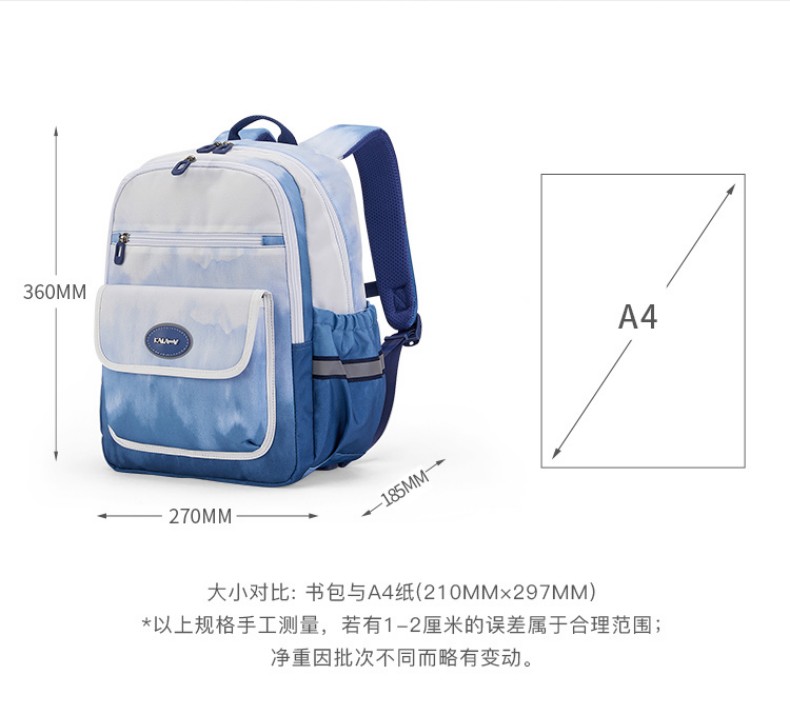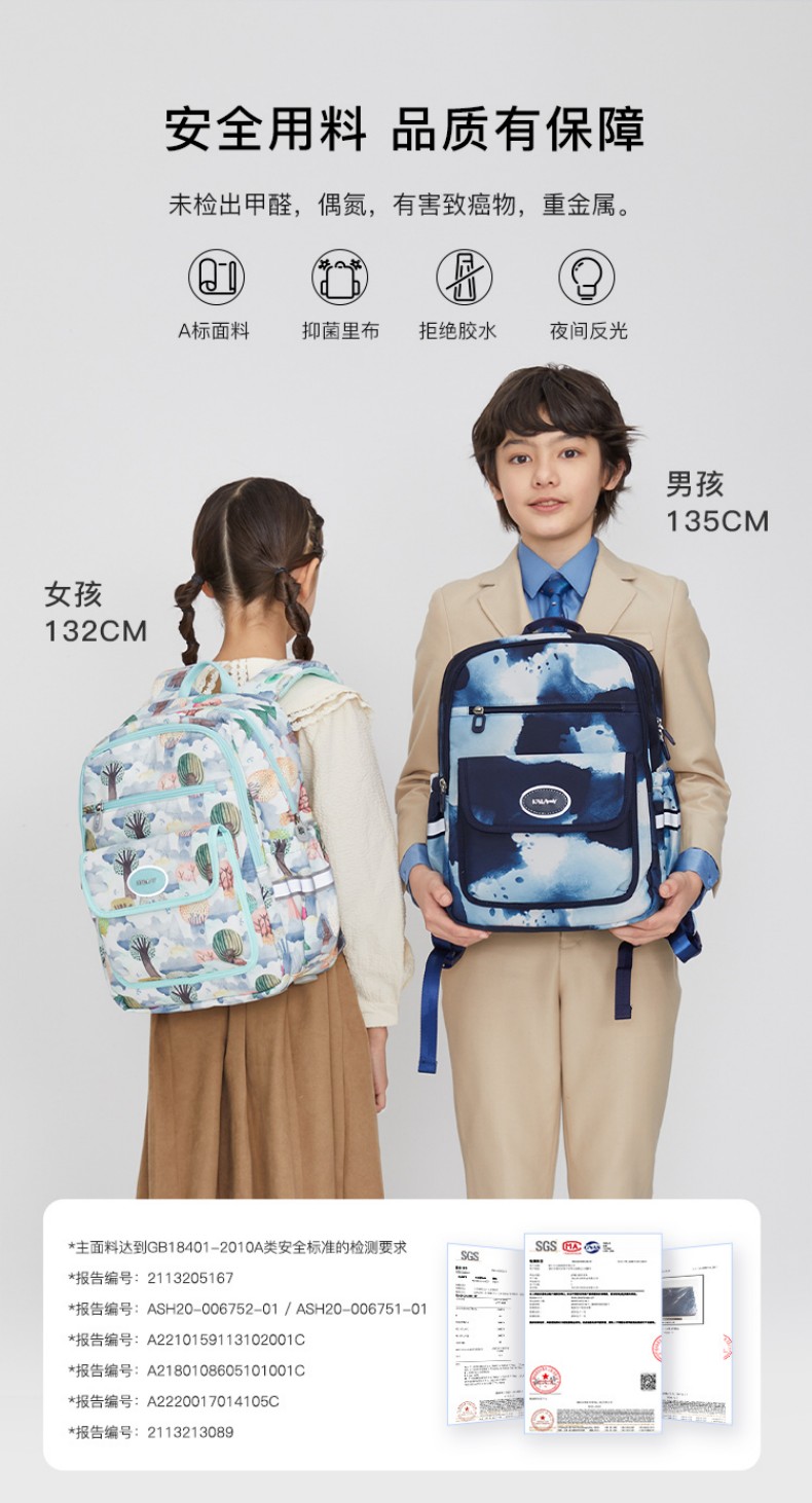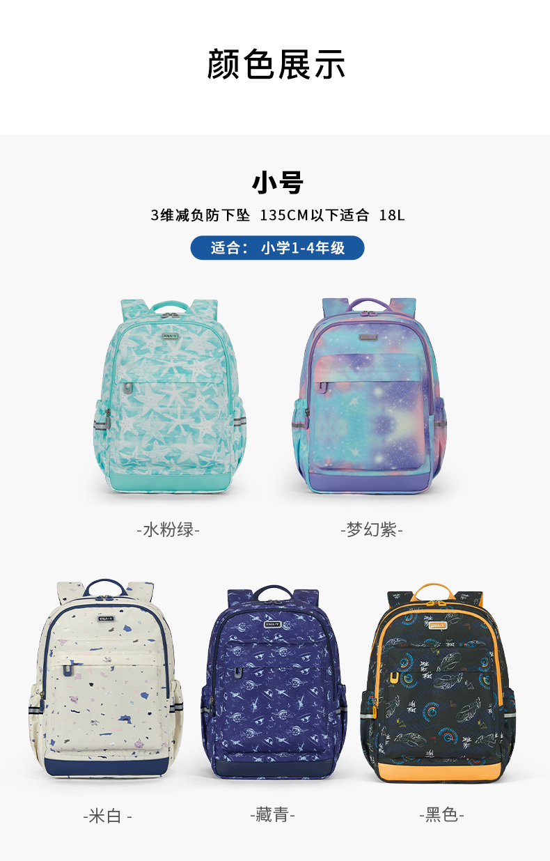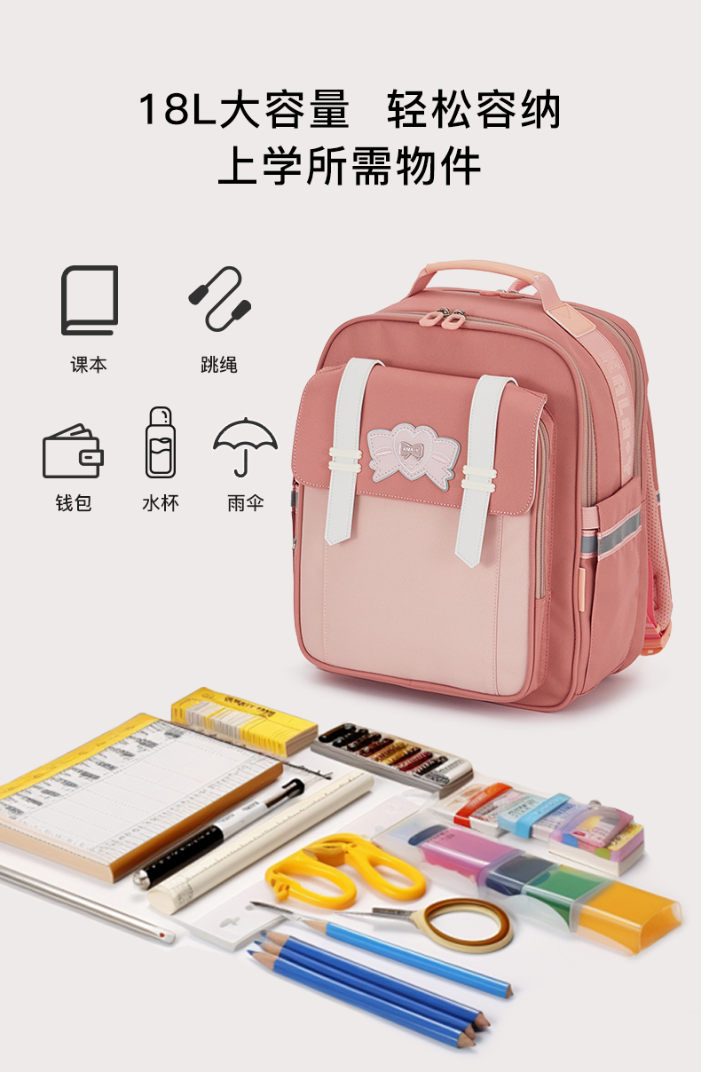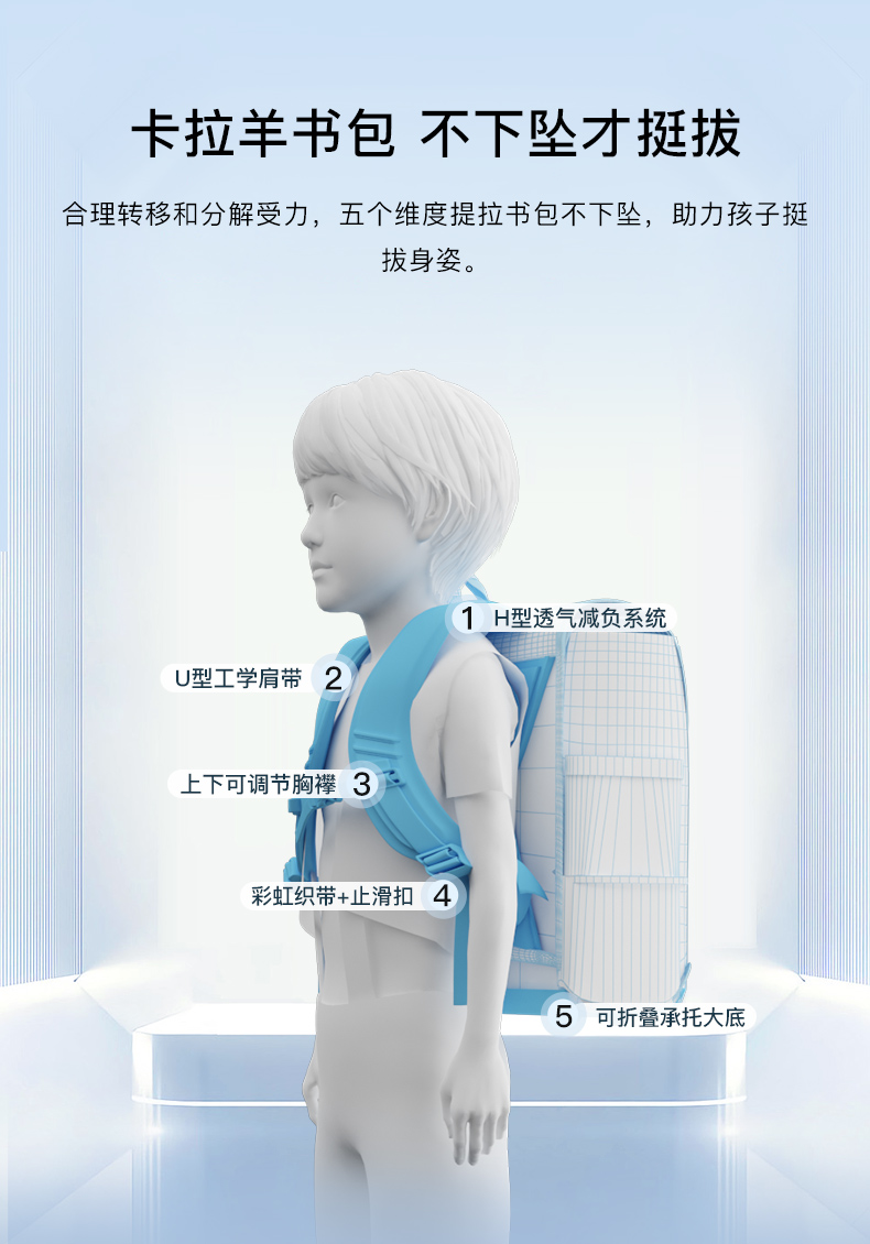 卡拉羊 中小学生1-6年级大容量轻便减压减负护脊书包学生双肩包背包