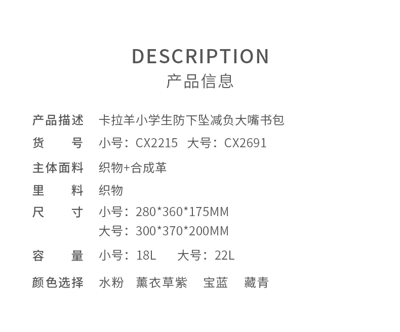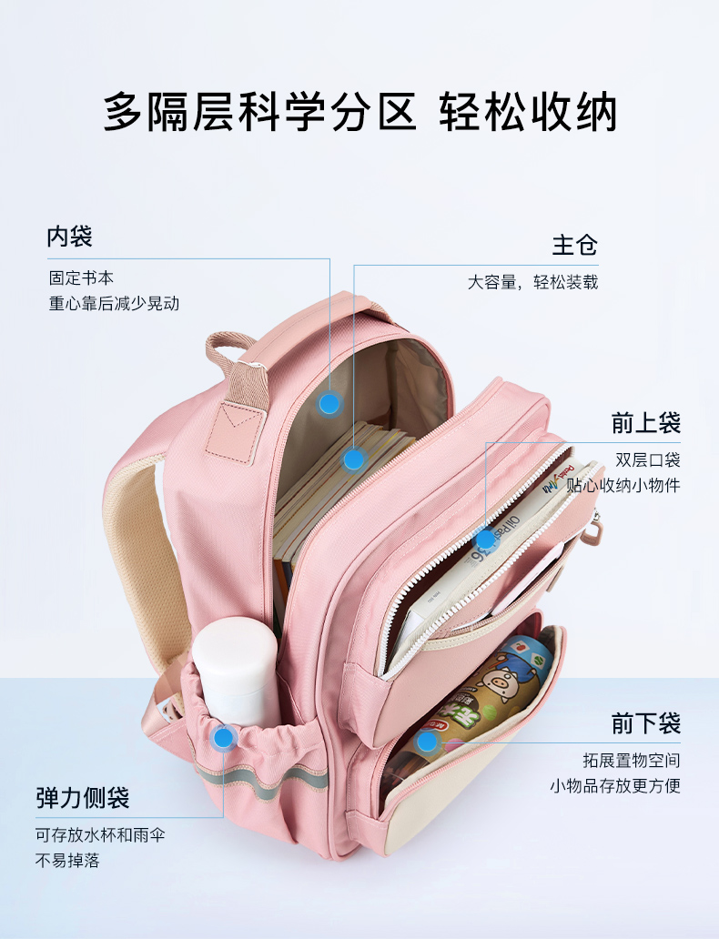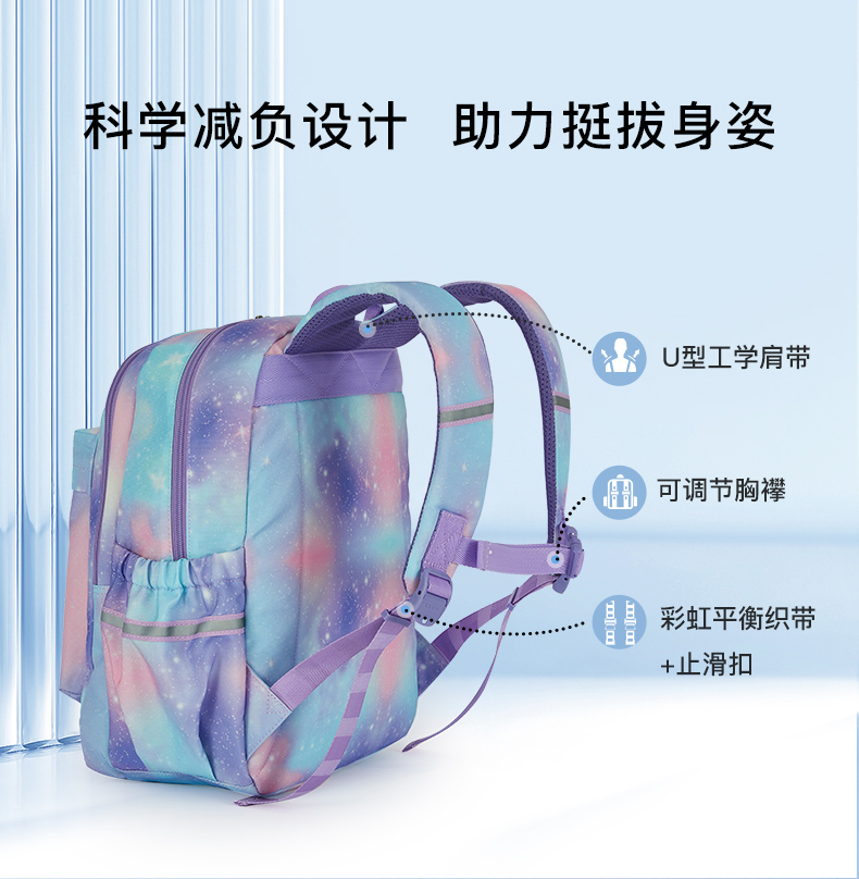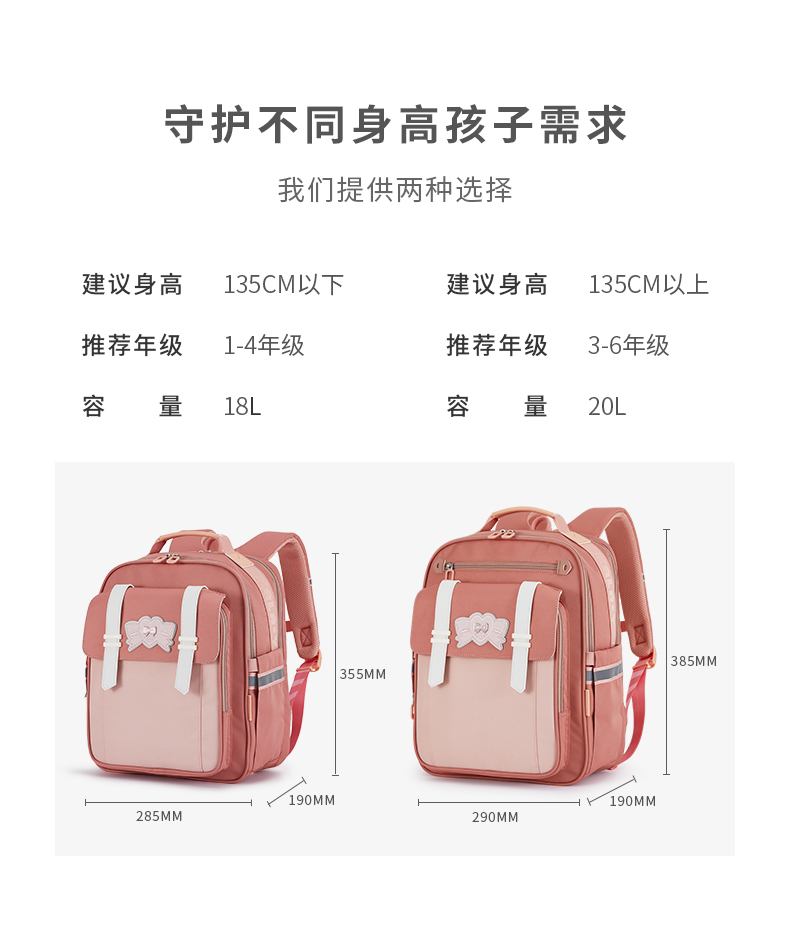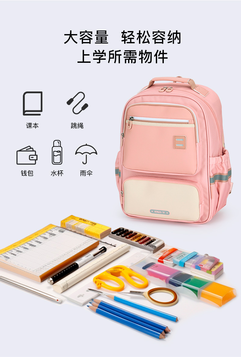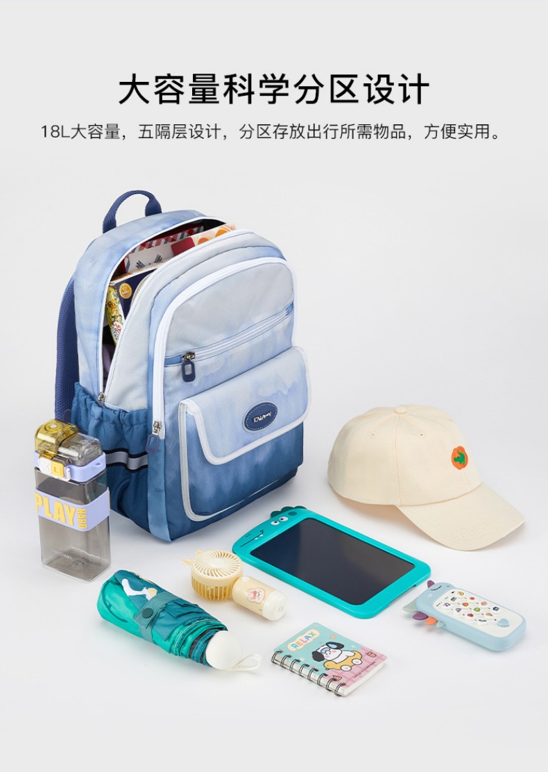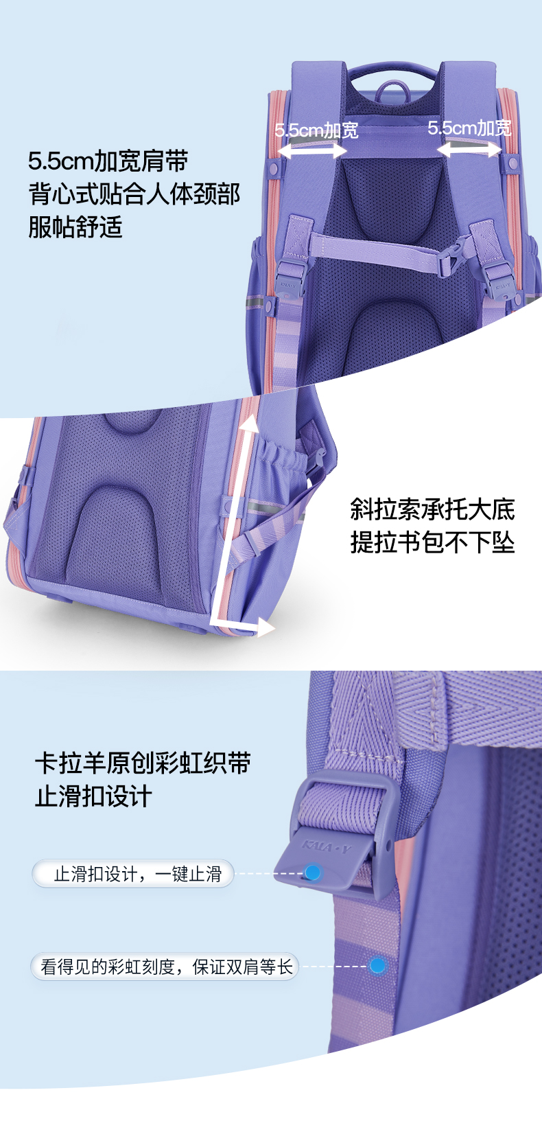 卡拉羊 中小学生1-6年级大容量轻便减压减负护脊书包学生双肩包背包