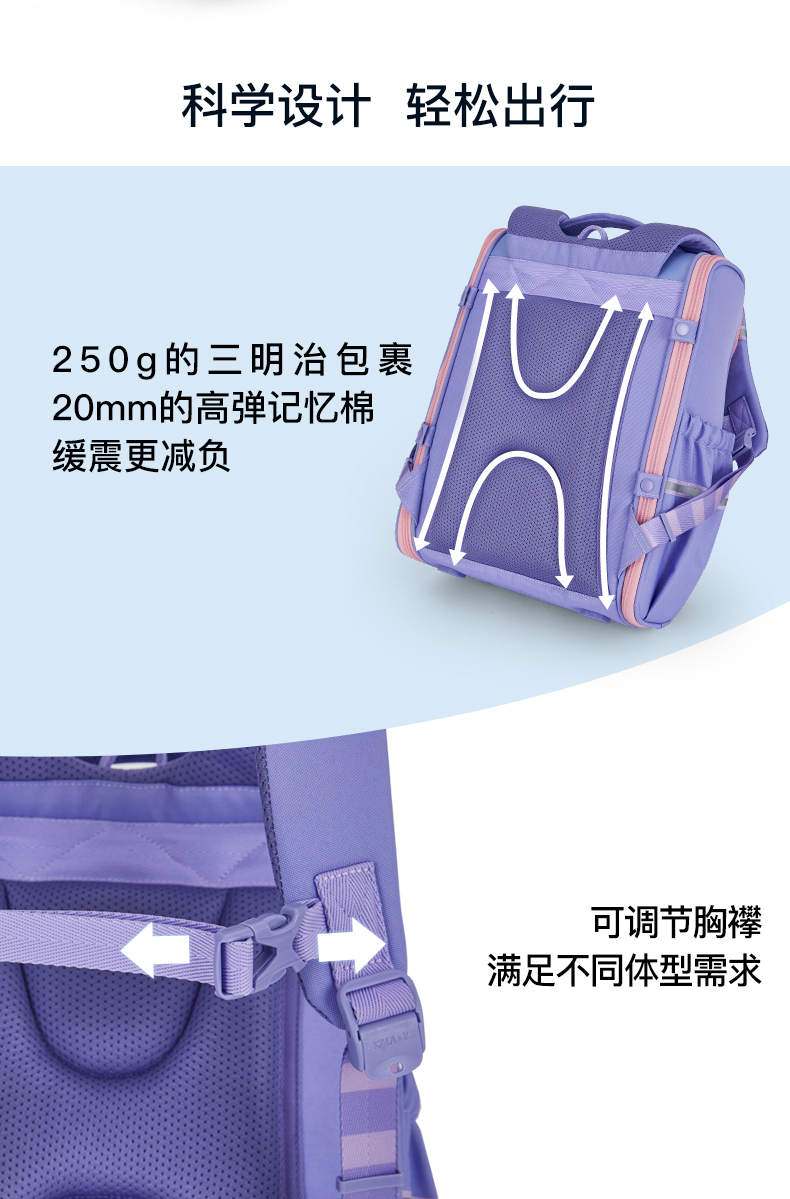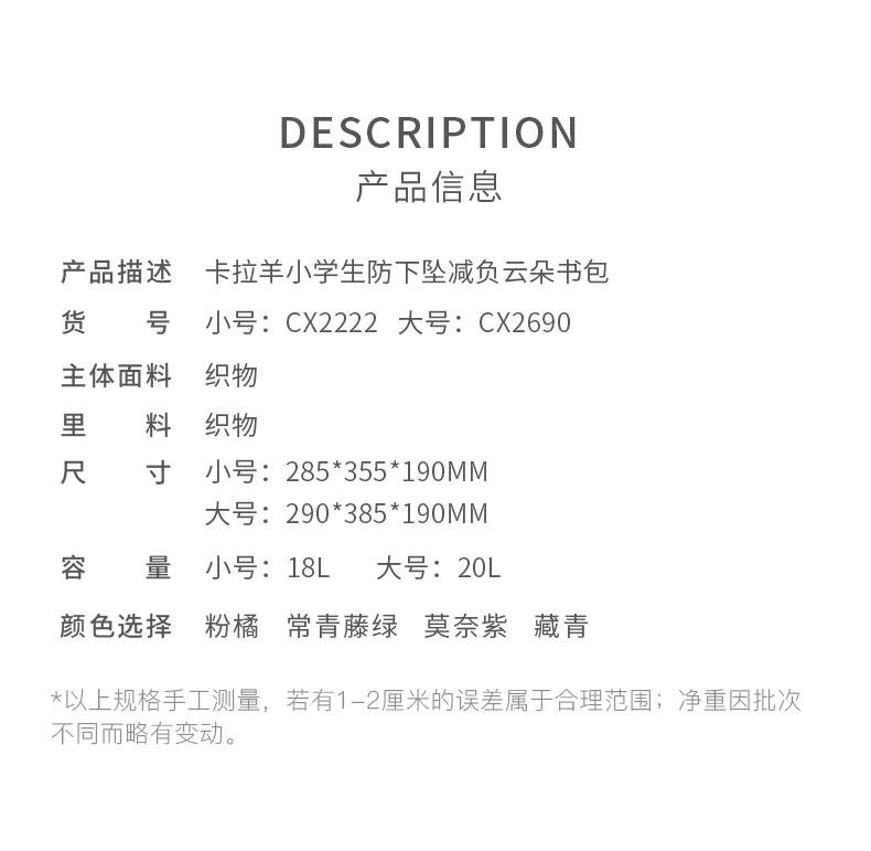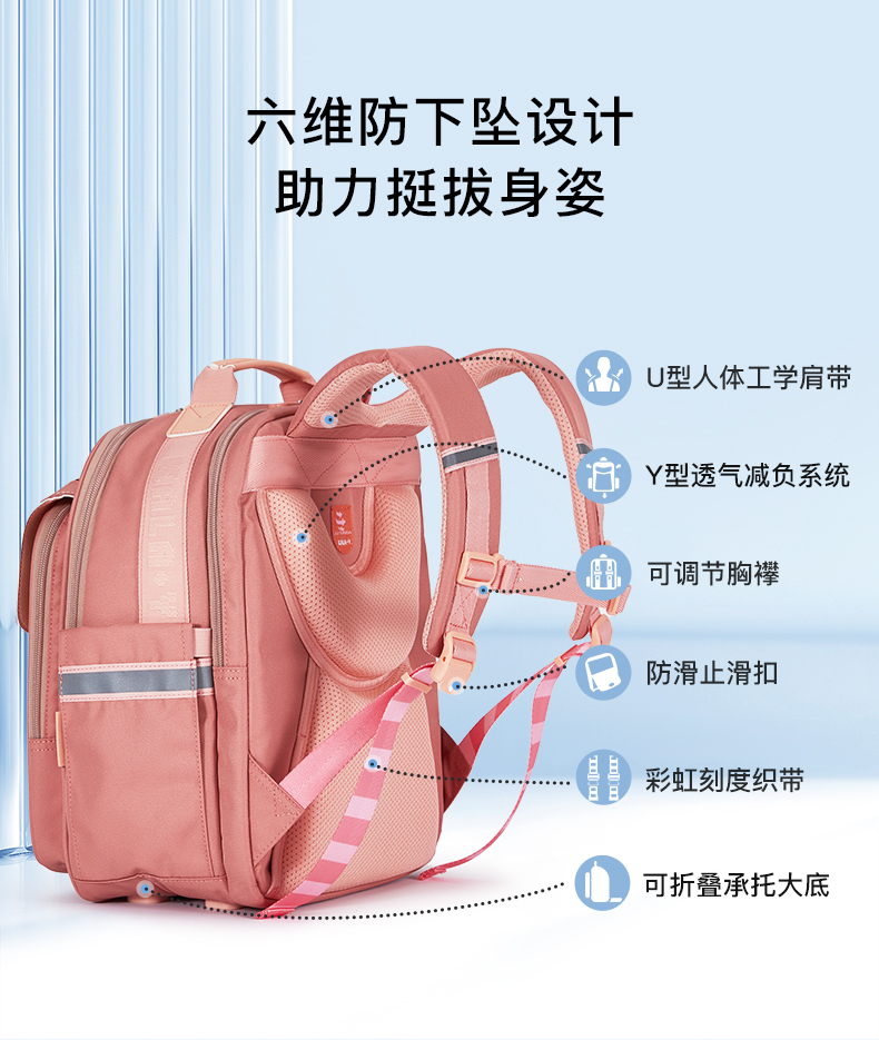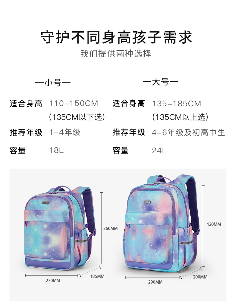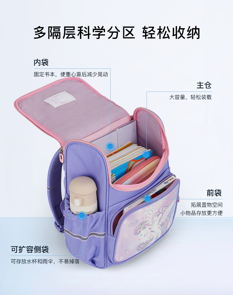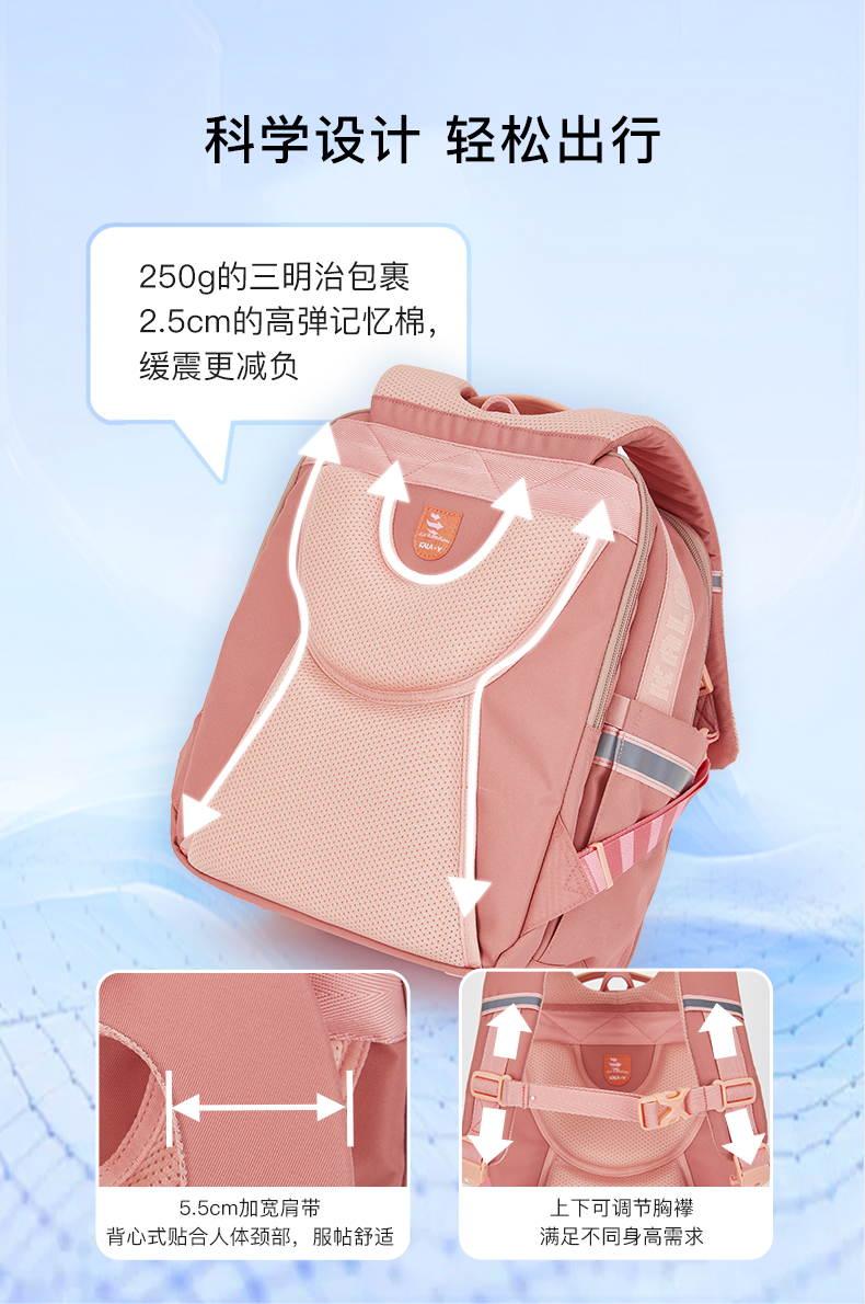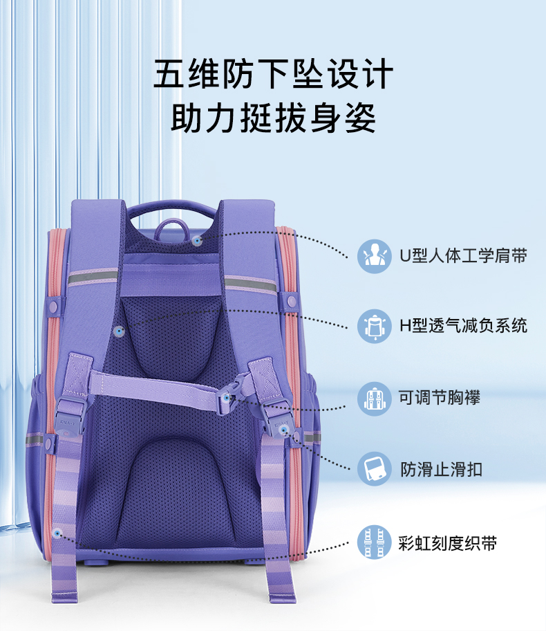 卡拉羊 中小学生1-6年级大容量轻便减压减负护脊书包学生双肩包背包