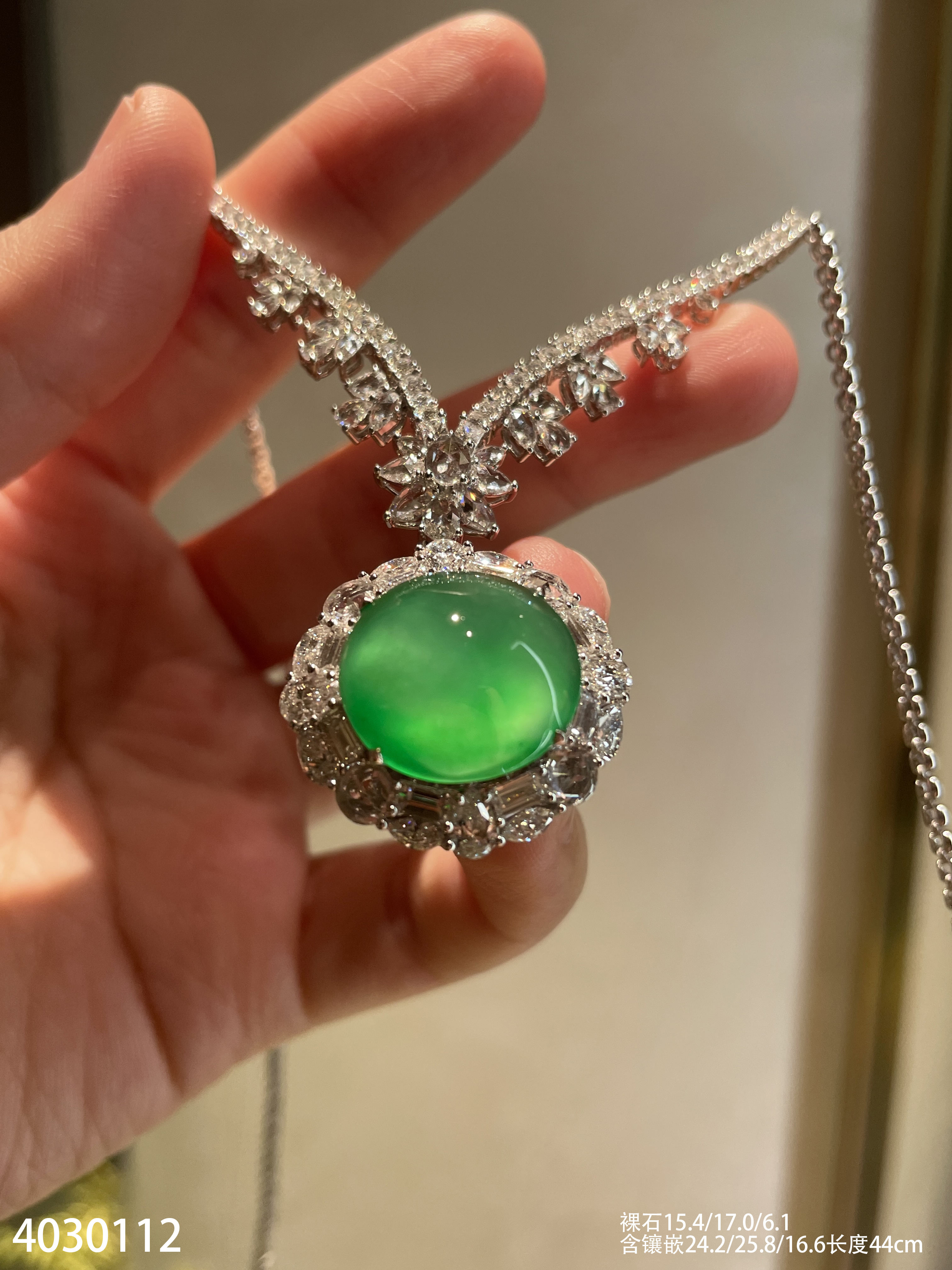 玻璃种木那蛋面锁骨链【4030112】具体价格微信咨询