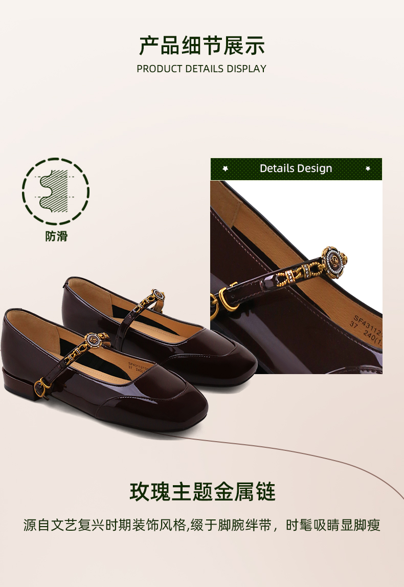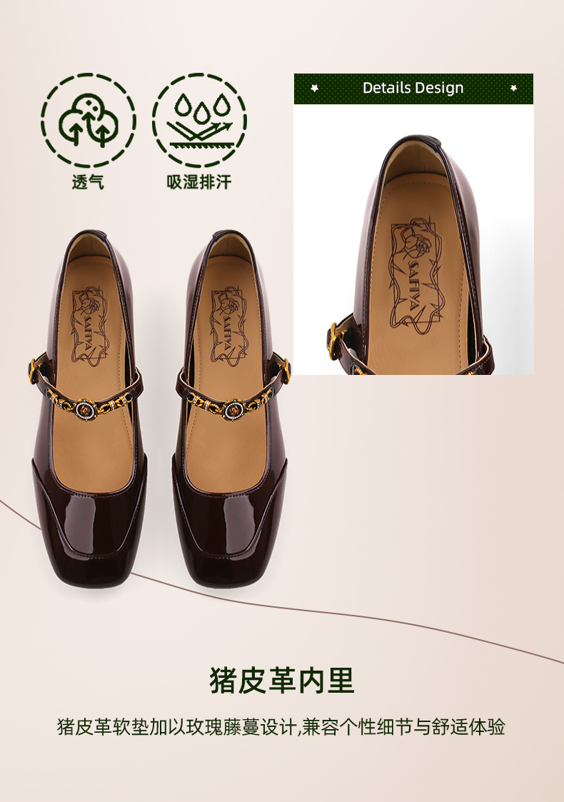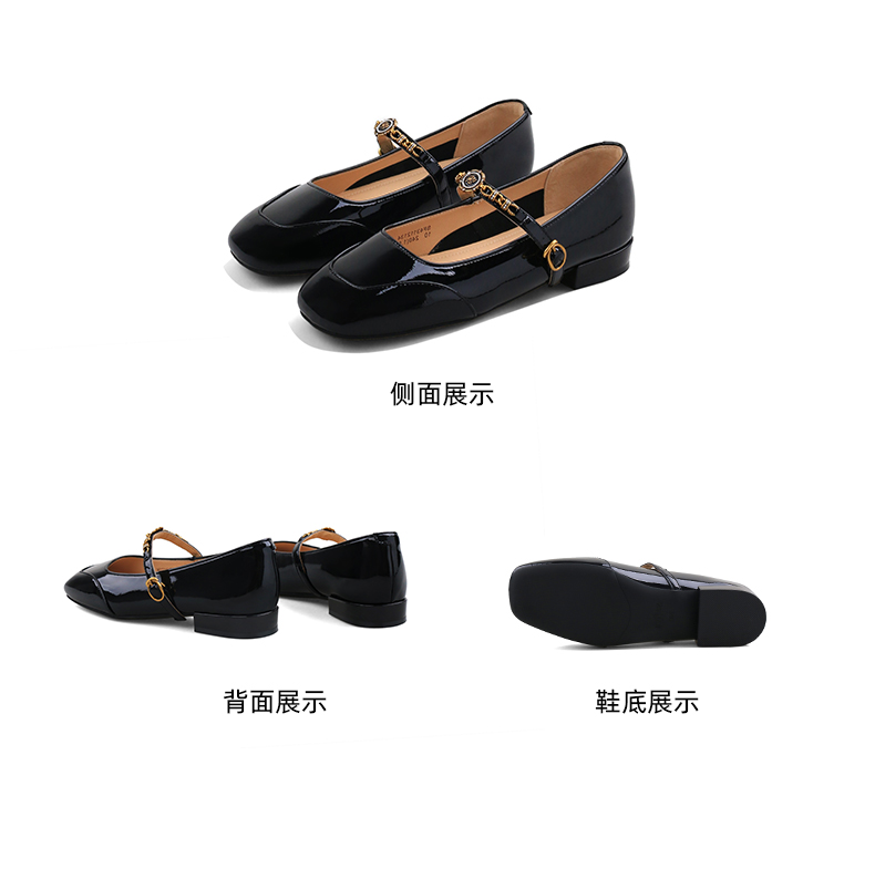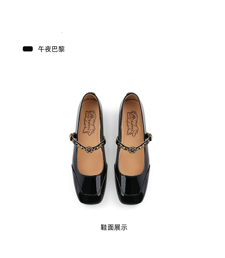 Safiya/索菲娅2024秋 法式复古玫瑰金属扣方头低跟浅口玛丽珍鞋 SF43112134