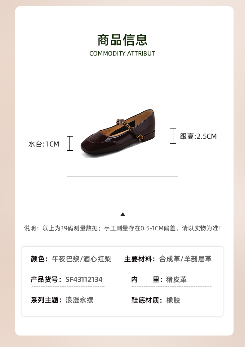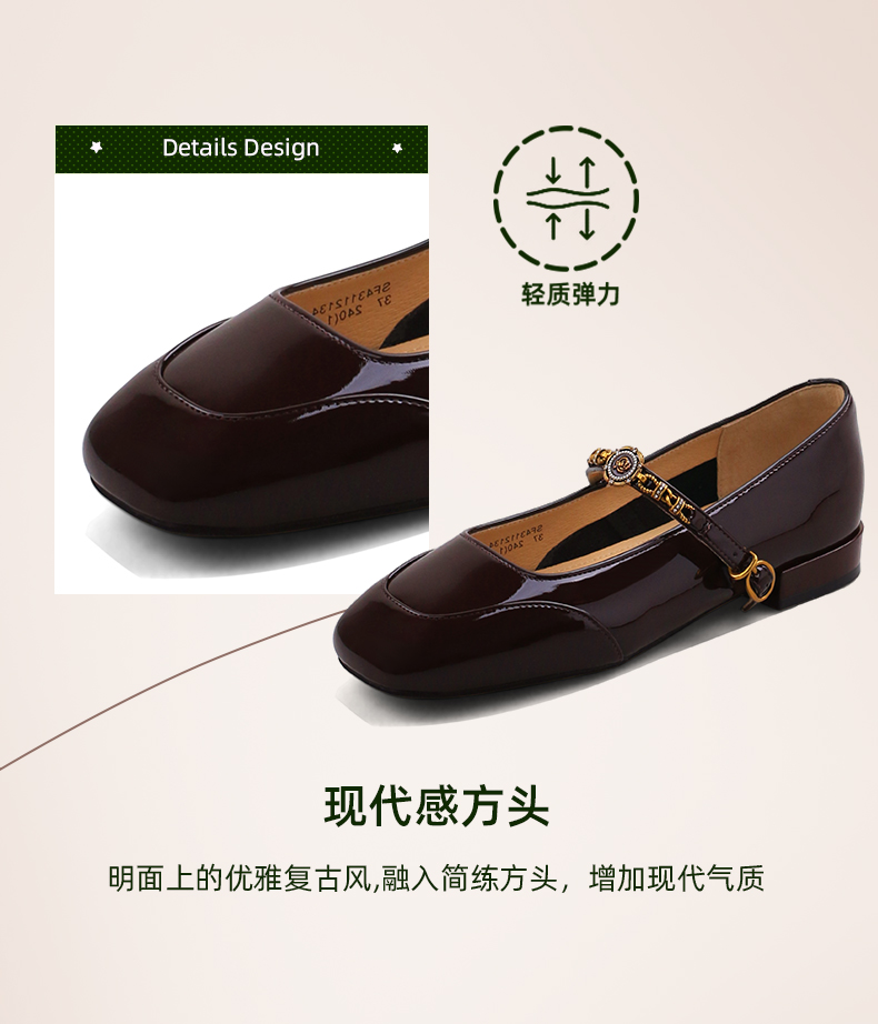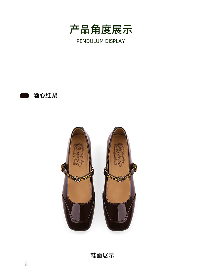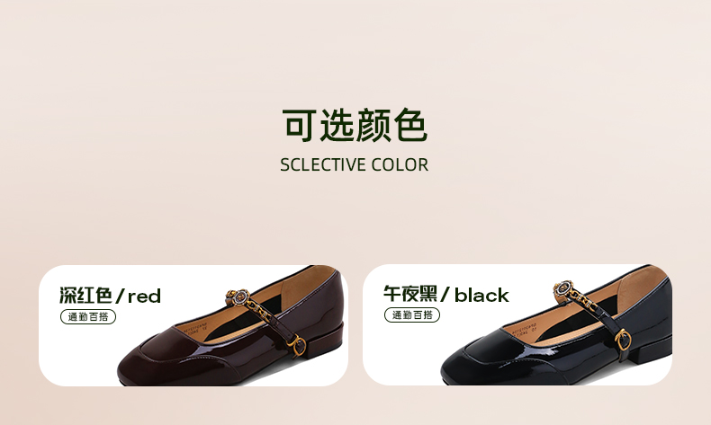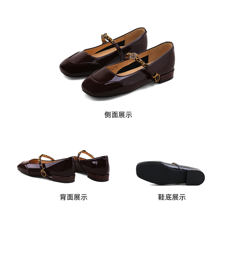 Safiya/索菲娅2024秋 法式复古玫瑰金属扣方头低跟浅口玛丽珍鞋 SF43112134