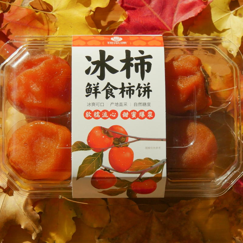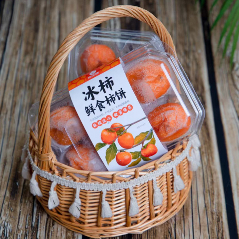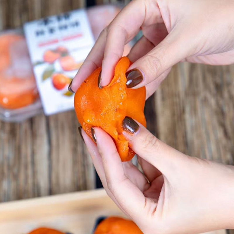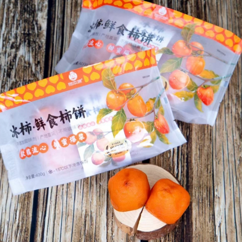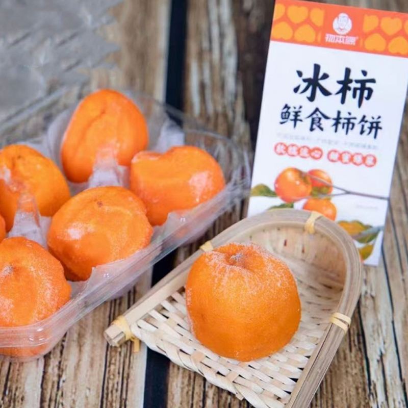 不同于传统自然晾晒的柿饼,吃起来有韧性和嚼劲,这款流心冰柿完全不一样,它是湿润的,口感更接近新鲜的软柿子,咬下去会爆浆流心,甜度高、口感无敌,每一口都非常满足!