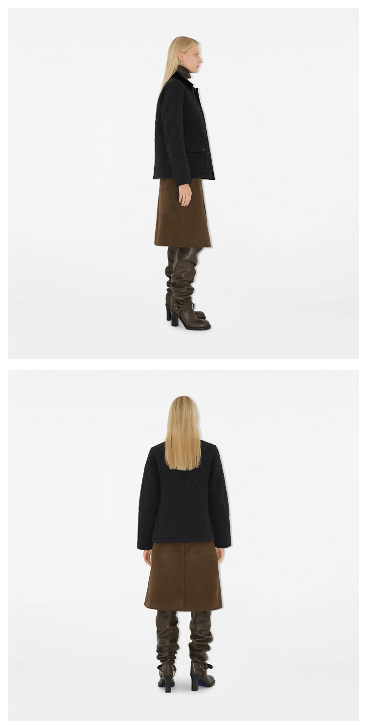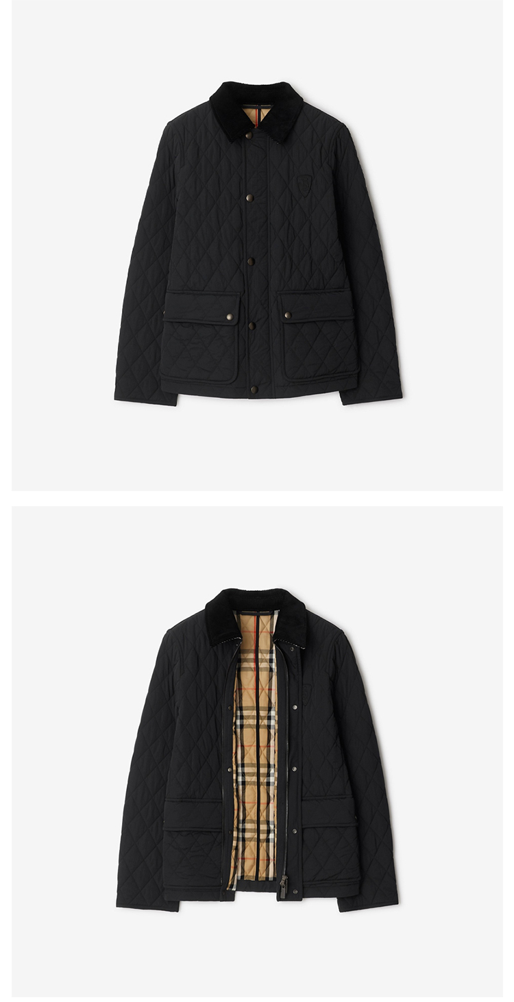 【一】BURBERRY 巴宝莉 女士 B 字盾徽标刺绣绗缝尼龙夹克棉服 黑色 8096917 C1900