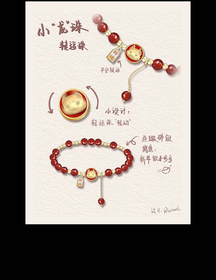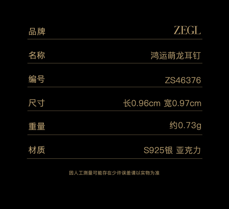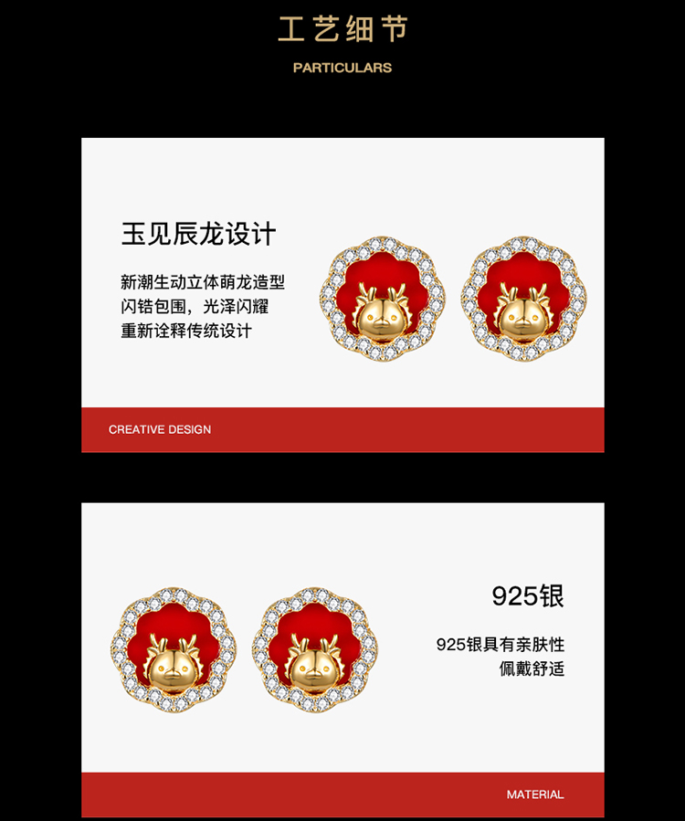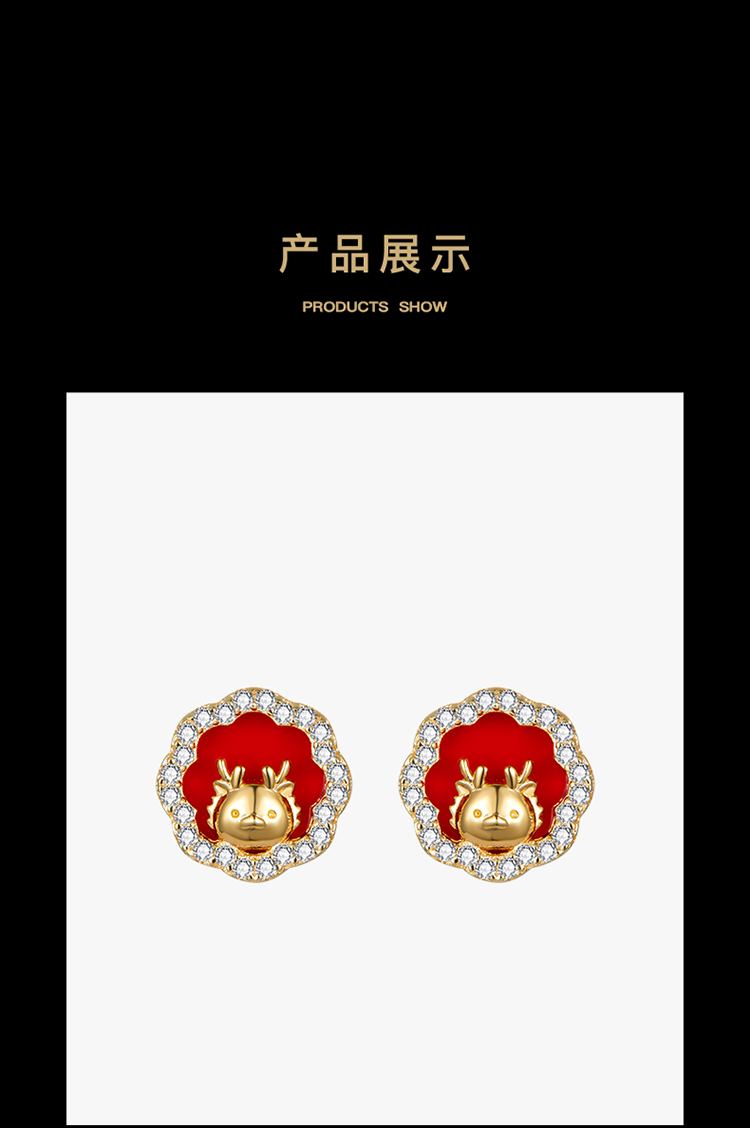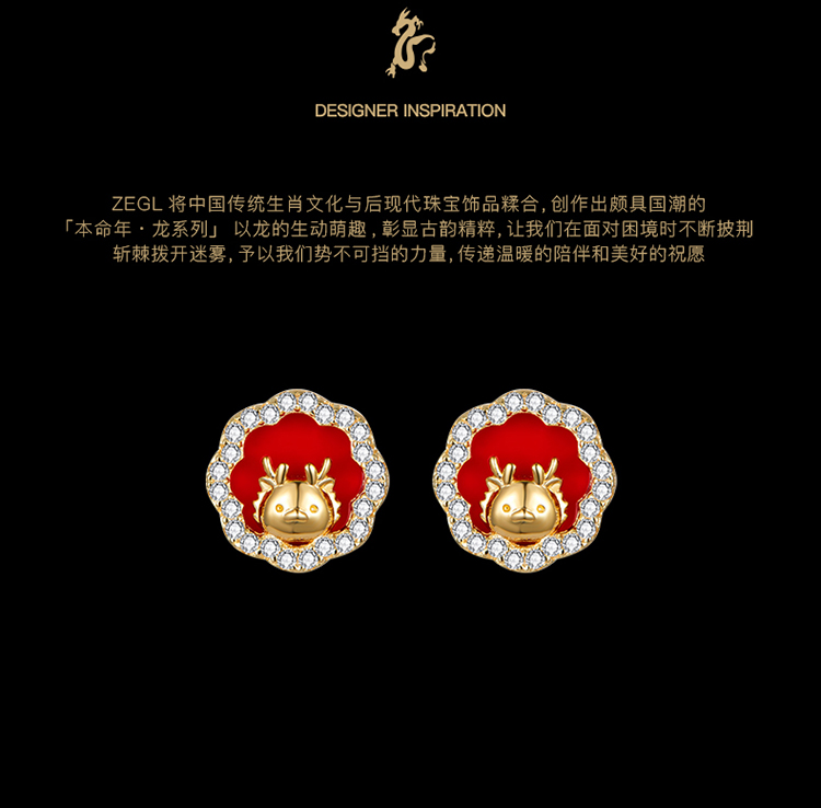 ZEGL龙年本命年萌龙耳环女2024年红玛瑙耳钉925银针新年秋冬耳饰