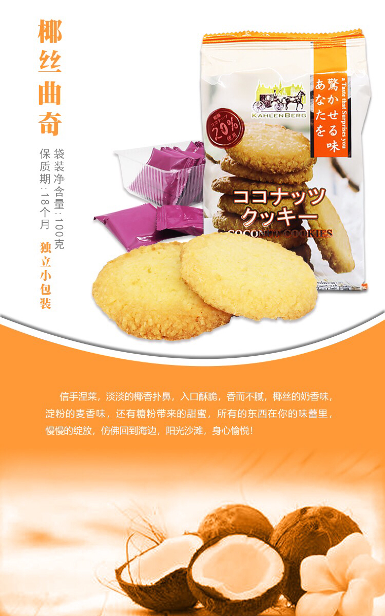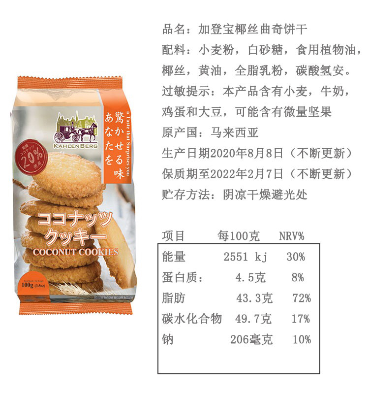 马来西亚 KahlenBerg加登宝燕麦巧克力椰丝黄油曲奇饼干袋装100克-会员6折