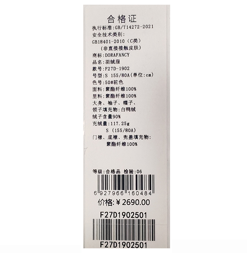朵拉梵西羽绒服F27D1902