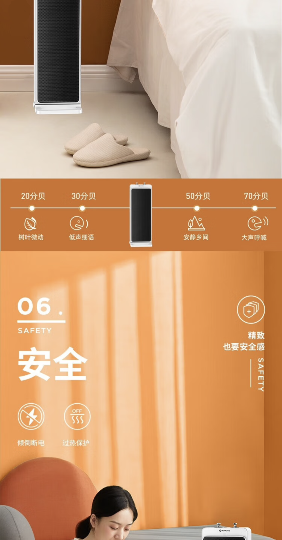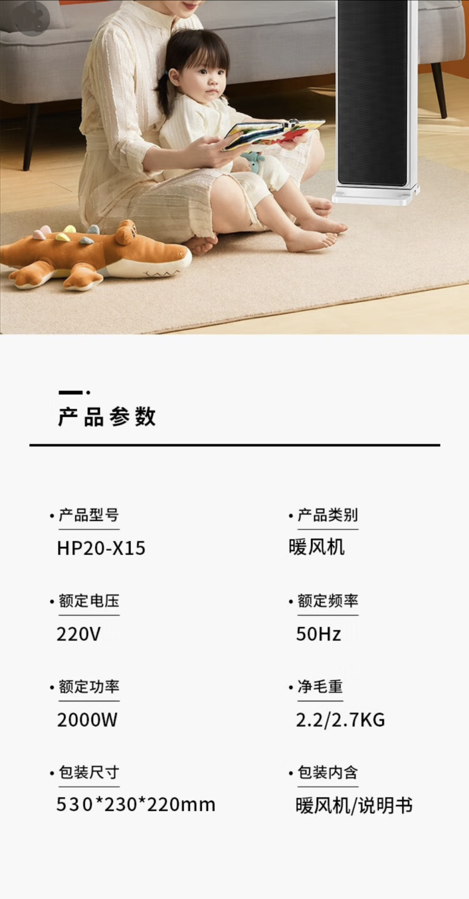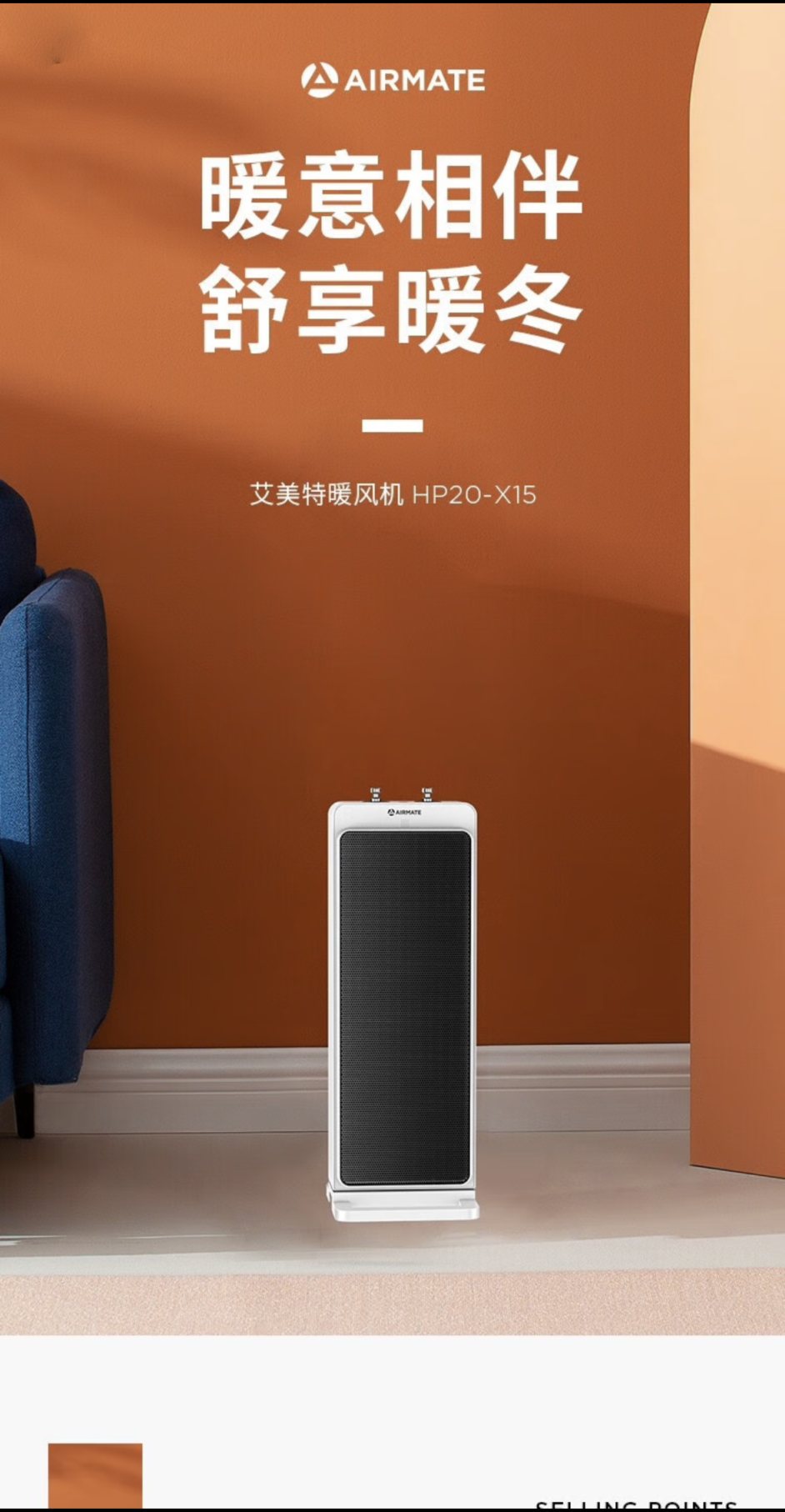 【超市】艾美特暖风机立式取暖器速热烤火炉可摇头卧室电暖气HP20-X15